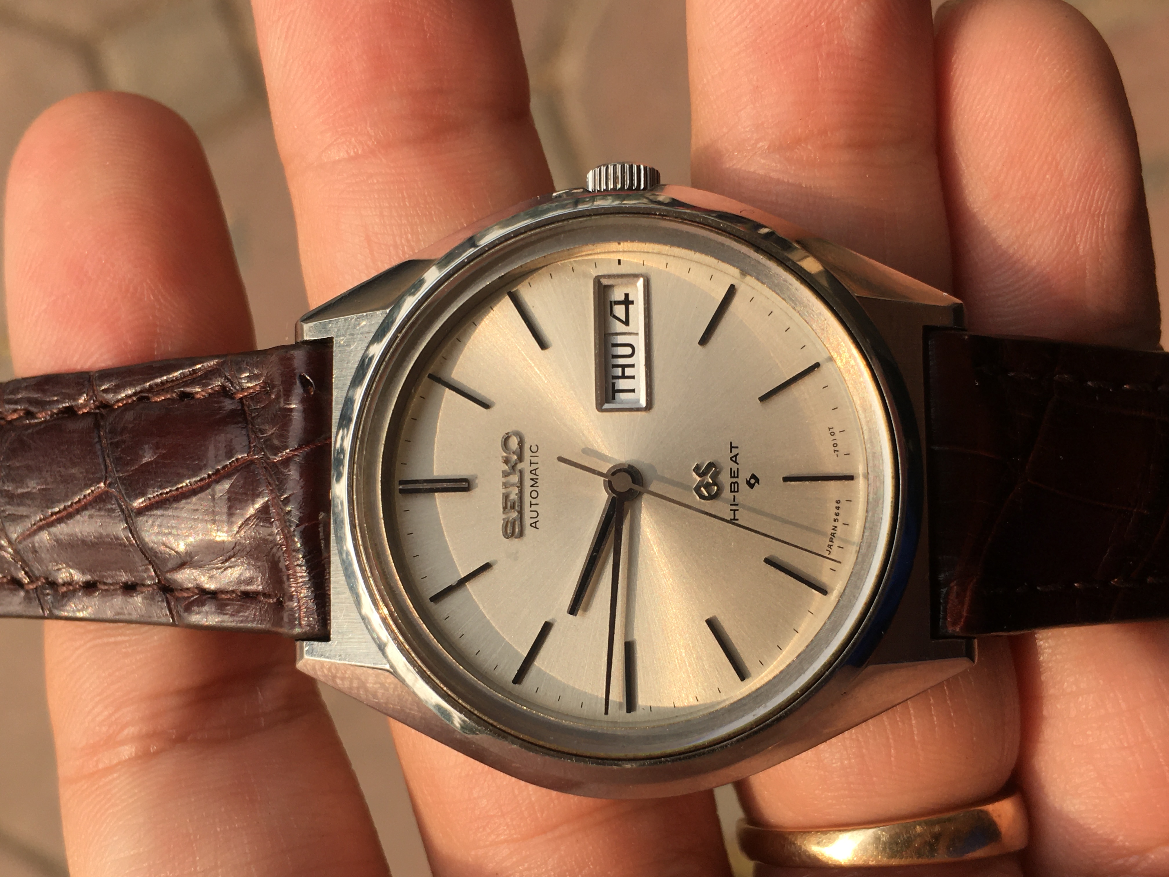 Up for sale today is a nice vintage Grand Seiko day-date function with a signature GS early design.