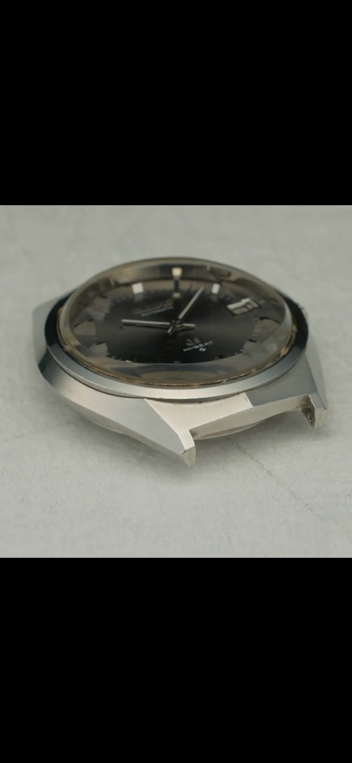 Dial and hands are original, with charcoal grey as noted. Polished raised SS indices. Original crown. Date feature works well.