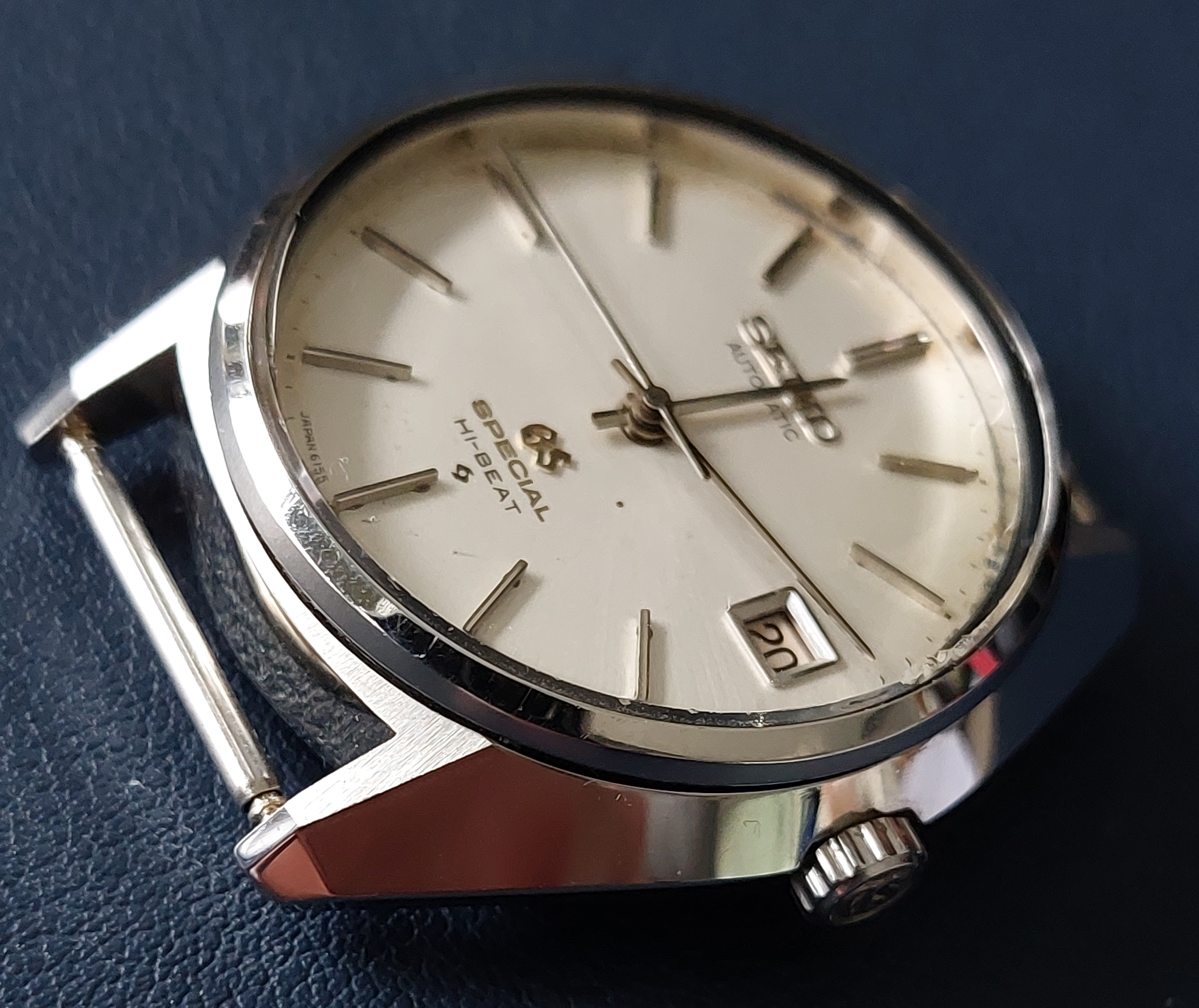 I bought this because the case was in such amazing condition as can be seen in the photo’s below and it is also quite an unusual variant in the GS line up, hence the special on the dial. Some background on the 6155 can be found here https://thegrandseikoguy.com/product/grand-seiko-6155-8000/