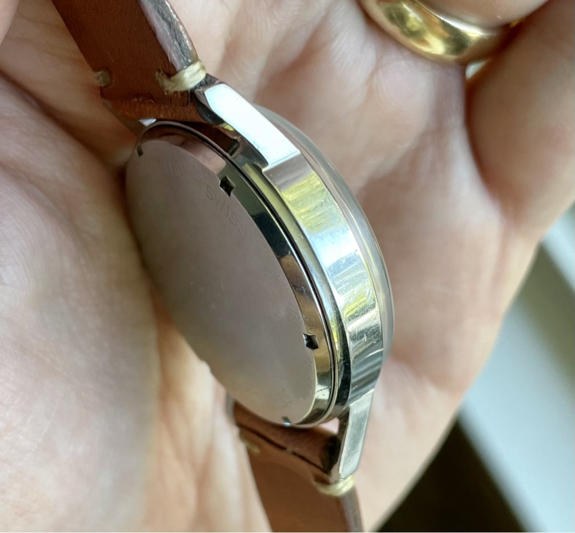 Stainless steel case is perfectly sized at approximately 36mm not including the crown and features an original Hamilton crown.