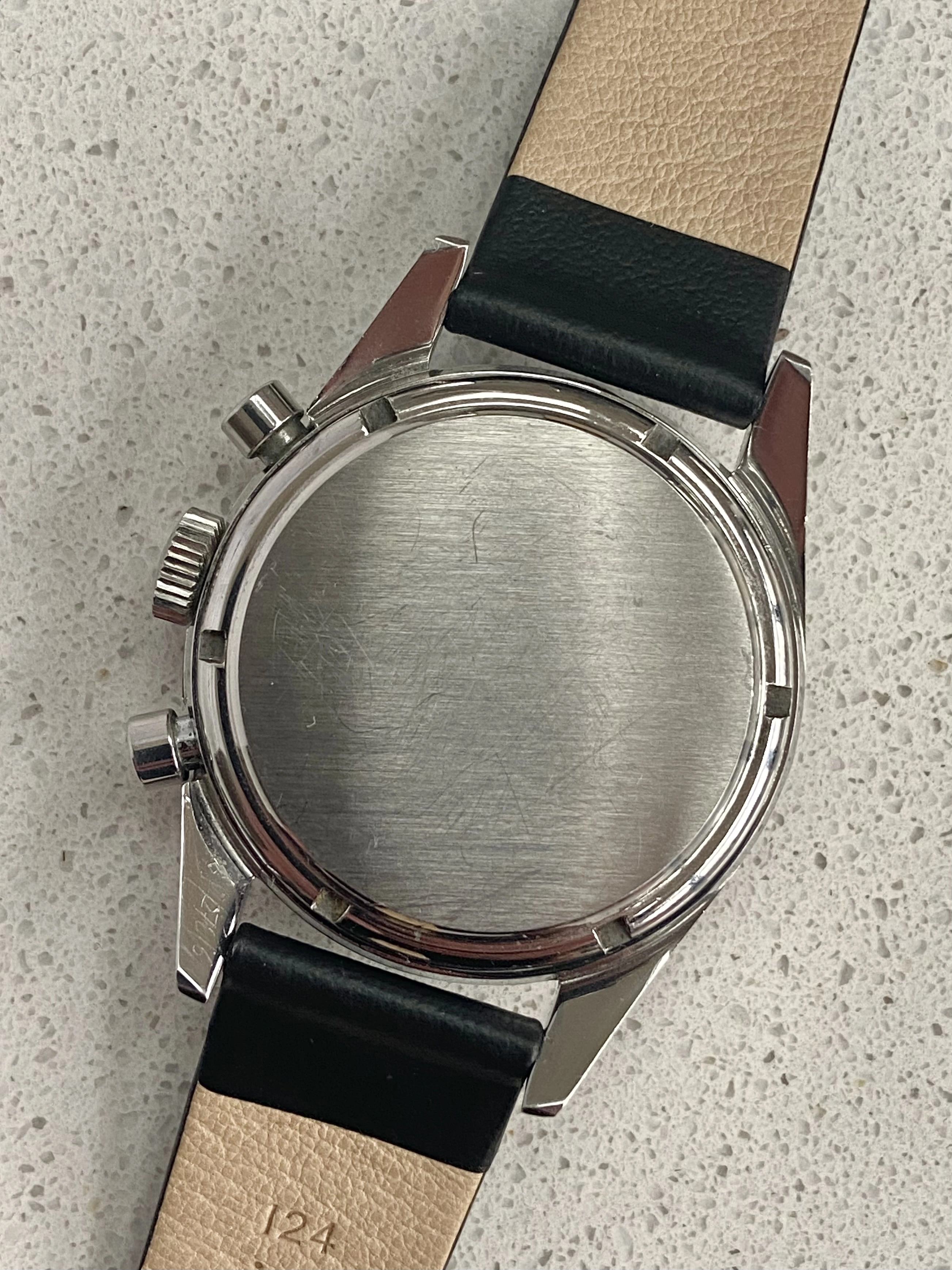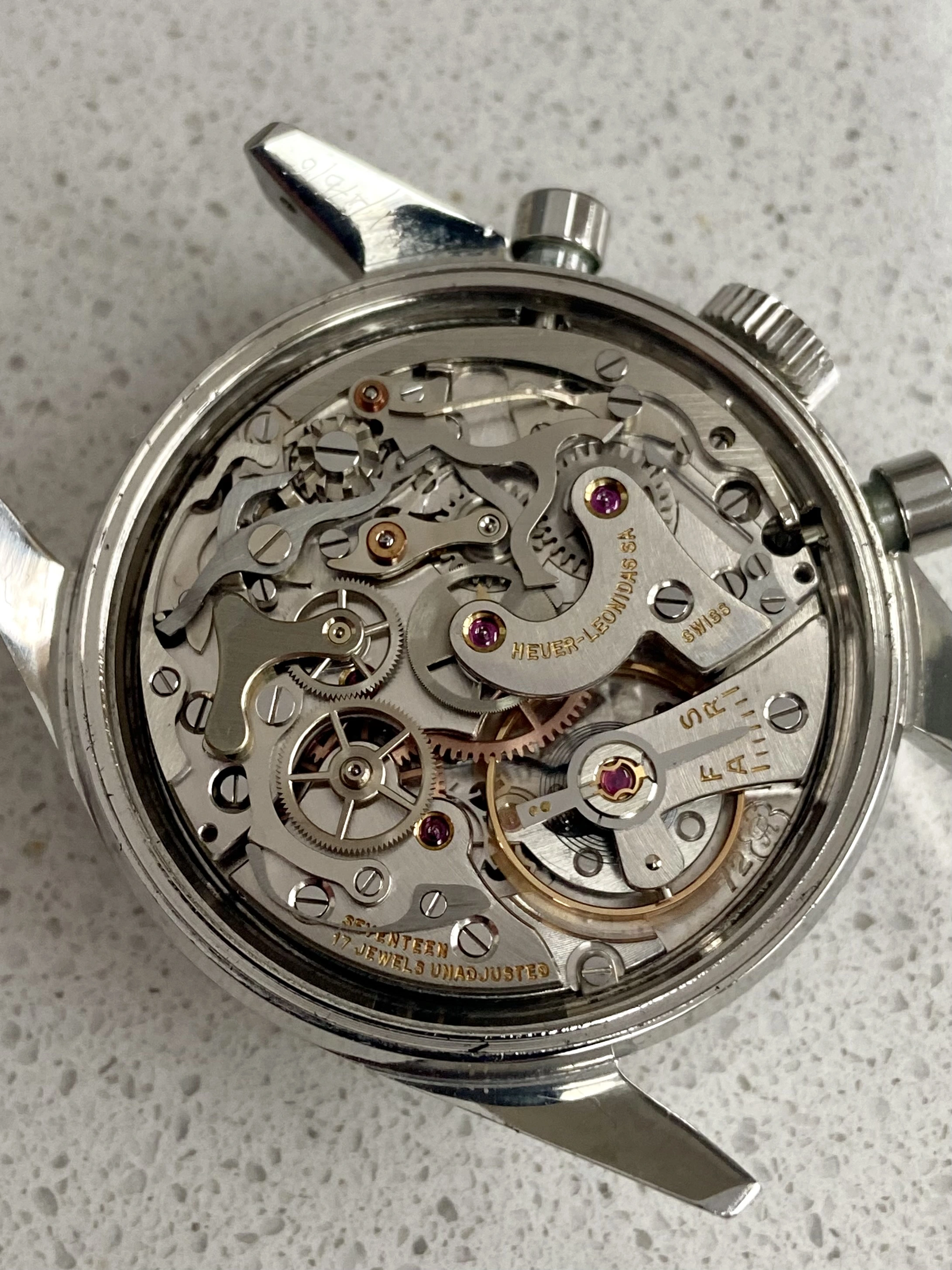 Original valjoux 72. Being an early version, it retains the correct early version of the v72 movement. No damage or corrosion. All functions work as they should. Service history is unknown.
