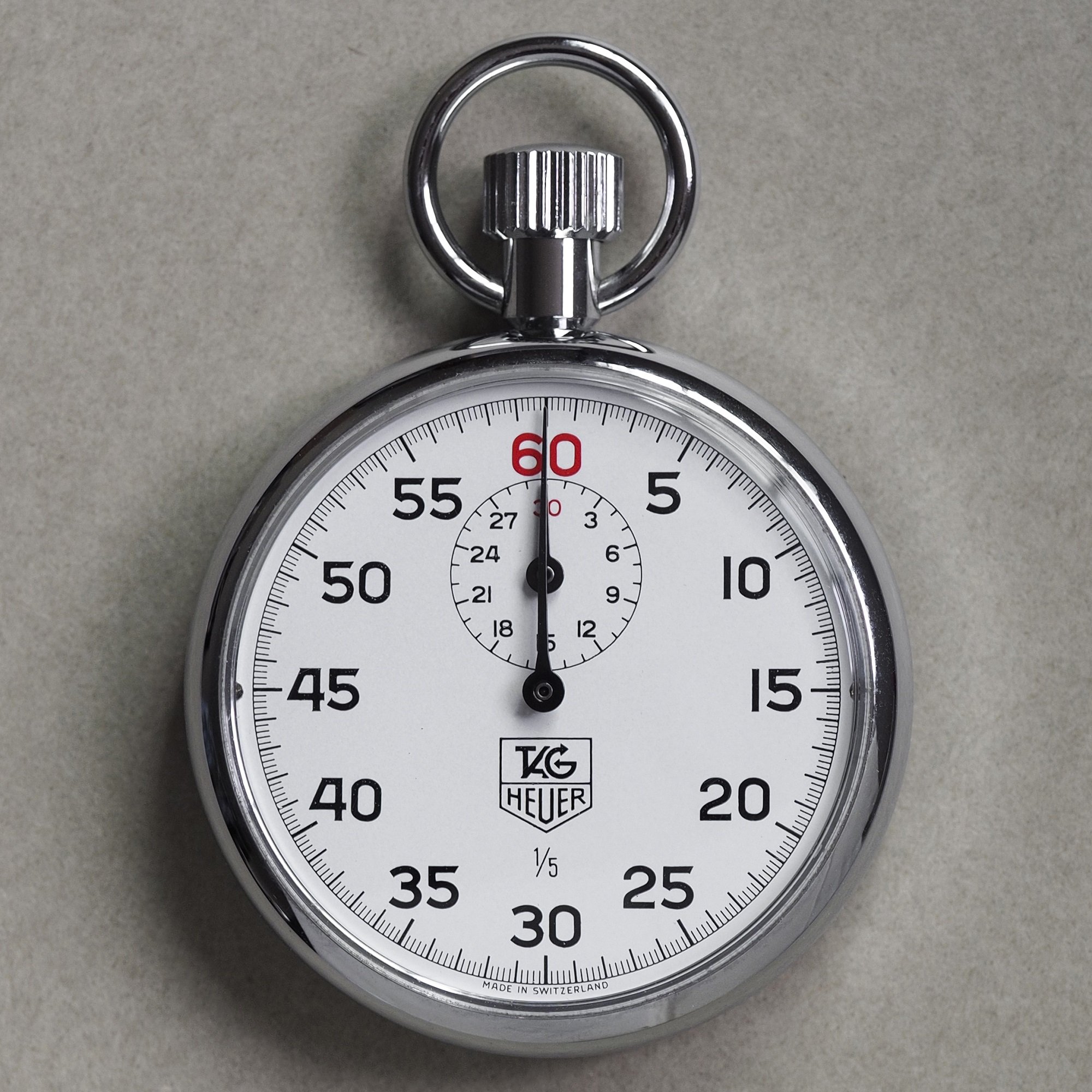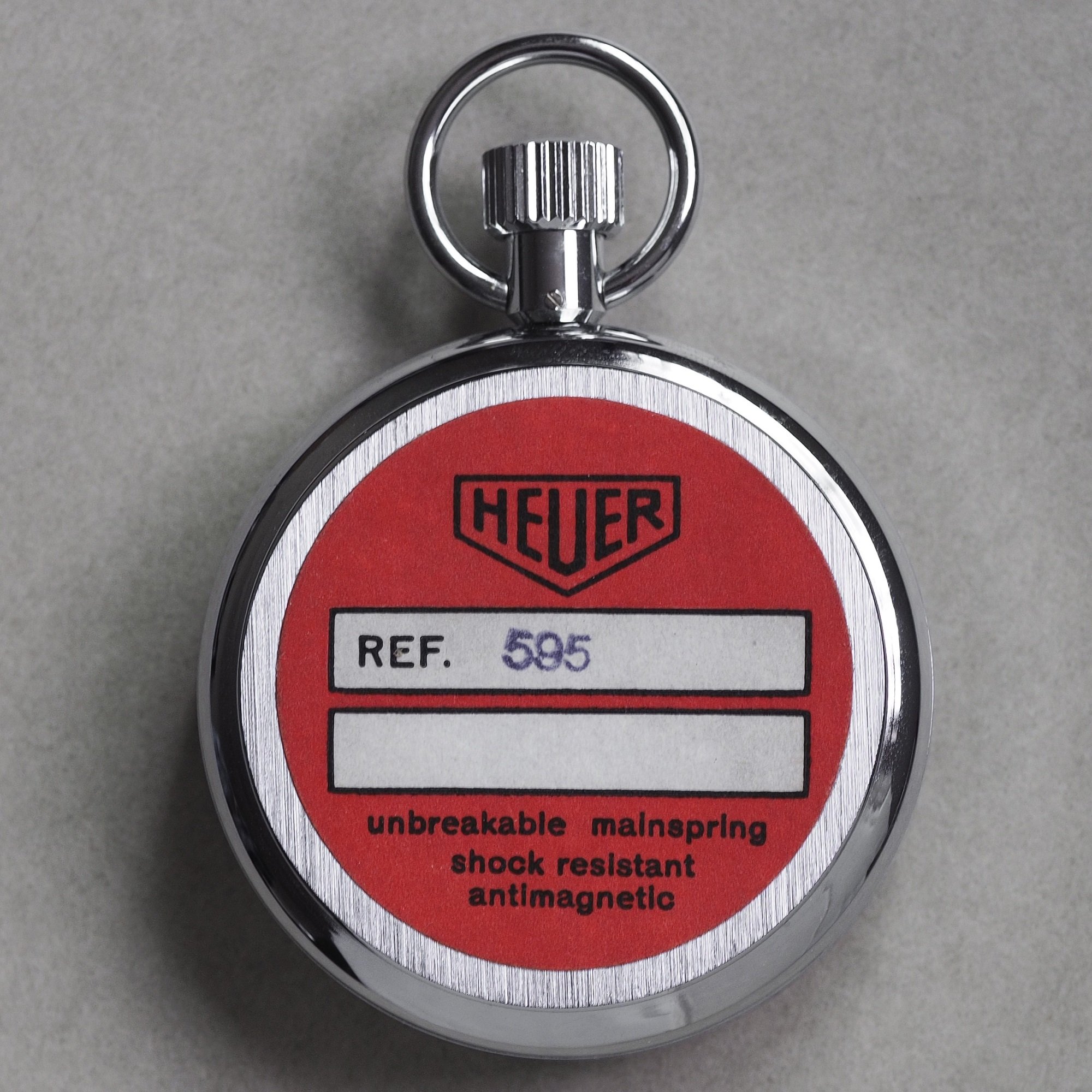 Description: This is a transitional Reference 595 stainless steel Heuer stopwatch, manufactured at a time when the brand was moving into the TAG era. The stopwatch likely dates to the mid to late 1980s. Case is in excellent condition as is the paper “Heuer Ref. 595” sticker on the back. Dial and crystal are perfect. Strong factory finish all around. Original Ref. 595 box and warranty booklet. Manual stopwatch winds, stops, starts and re-sets at ‘60.’ This vintage Heuer Ref. 595 stopwatch may have never been used, it’s essentially in NOS condition.