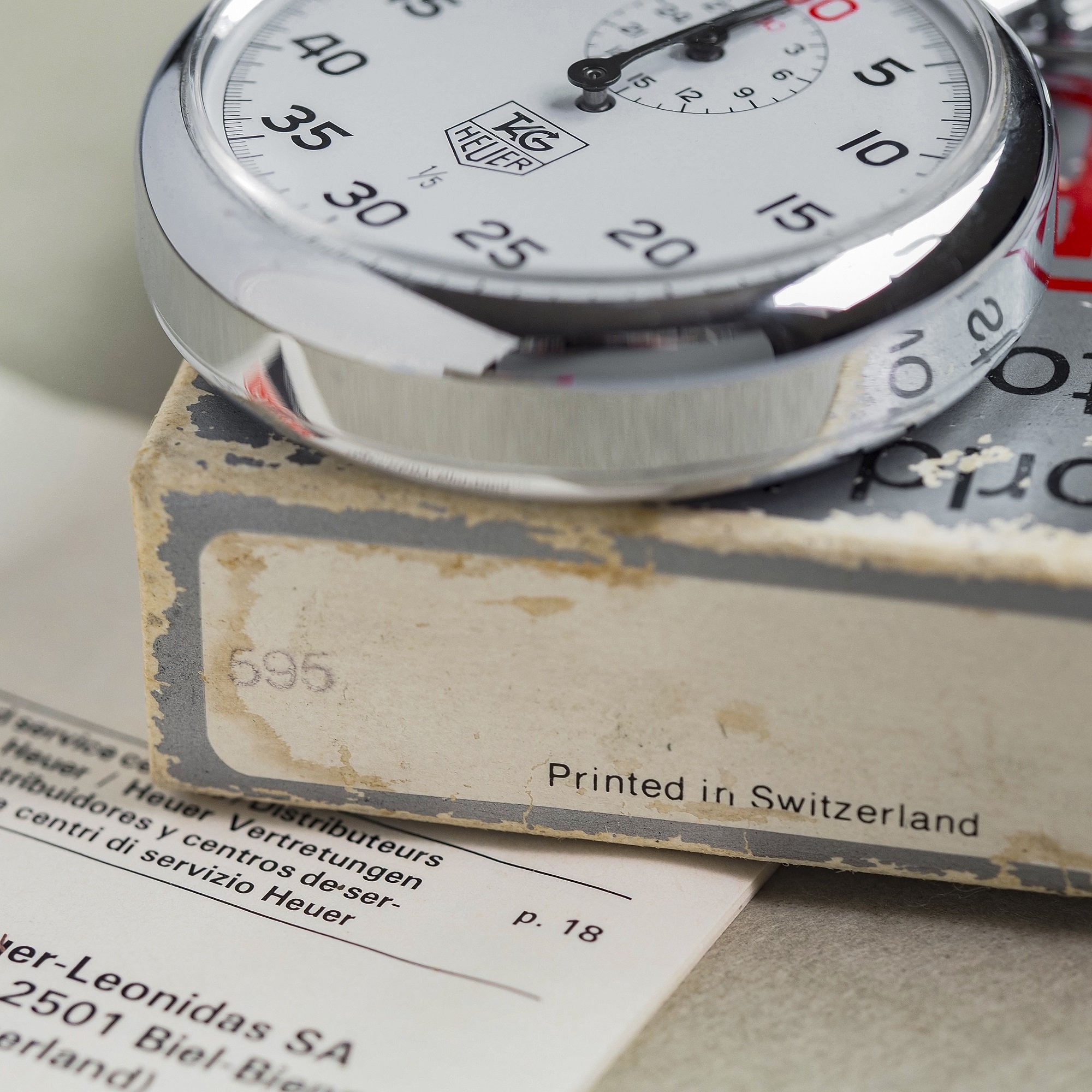·Vintage Heuer stopwatch Ref. 595 with original box and warranty booklet