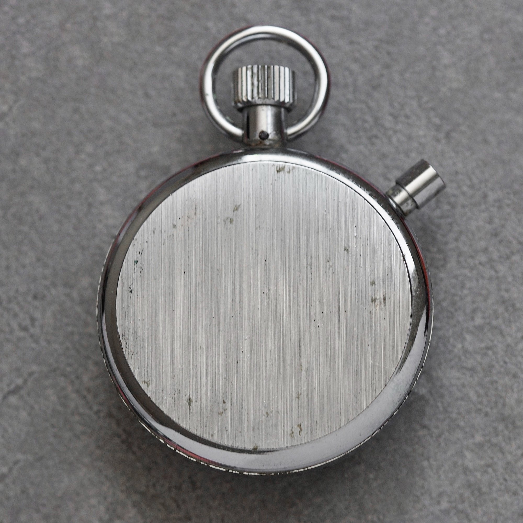 Description: This stainless steel Heuer Trackmate Ref. 592 dates from the late 1970s to early 1980s. Case is in very good condition with strong factory finish on caseback and minimal signs of wear. Dial and crystal are excellent. Stopwatch fully winds, starts, stops and re-sets at ‘60.’ This vintage Heuer Trackmate Ref. 592 is well preserved and looks to have been lovingly cared for.