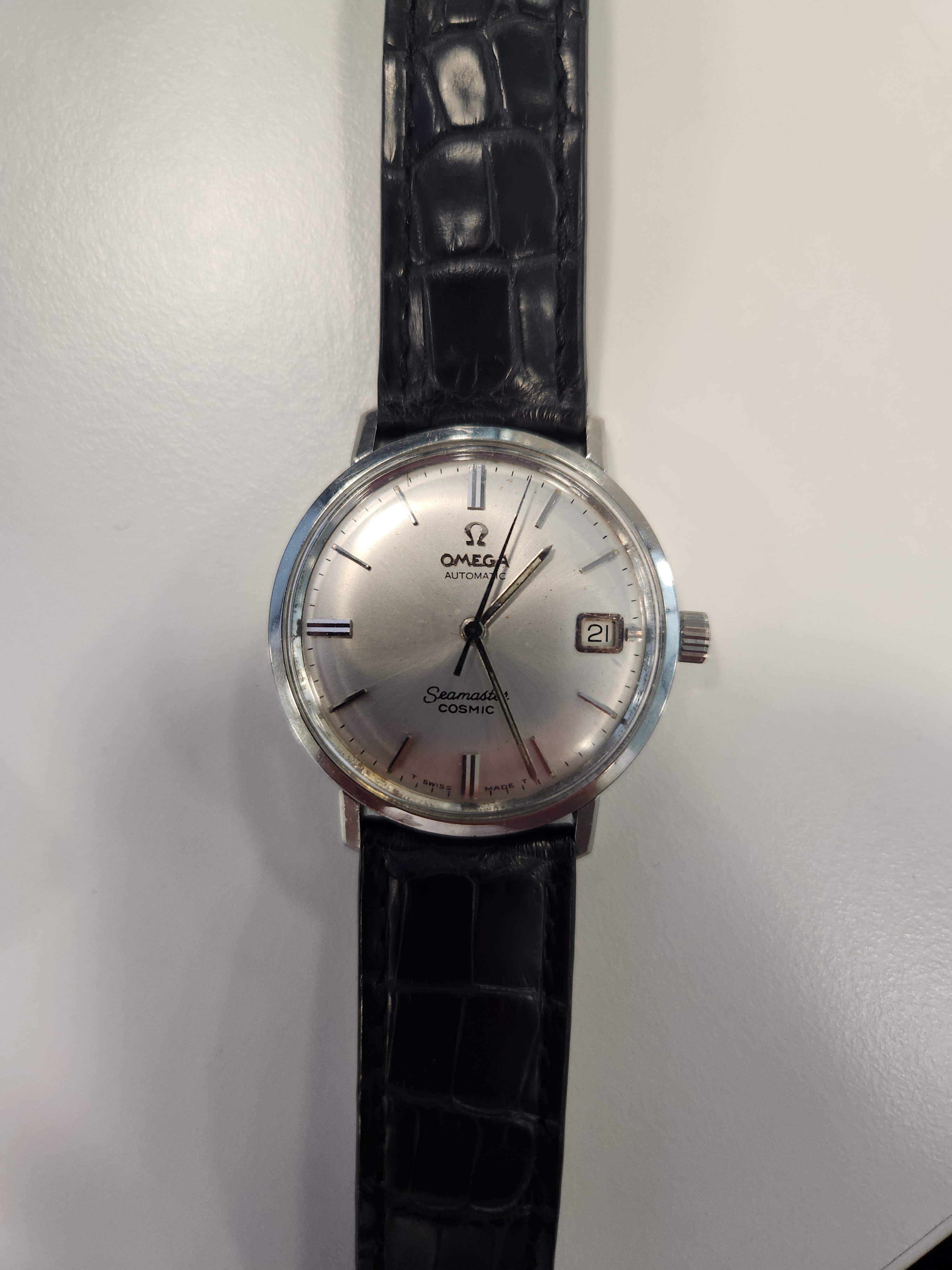 Just got this from an uncle. Supposedly legit but I can't find any seamaster cosmic that are similar. From what I can find on the web, it looks closer to a de ville. If anyone could tell me if it is legit or a Frankenstein, that would be greatly appreciated