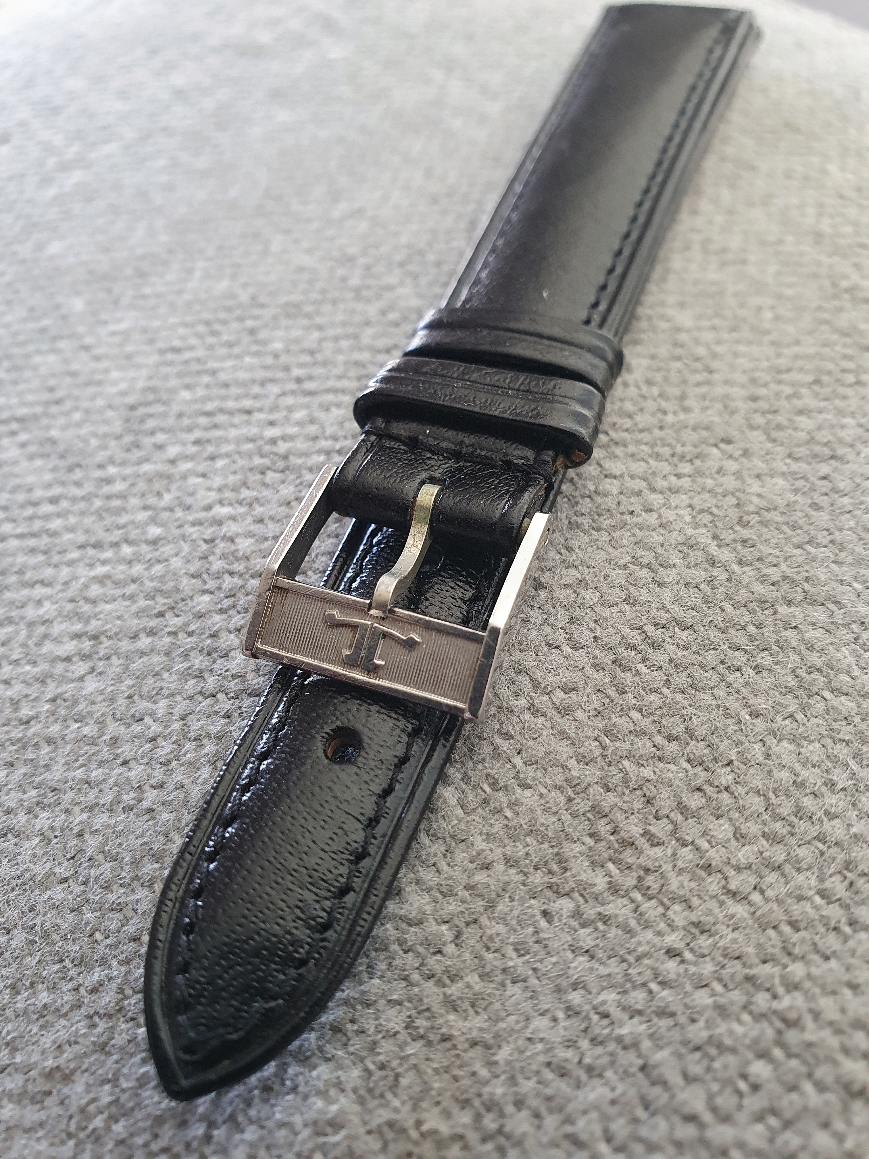 Posts 469 Likes 1,956 Gstp ·Jul 28, 2022 Probably from the 50s or 60s. Unused JLC strap with JLC buckle. Black leather and 16mm wide Never seen another... 150 usd net to me. Shipping is extra.
