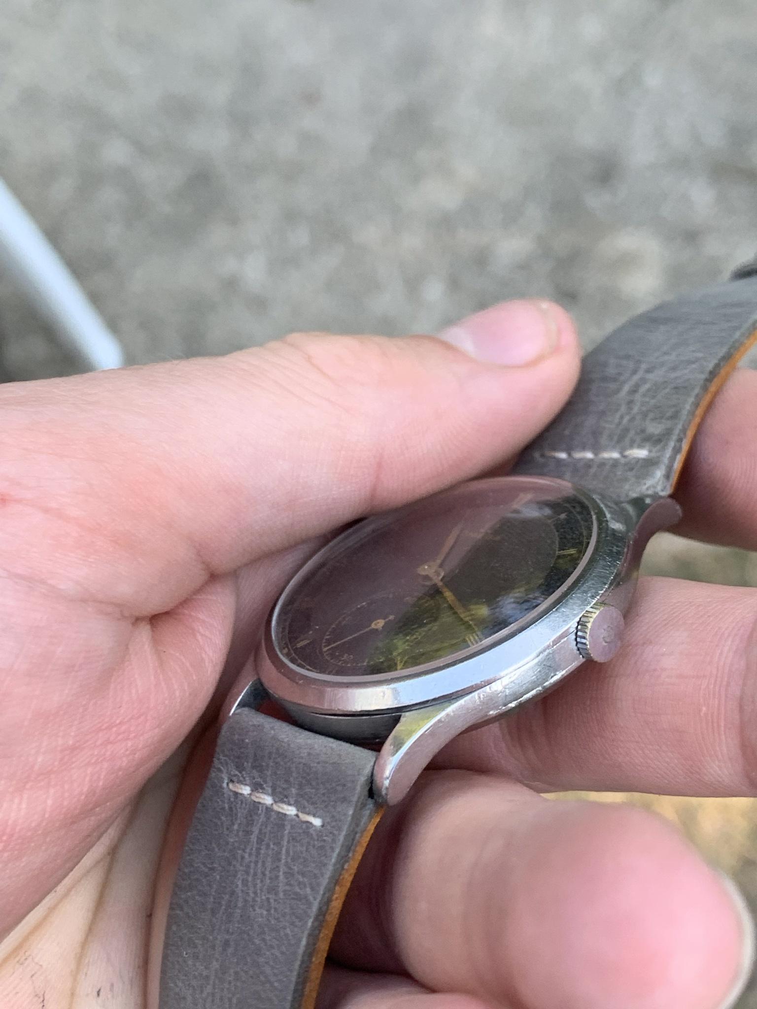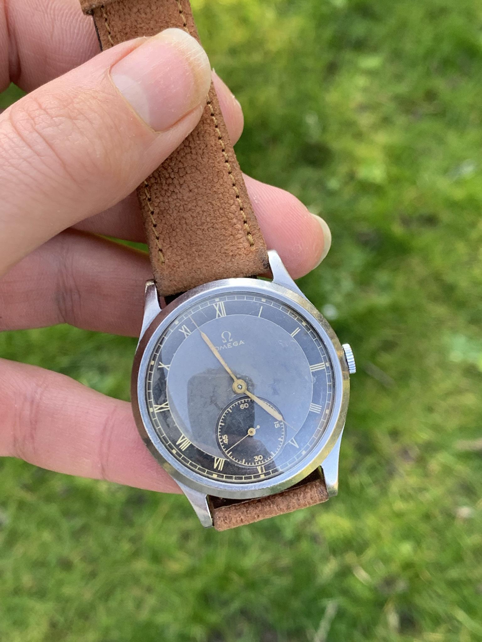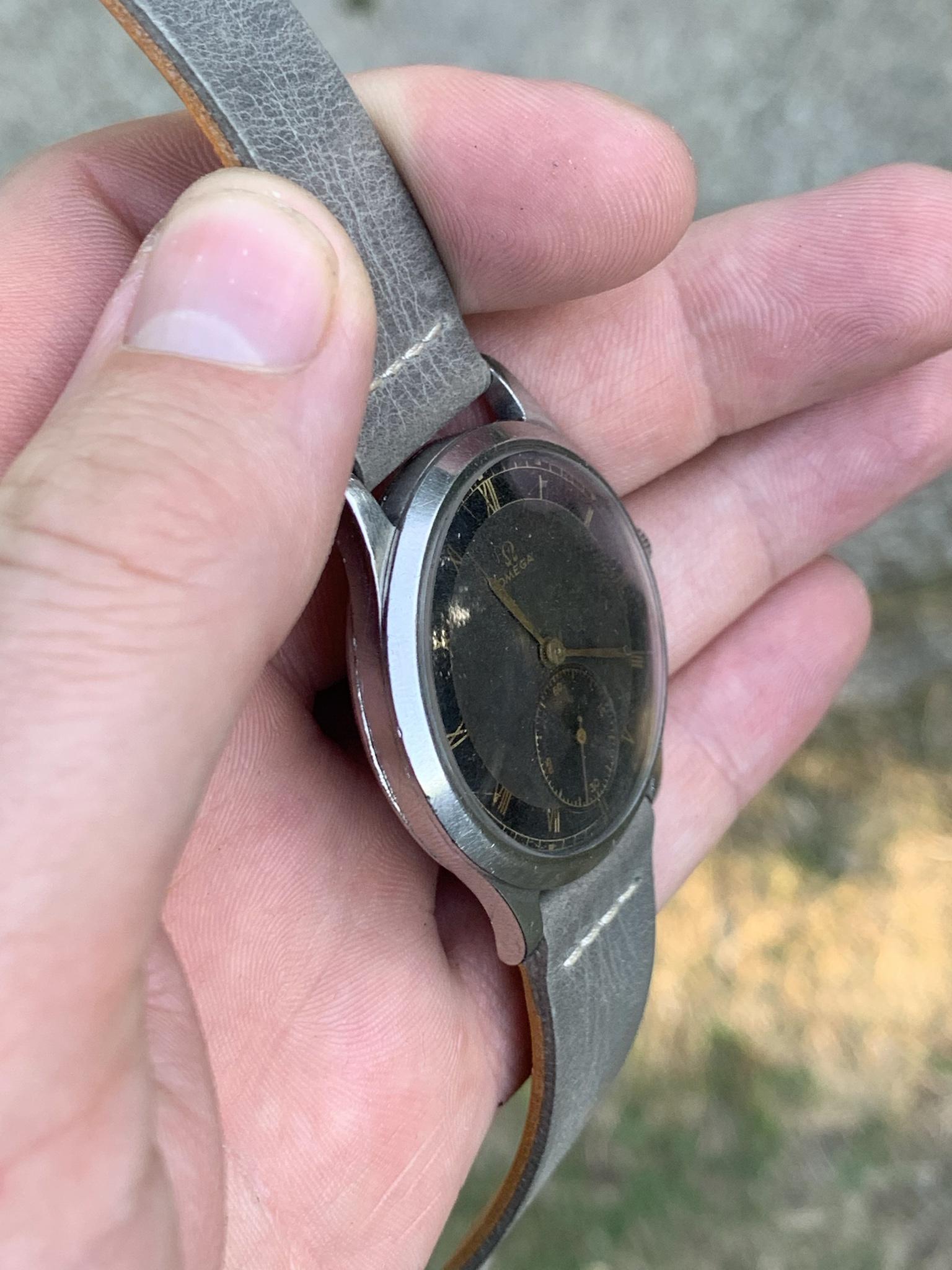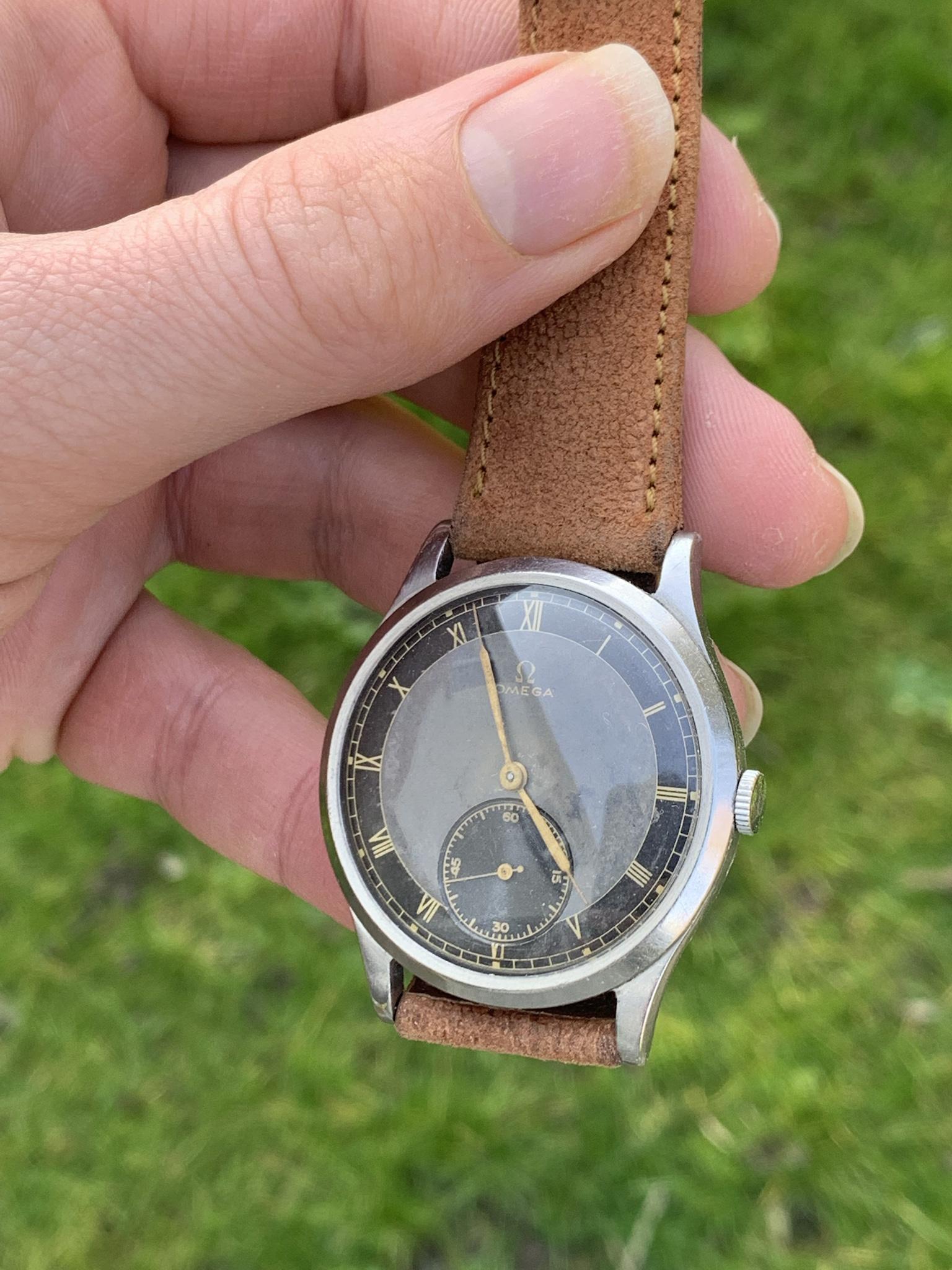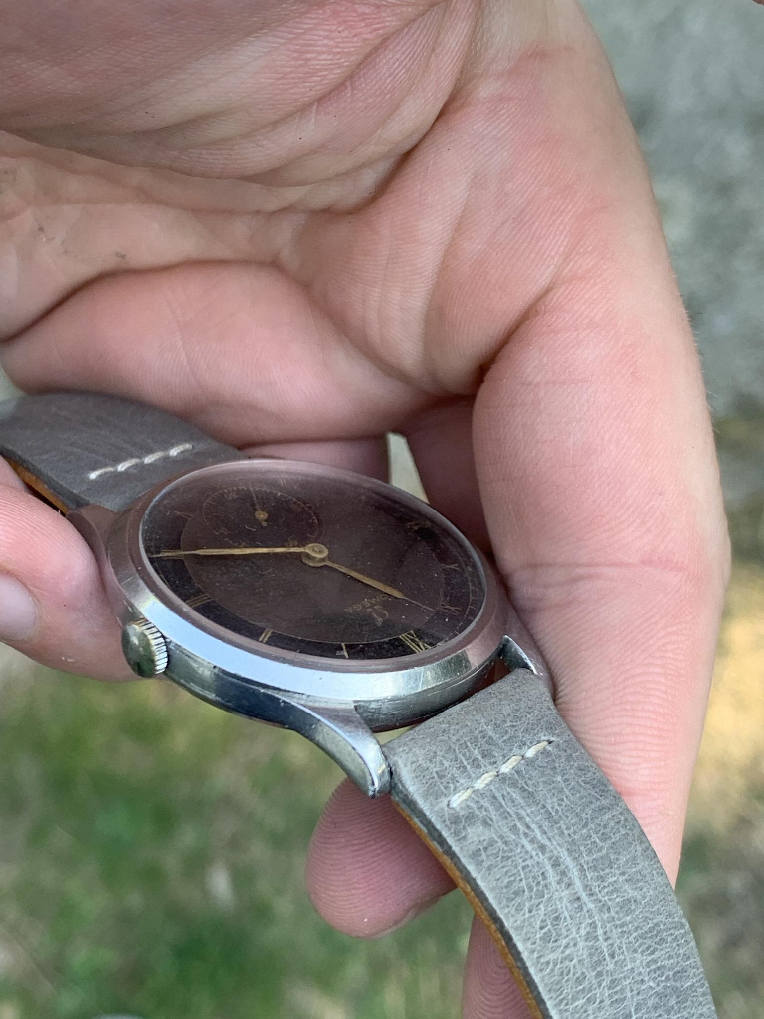 Dial: As you can see for a watch that is 84 years old, this dial is in good shape, there are some marks and patina so please observe the pictures closely. This dial style is incredibly rare, with a bulls-eye style dial, with small seconds dial, and combination of grey and black areas concentric rings, combined with gold 'mirror' numerals. It is quite difficult to picture, so I've taken pictures in various lighting conditions to help represent it in all sorts of situations.