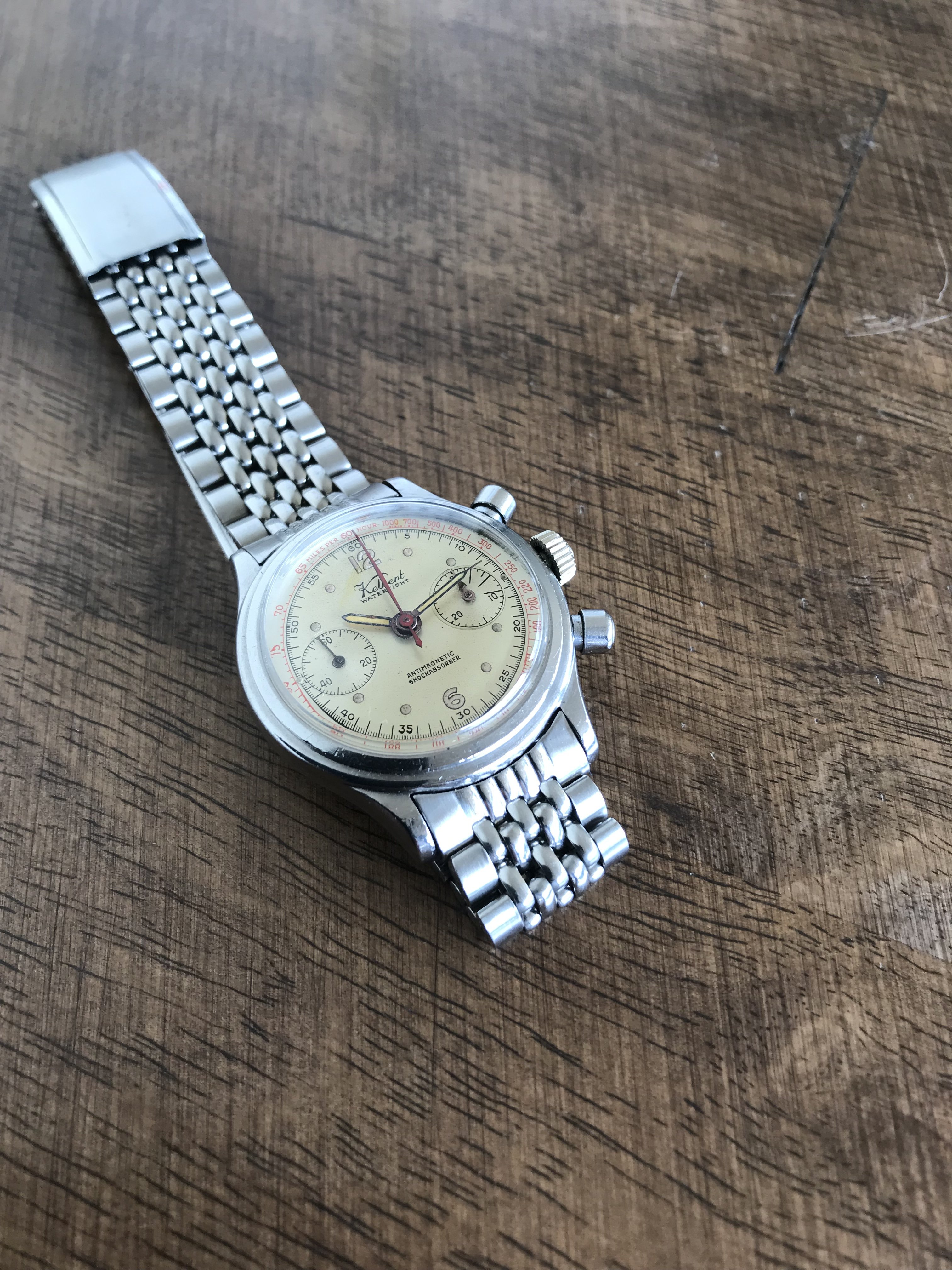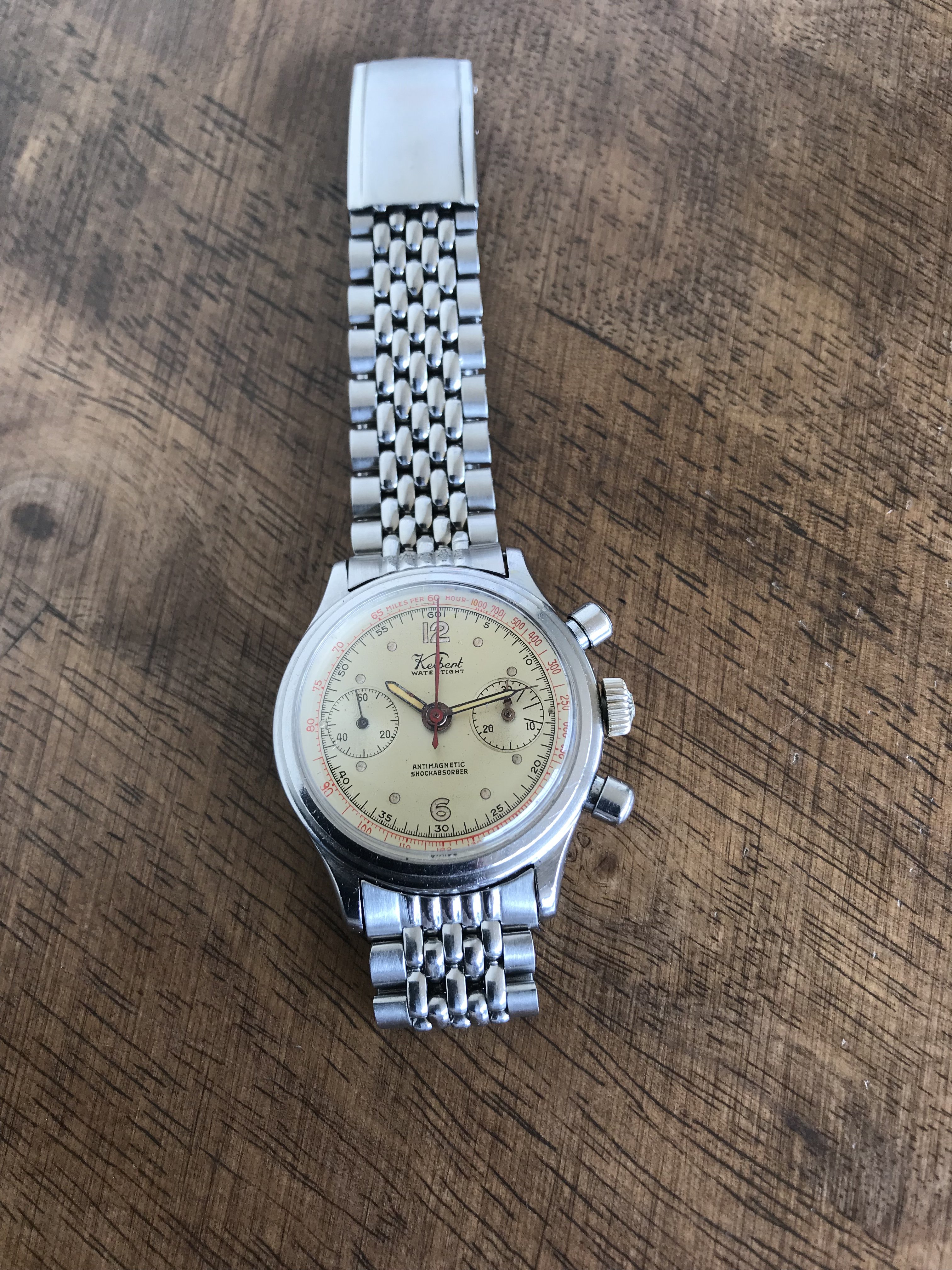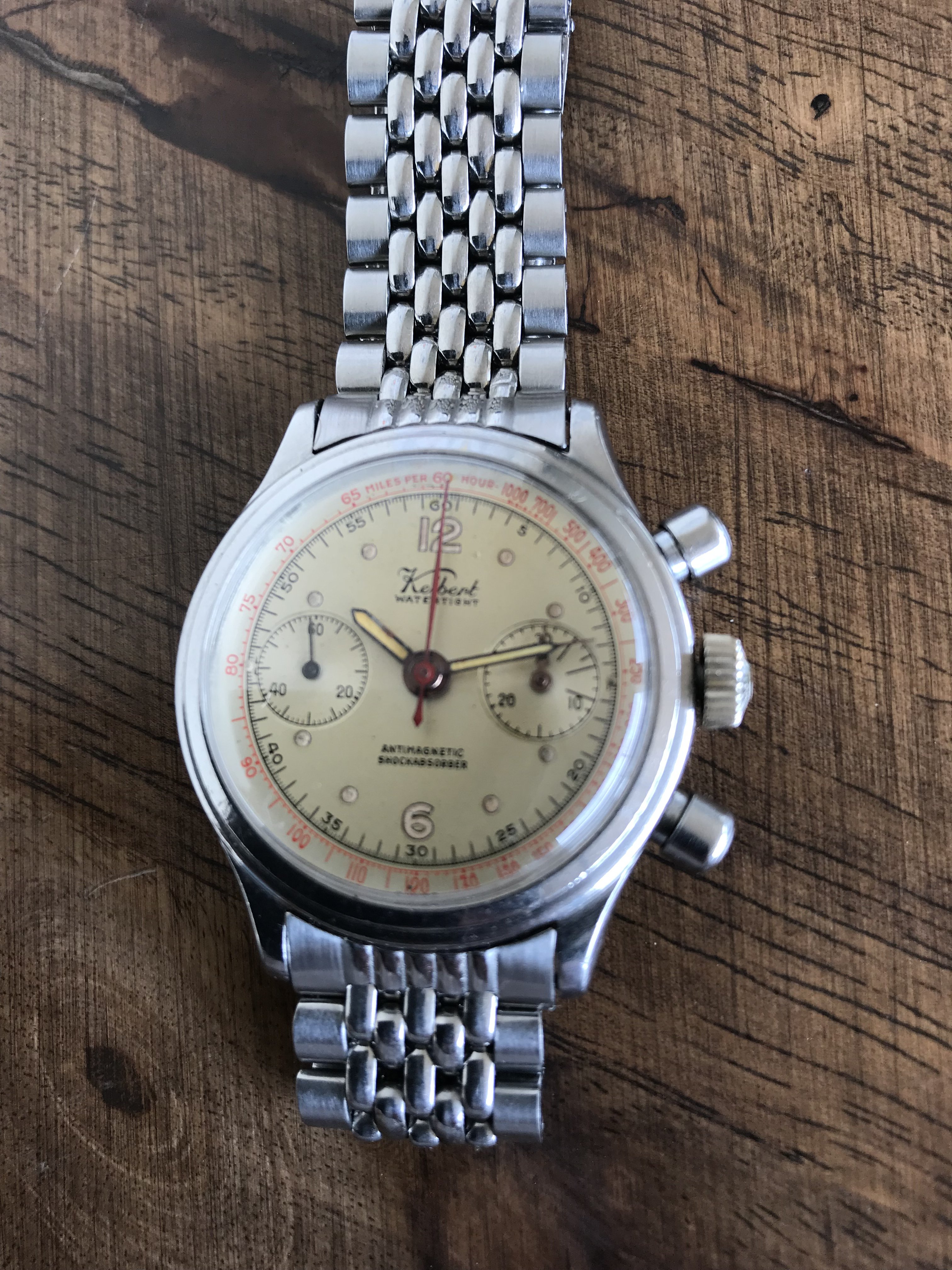 ·The clear-out continues. Looking for new home is a vintage Kelbert chronograph from the 50s era.
