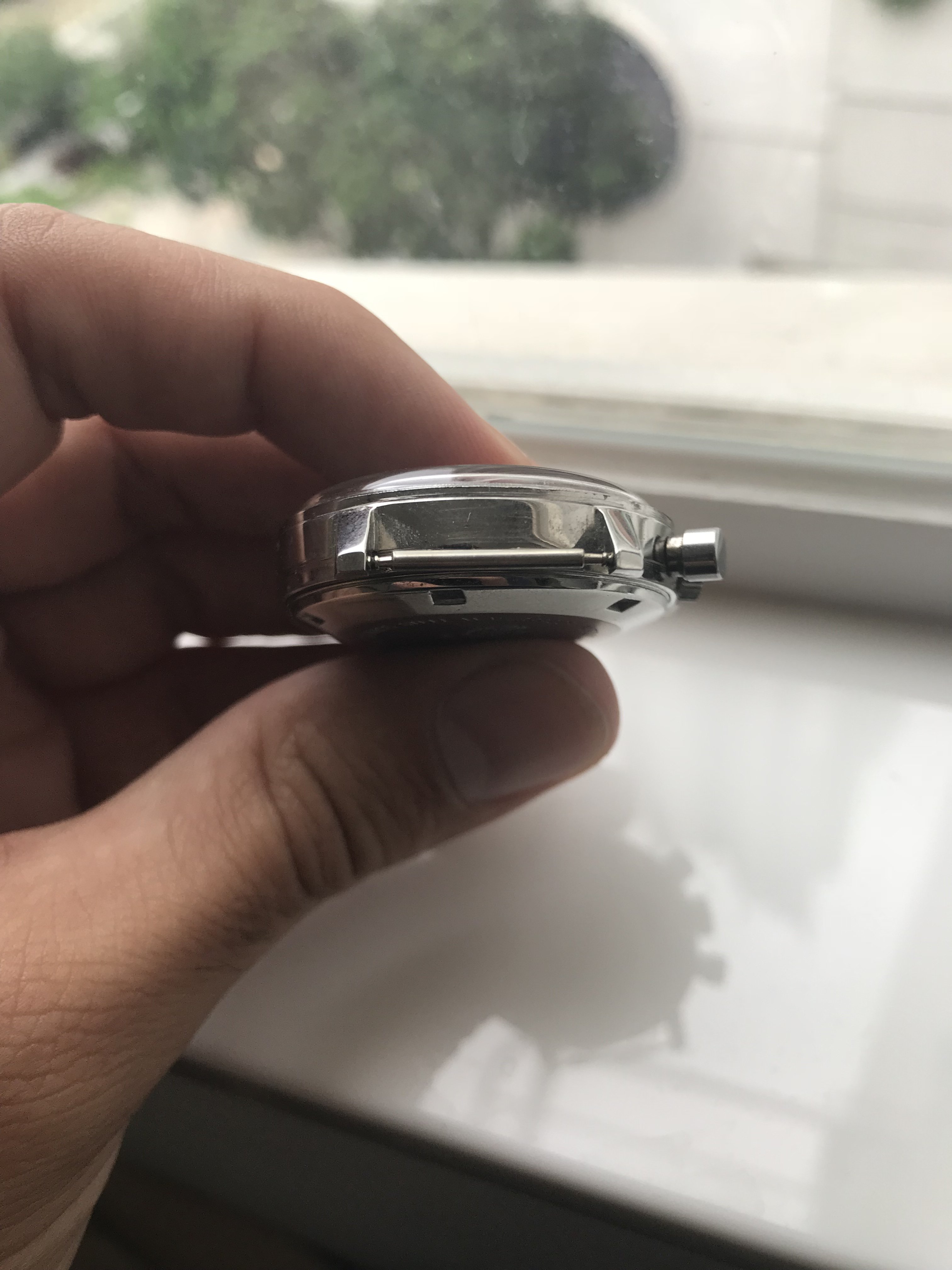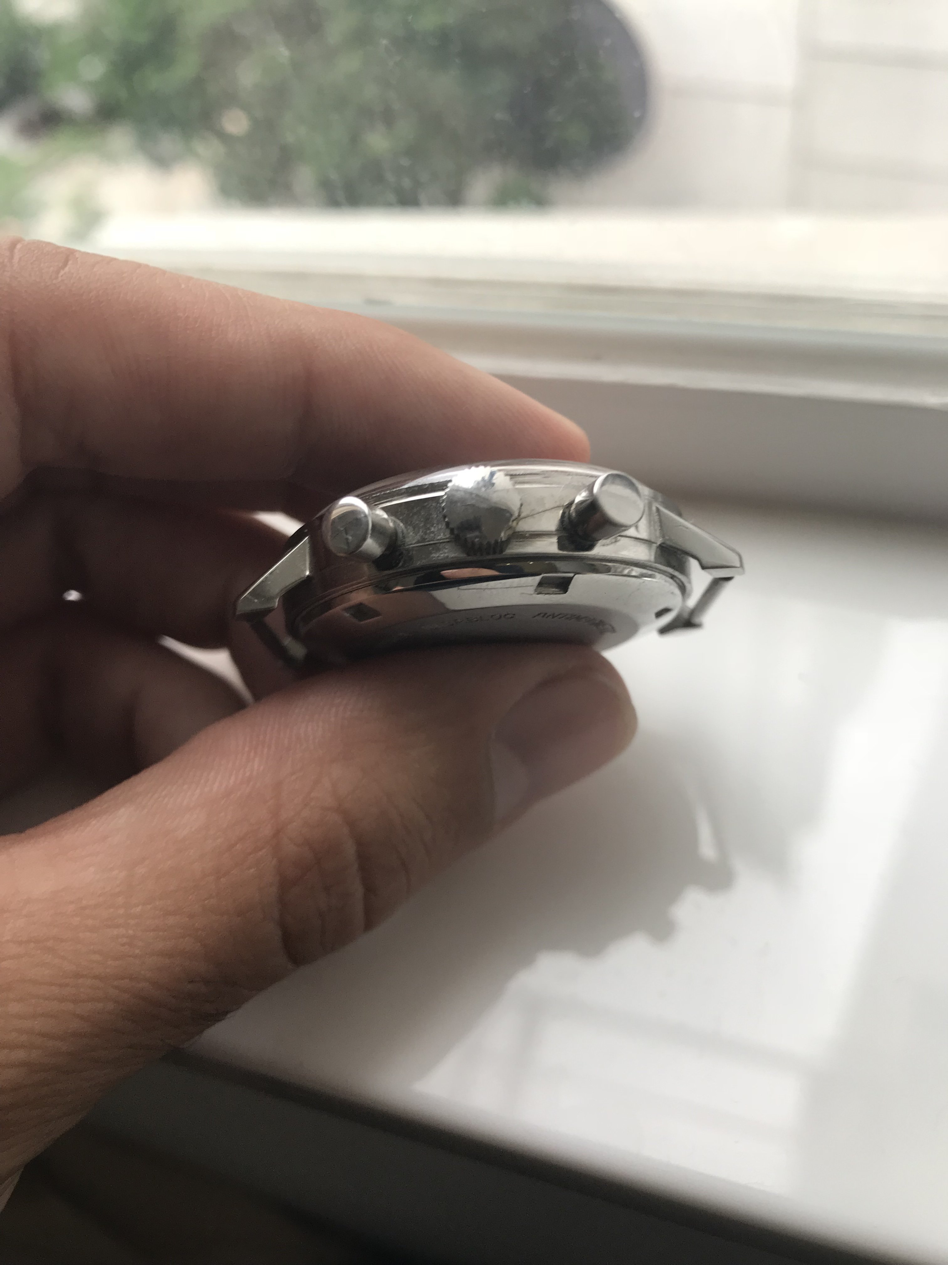 The bad: It is missing the inner tachymeter ring which was on the original crystal. It also has a replacement tachymeter hand.