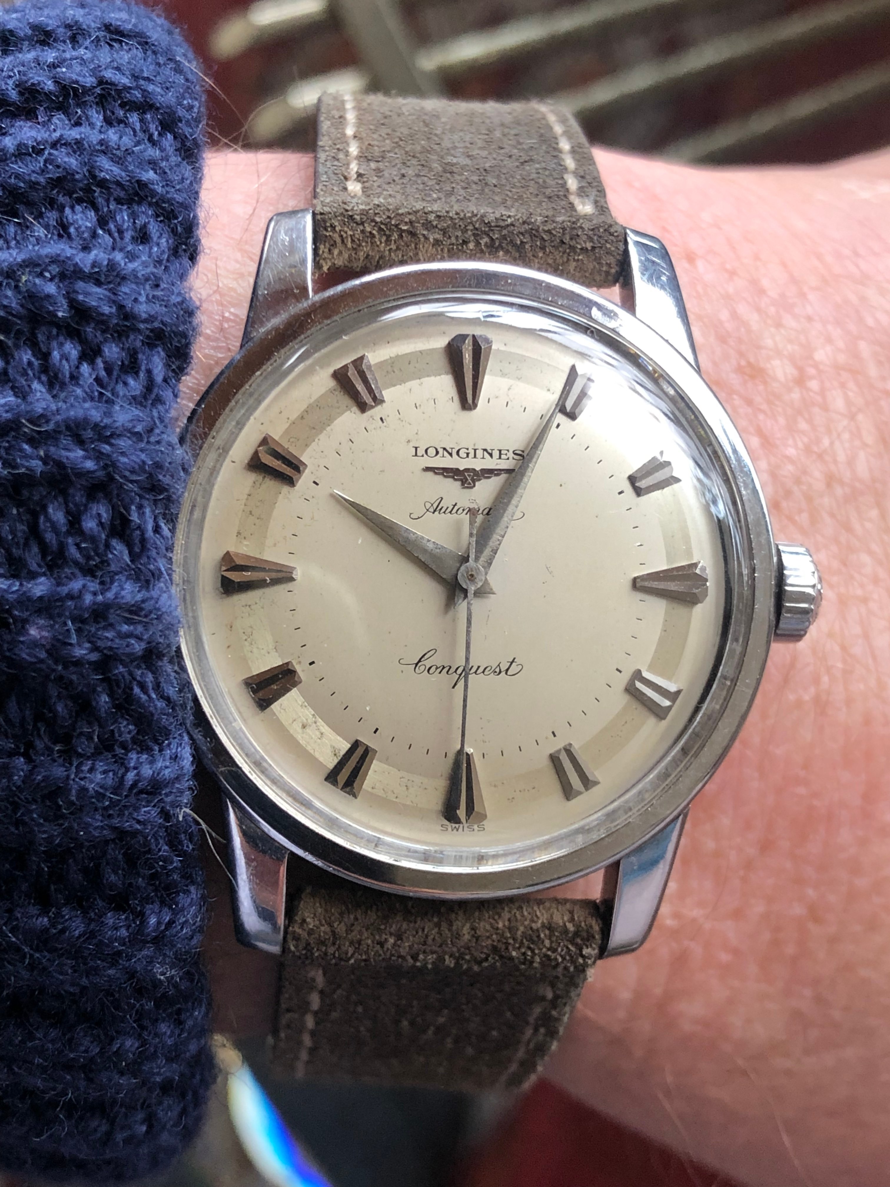 As you can see in the photos, Longines Heritage department confirms this watch was invoiced in May of 1955. Serial number being 9.4 million suggests a manufacture date of 1954, the very first year of the Longines Conquest model.
