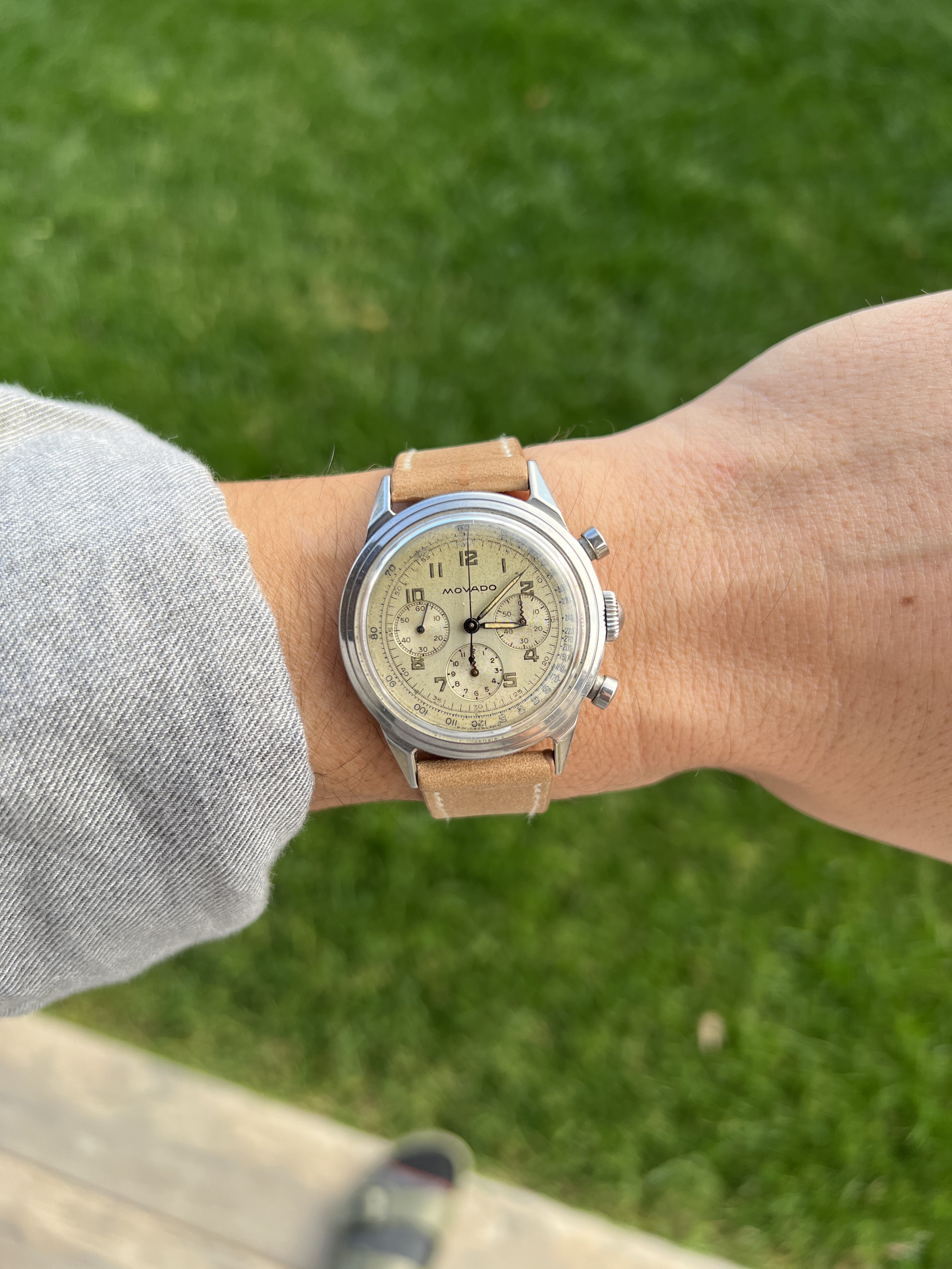 About the watch: Just such a cool watch with a great history, first modular chronograph, FB case, the Kris Hands, etc., there's a great reference article on Rescapement here: https://www.rescapement.com/blog/for-your-reference-the-movado-fb-95m