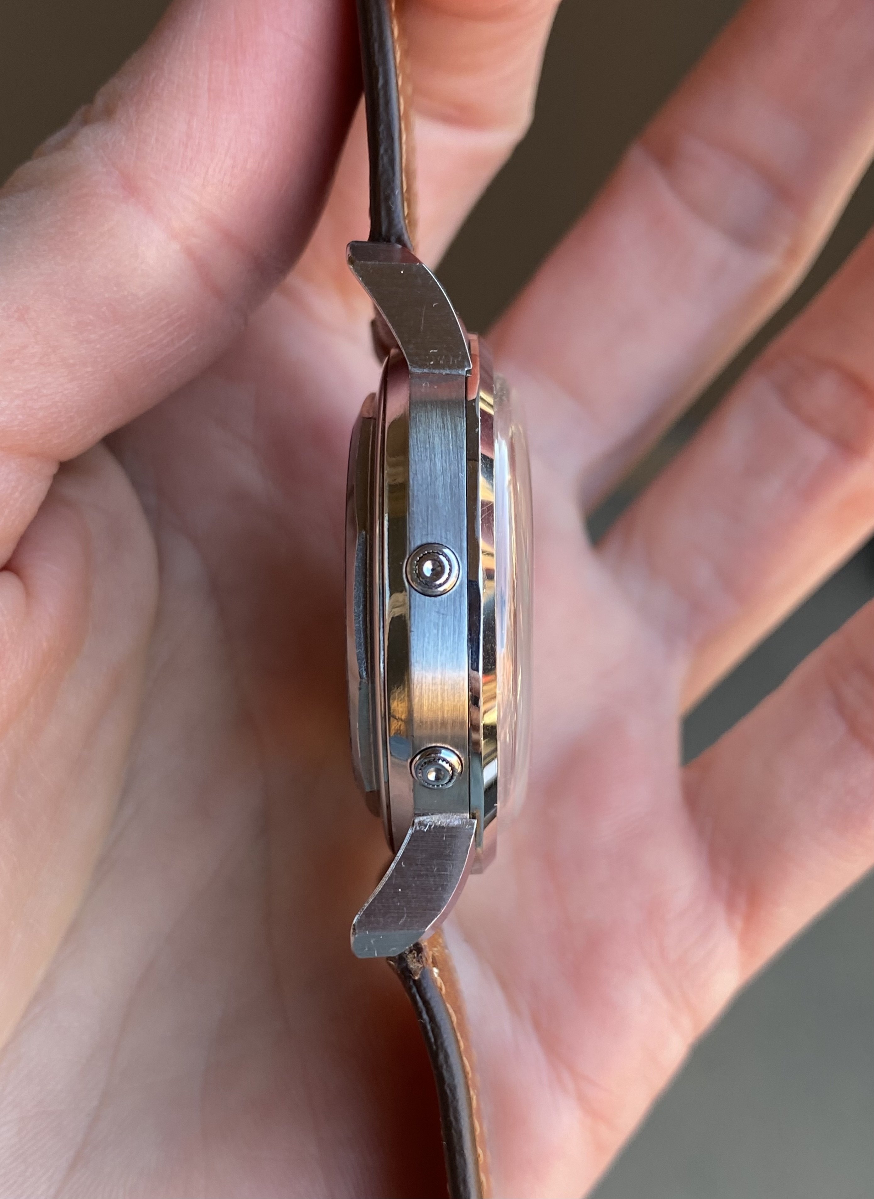 Case: Original, unpolished 37.5mm stainless steel case is almost perfect. There are just a few scratches on the lugs from light use. I’ve put a clear sticker on the caseback to protect it from wear.