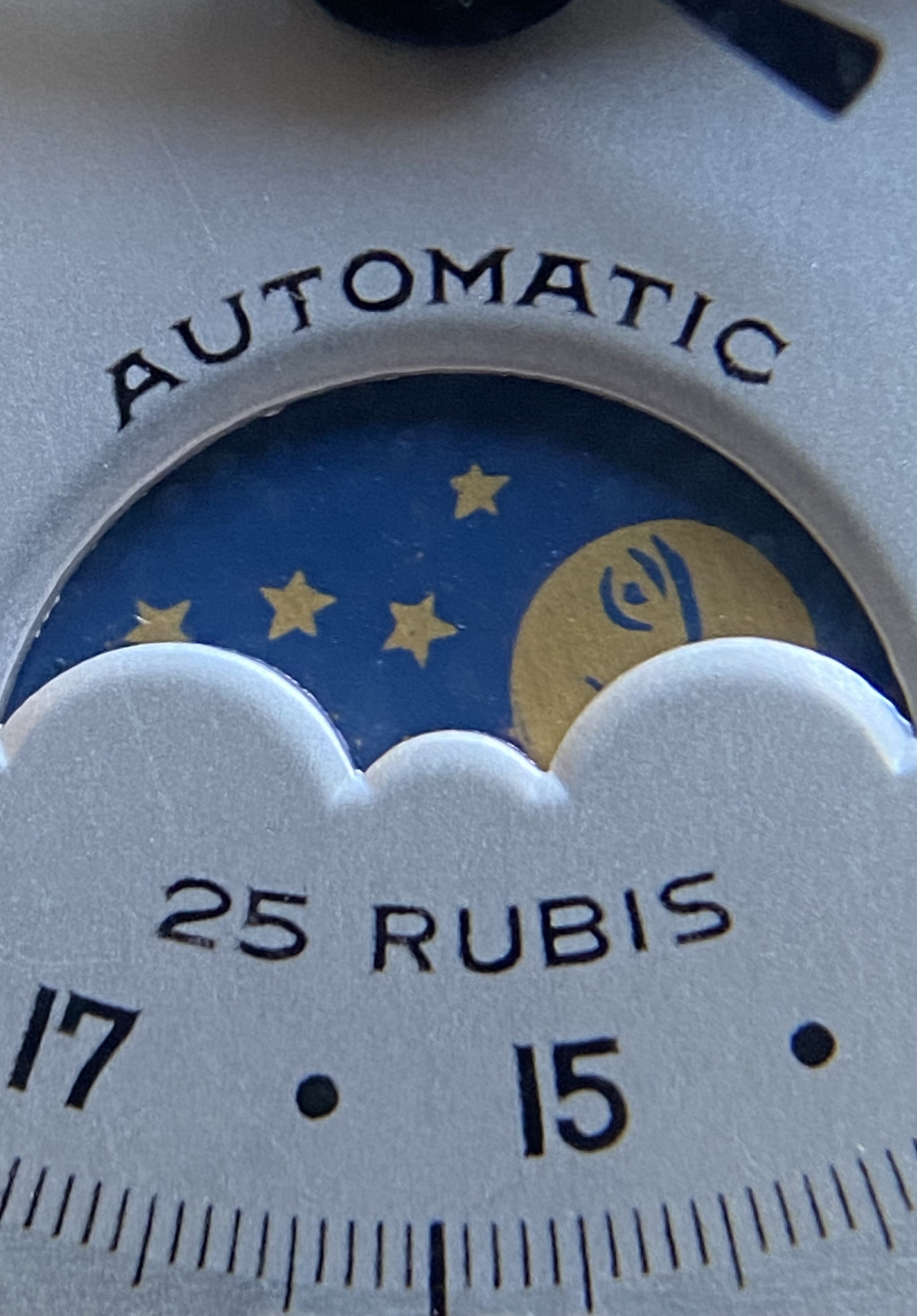 Dial: Original, non-refinished dial is in outstanding condition. Colors are vibrant, including the stunning blue moonphase disc. Day of the week and month I believe are in Italian.