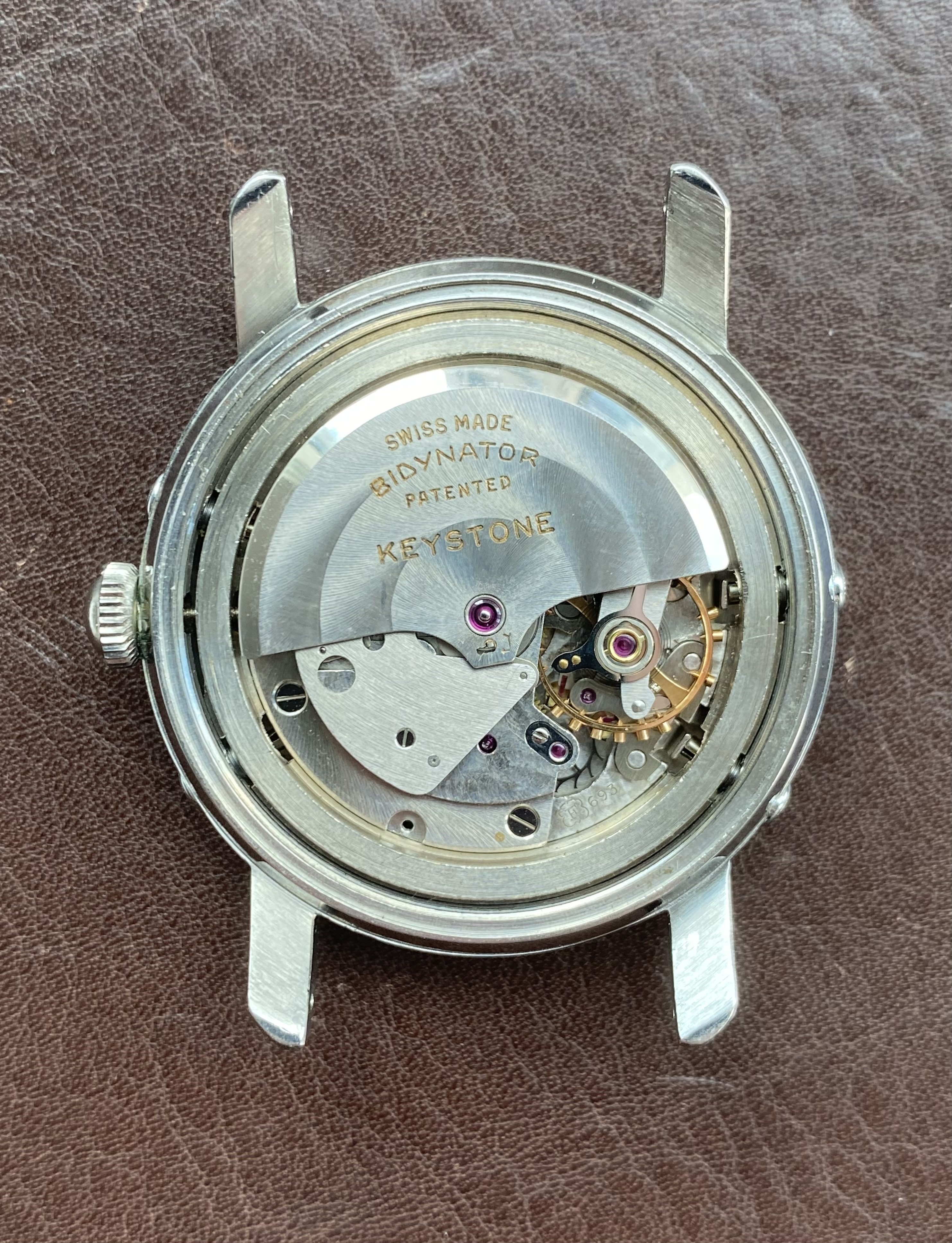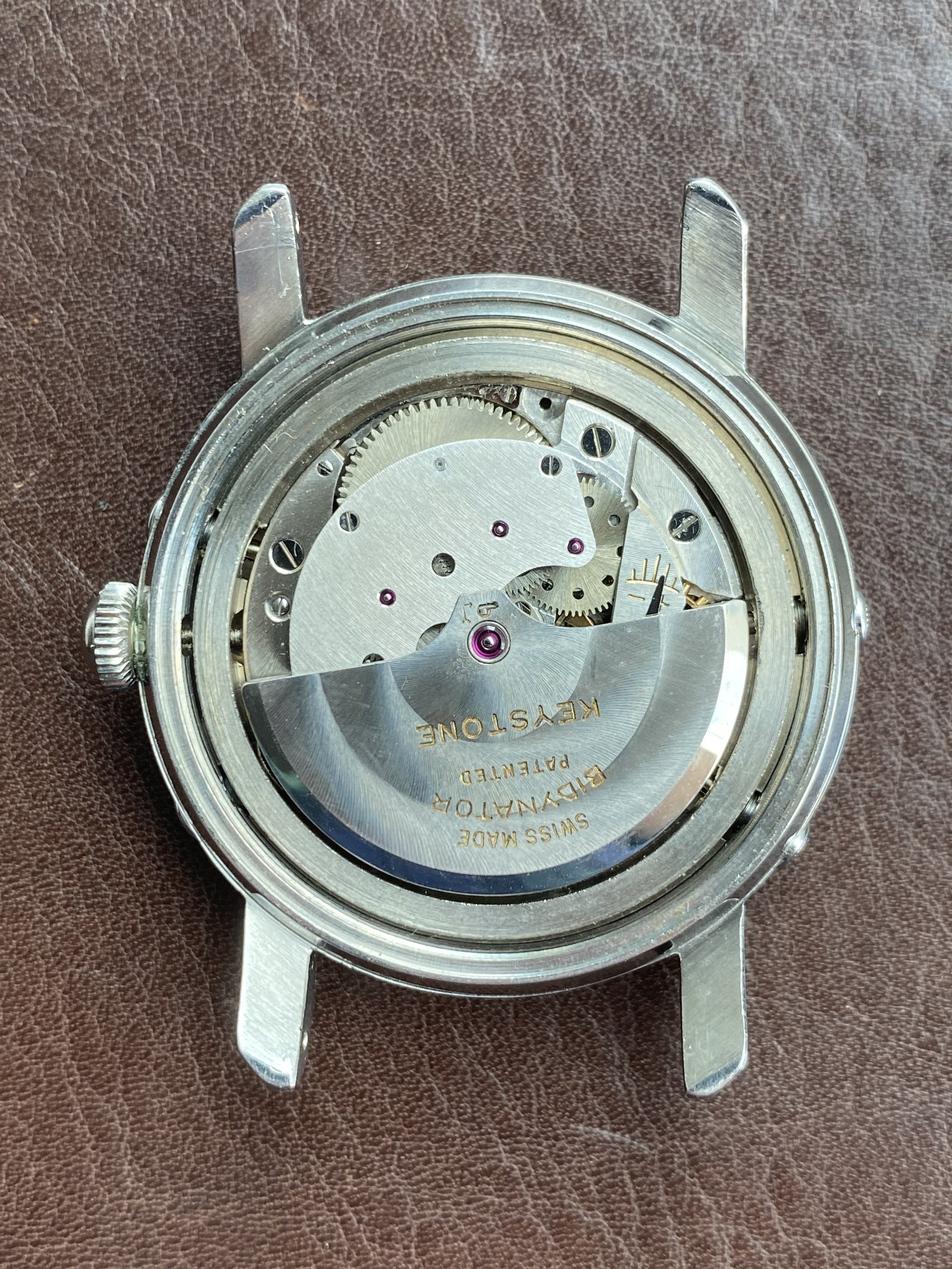 Movement: Original Felsa 693 Bidynator automatic triple date moonphase movement runs, winds, and sets well, but service history is unknown so as always, a service is recommended prior to regular use.