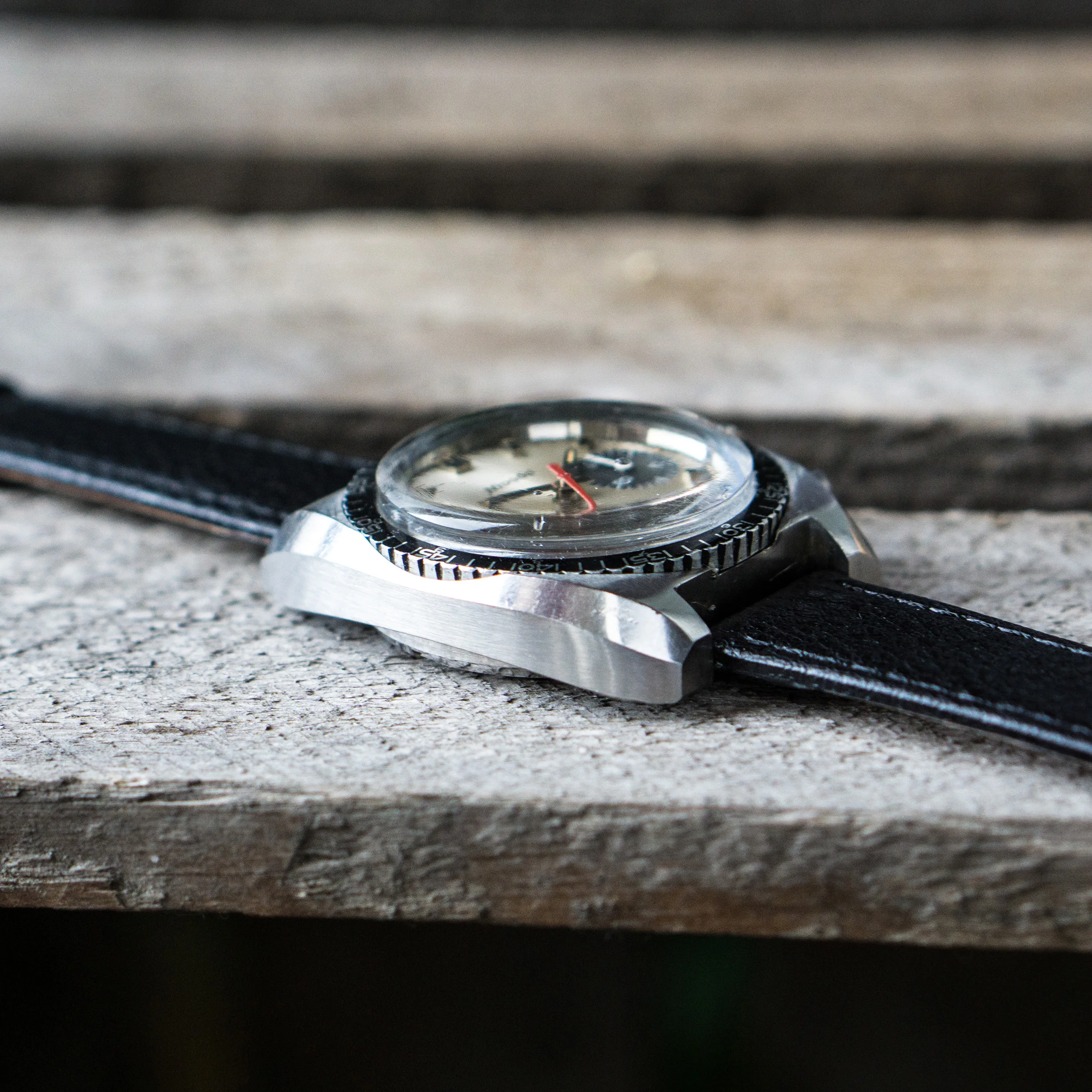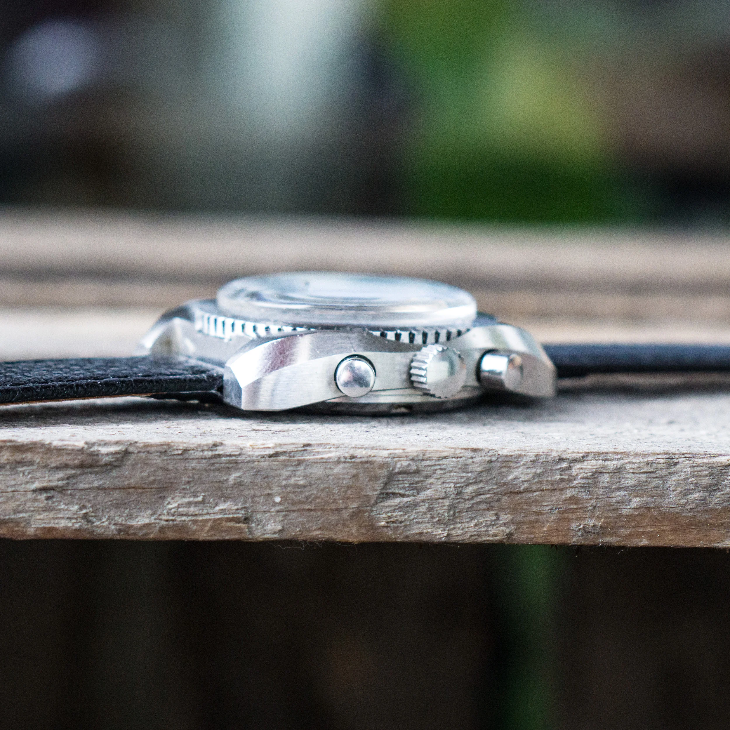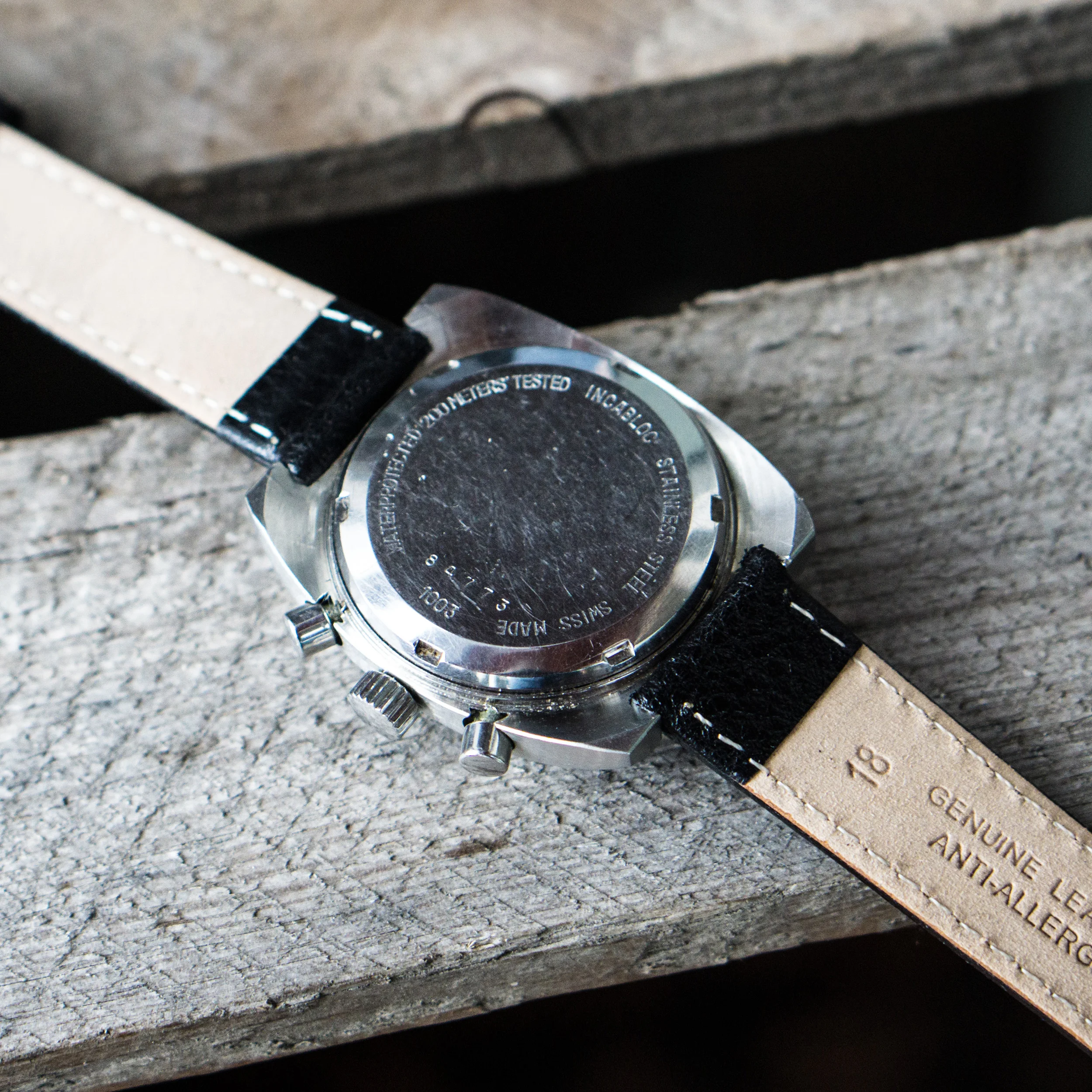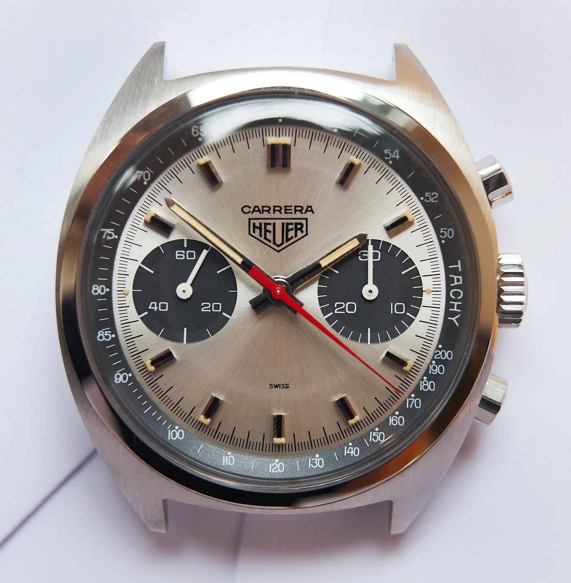 to fund something new, I am selling this obscurity. Its a Nivada with wonderful panda dial and 37,5mm stainless steel case, that houses a Valjoux 7733. Obscure, cause until today there is just one watch of this kind known. It uses the later known Nivada Chronosport case and an interesting dial, that is the same as for the panda Heuer Carrera 73353, just with the Nivada lettering. It also uses the same hands, that we find on Heuer Chronographs. The dial itself was unknown as was the whole watch. I had some interesting conversations with Nivada guys, who are pointing that it was a potential prototype or design patent. I bought the watch from Switzerland