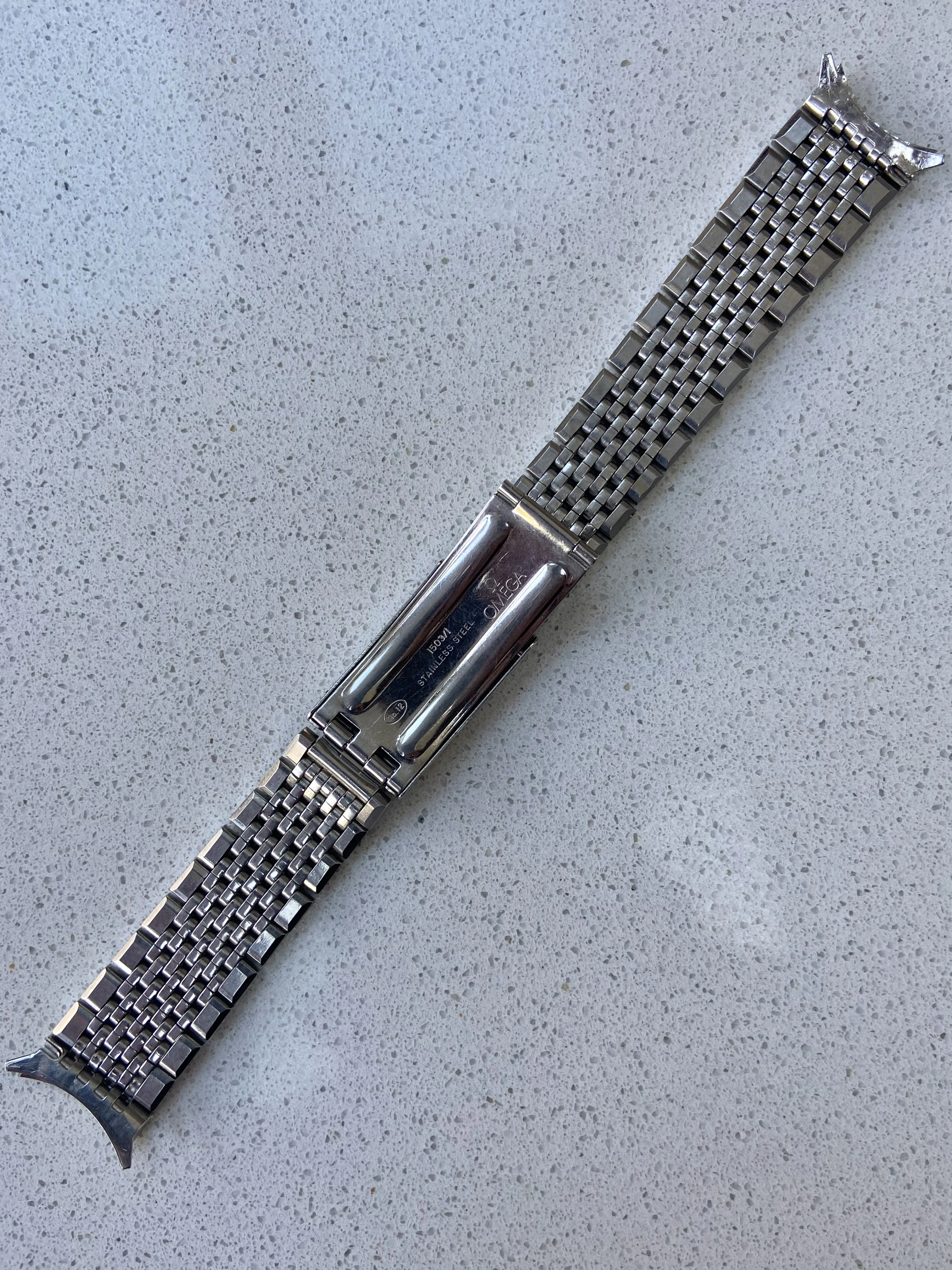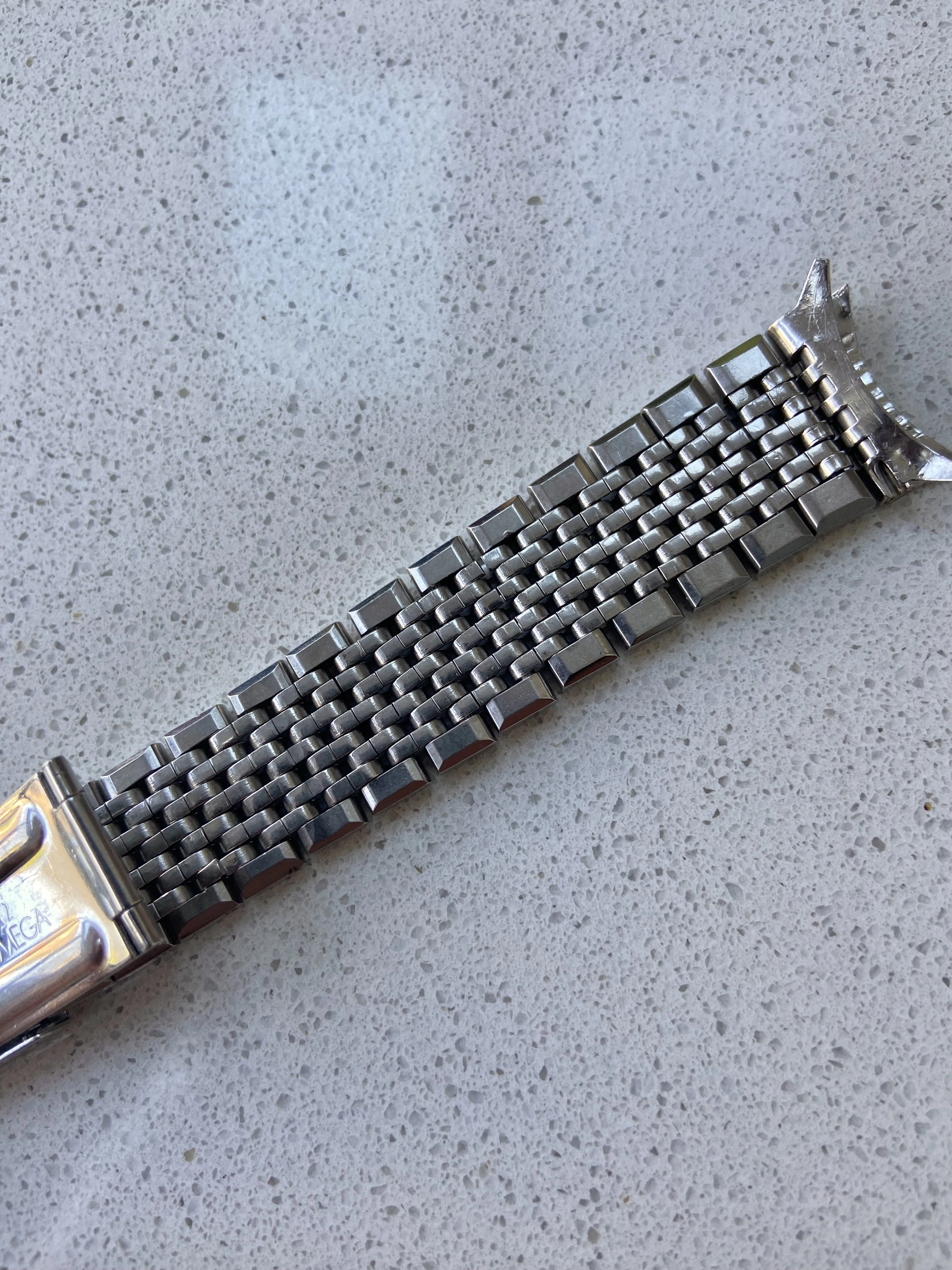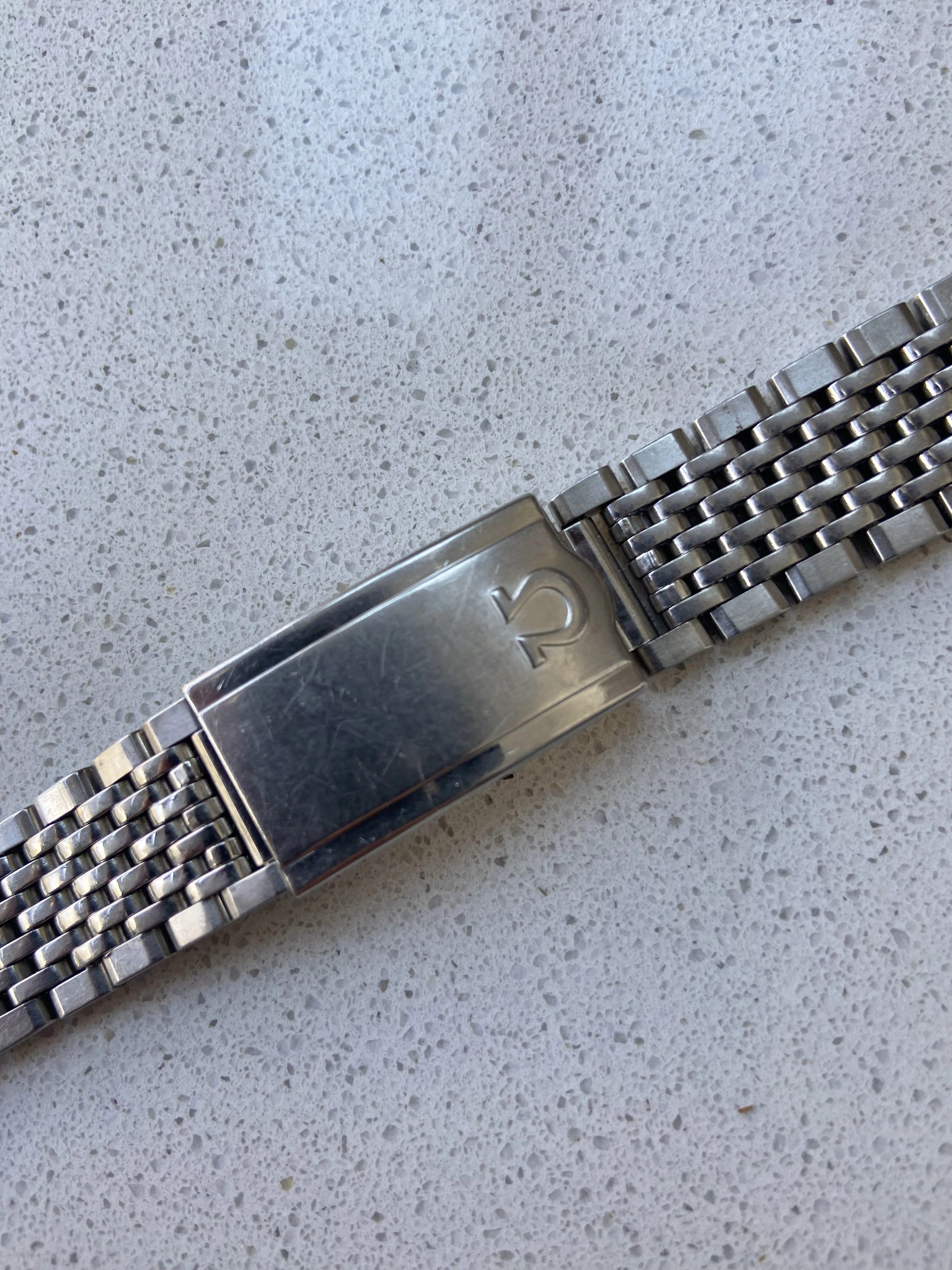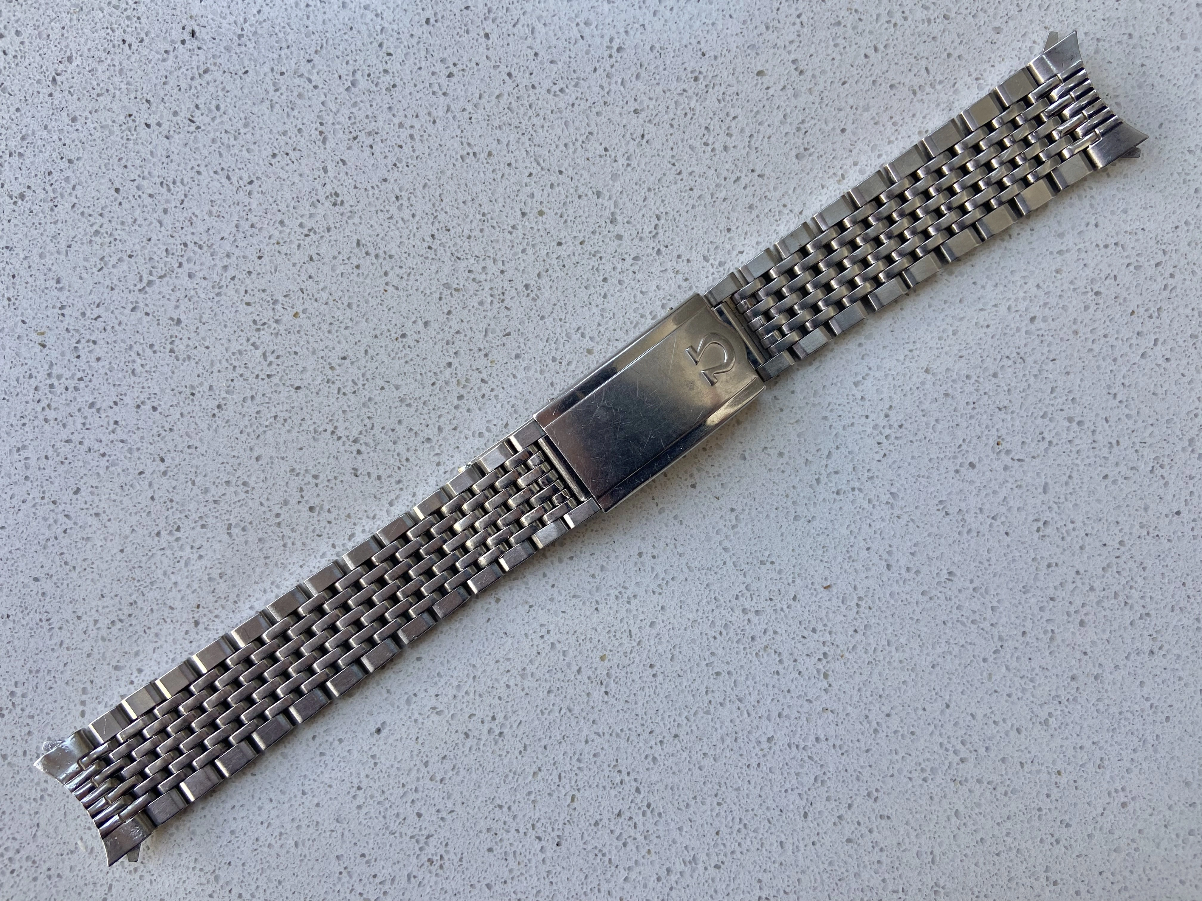 ·Vintage Omega 7 row beads of rice bracelet reference 1503/1. This is the version with integrated 18mm curved Endlinks, suitable for various 60’s Seamasters, Constellations, Geneves etc. As the Endlinks are integrated, they cannot be swapped for other Endlinks without cutting them off.