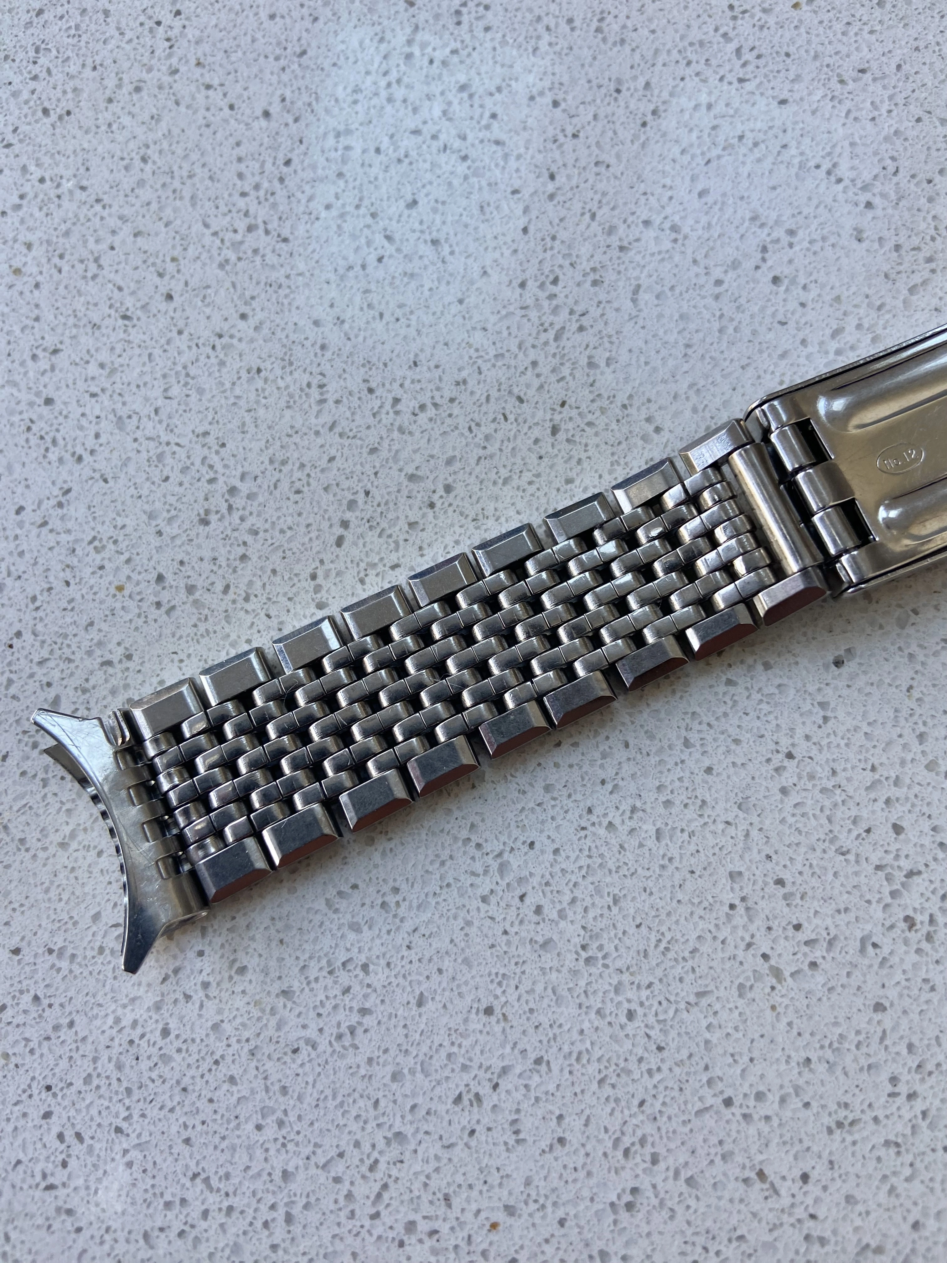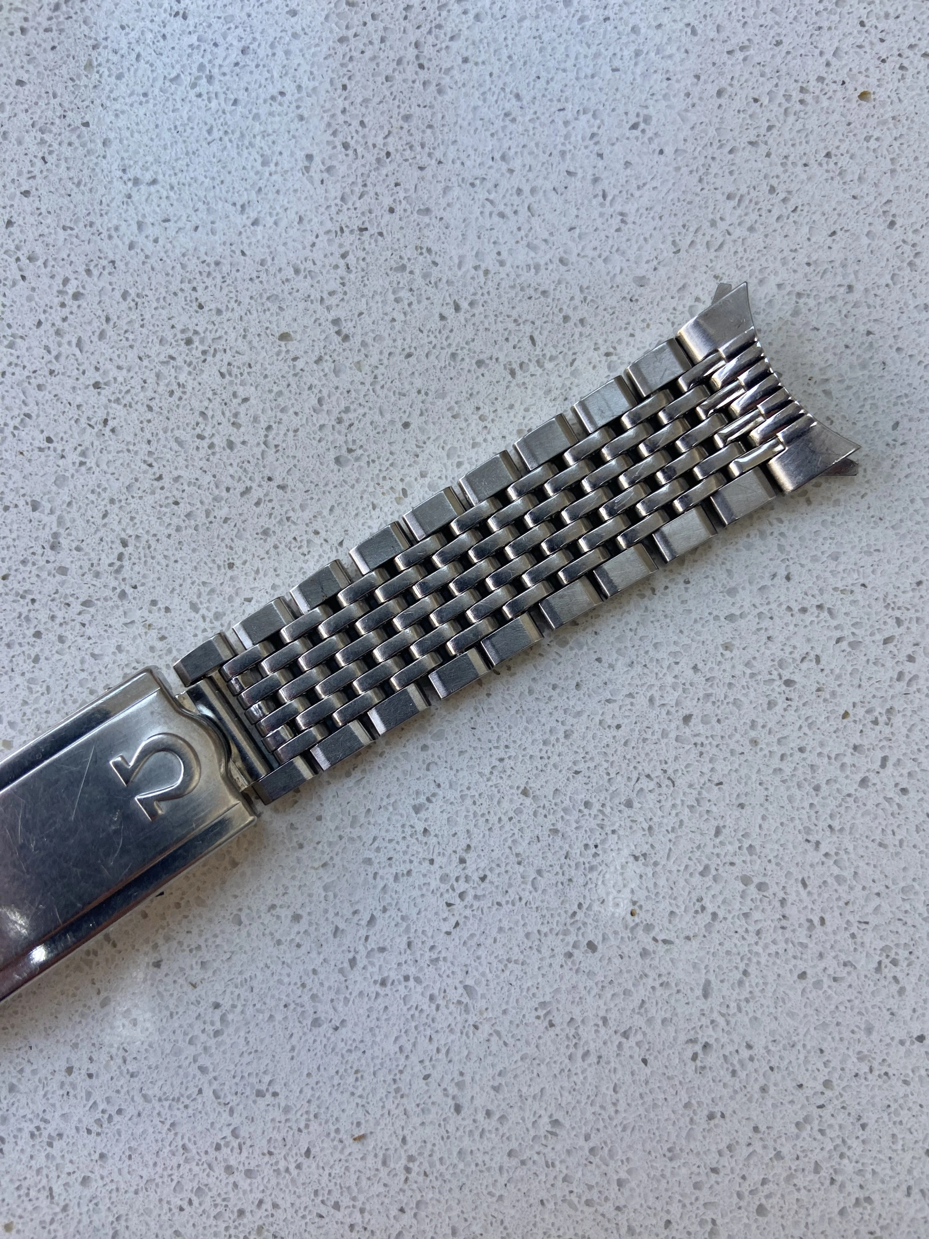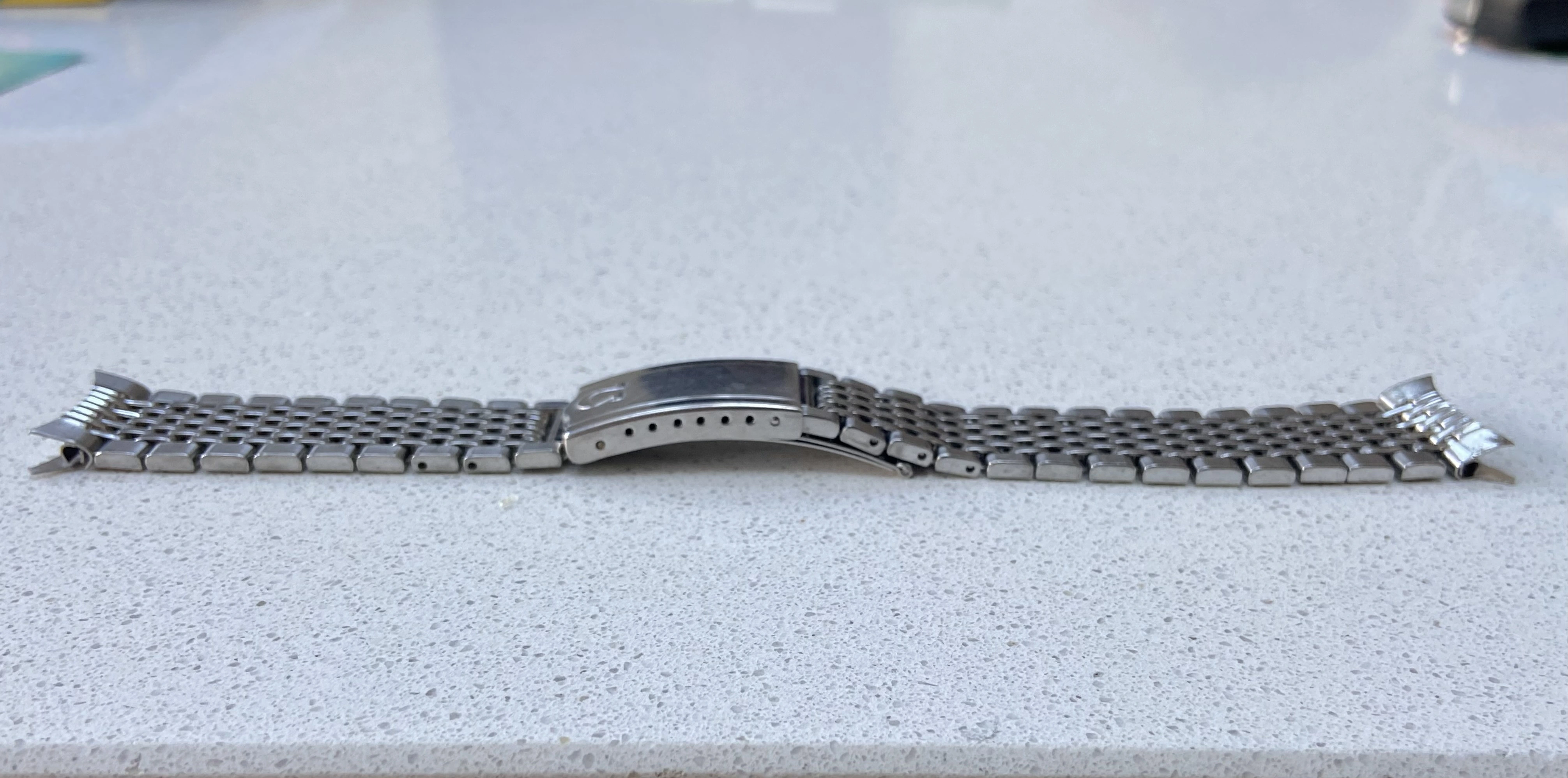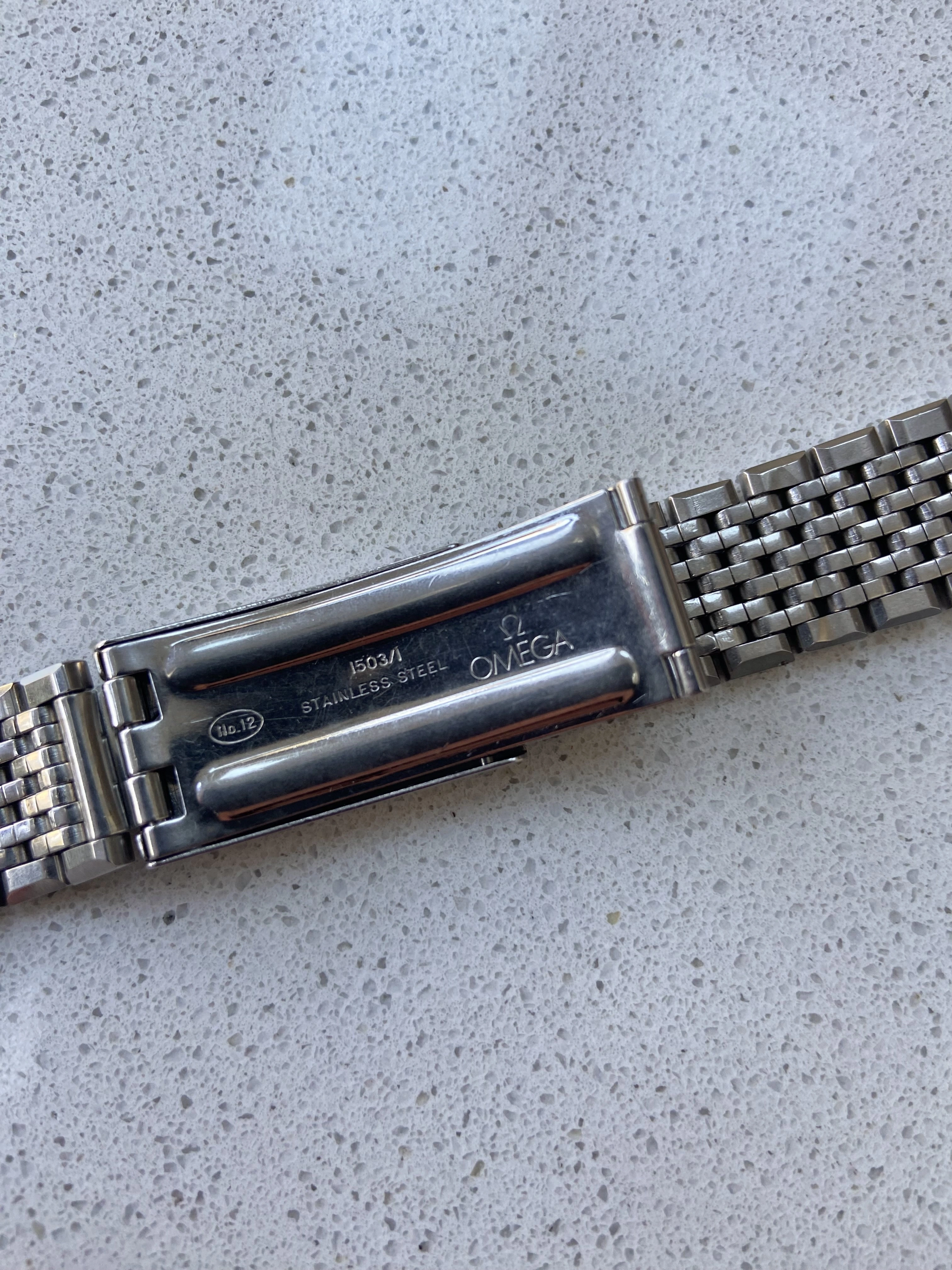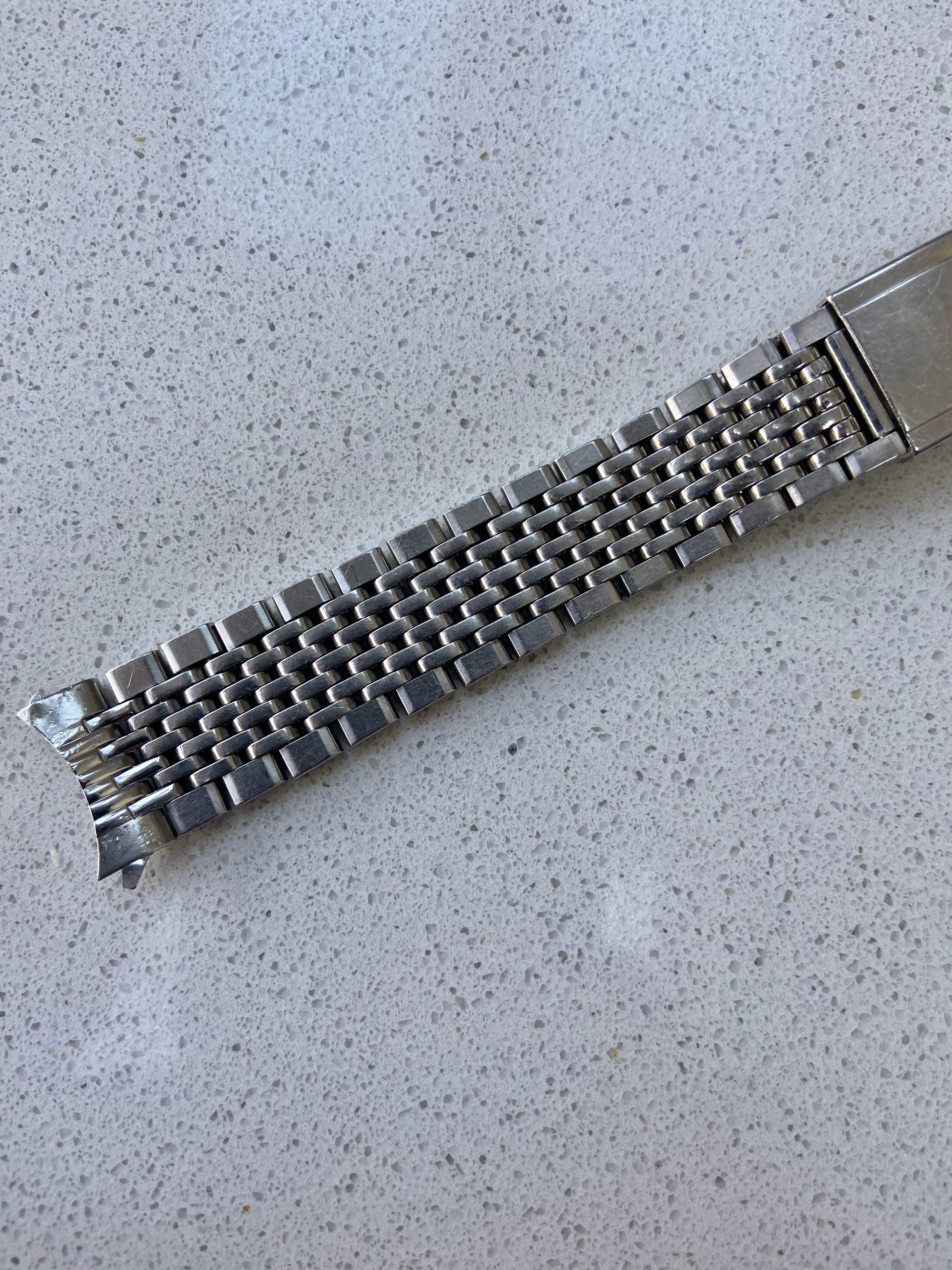 ·Vintage Omega 7 row beads of rice bracelet reference 1503/1. This is the version with integrated 18mm curved Endlinks, suitable for various 60’s Seamasters, Constellations, Geneves etc. As the Endlinks are integrated, they cannot be swapped for other Endlinks without cutting them off.