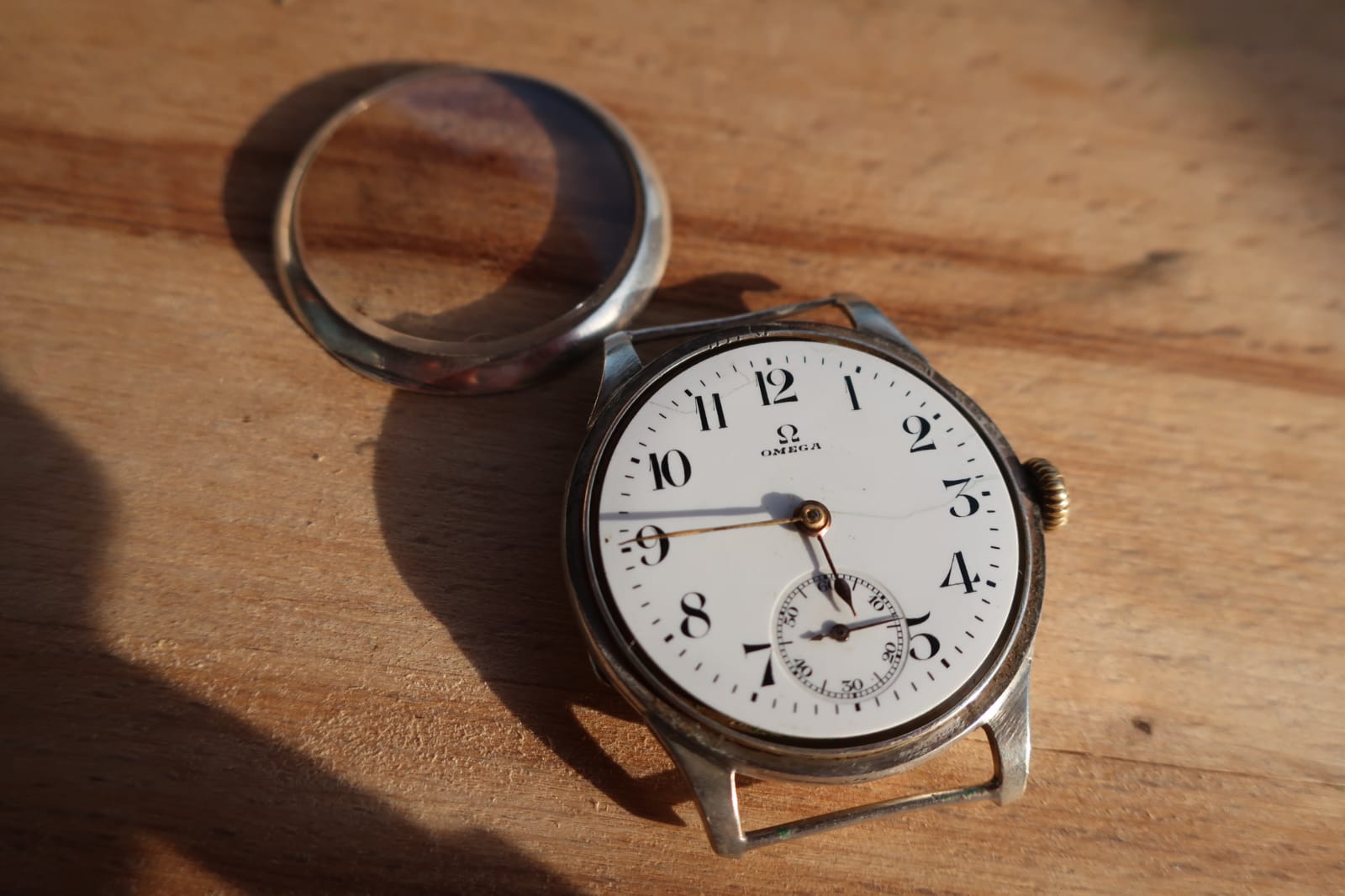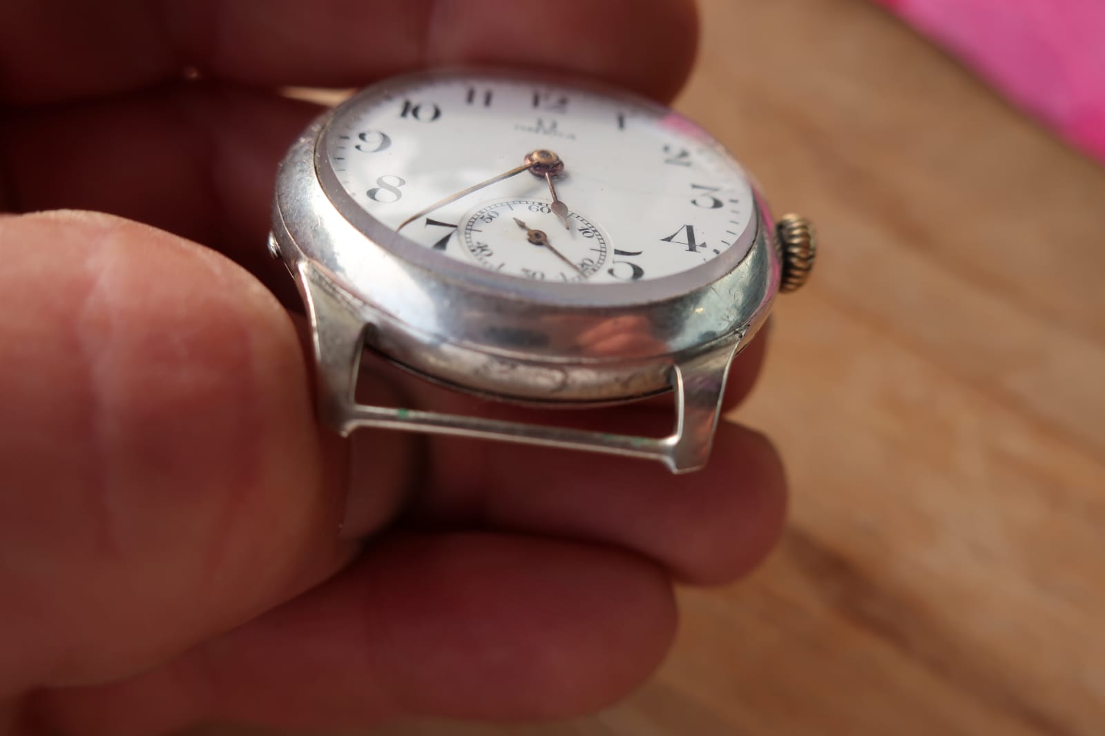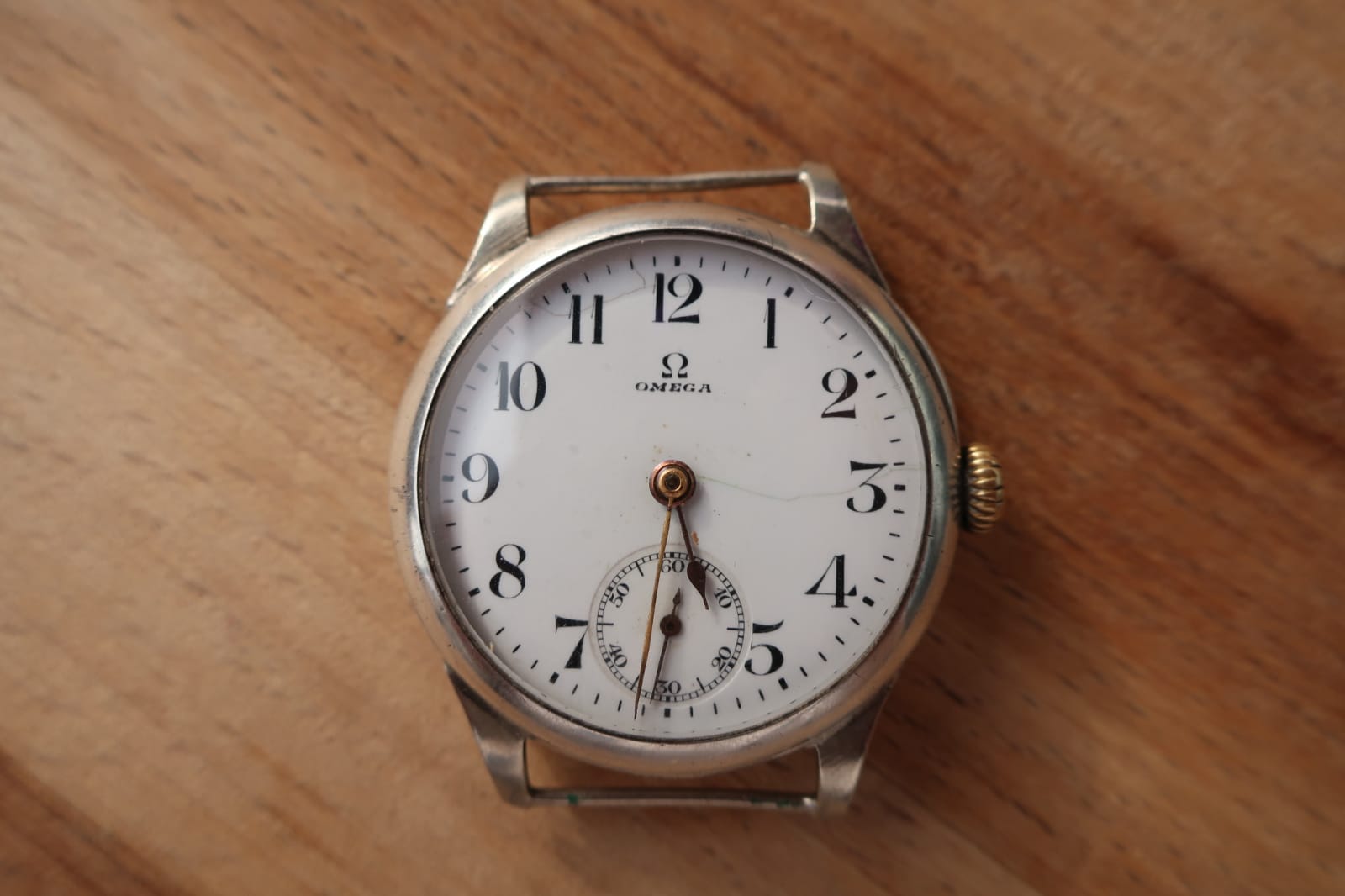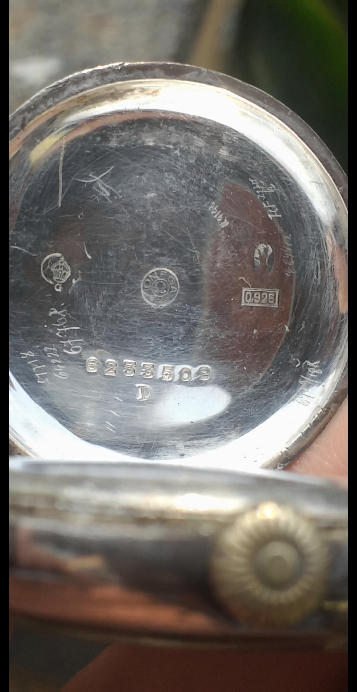 ·Good evening I have this Omega, with fixed lugs, in my family for more than 50 years. I think the Caliber is a 13 SOB. Ceramic dial, double case in 925 silver. Mineral glass. The watch measures 35.7mm without the crown which is an oversized size. The movement of the 5 xxx xxx series is probably from 1915 and the case numbered 6 xxx xxx dating back to 1918/1920 is stamped with the old omega logo and signs of the period. I'm trying to figure out if it's a wristwatch, an original wedding or a transformed pocket. Thanks