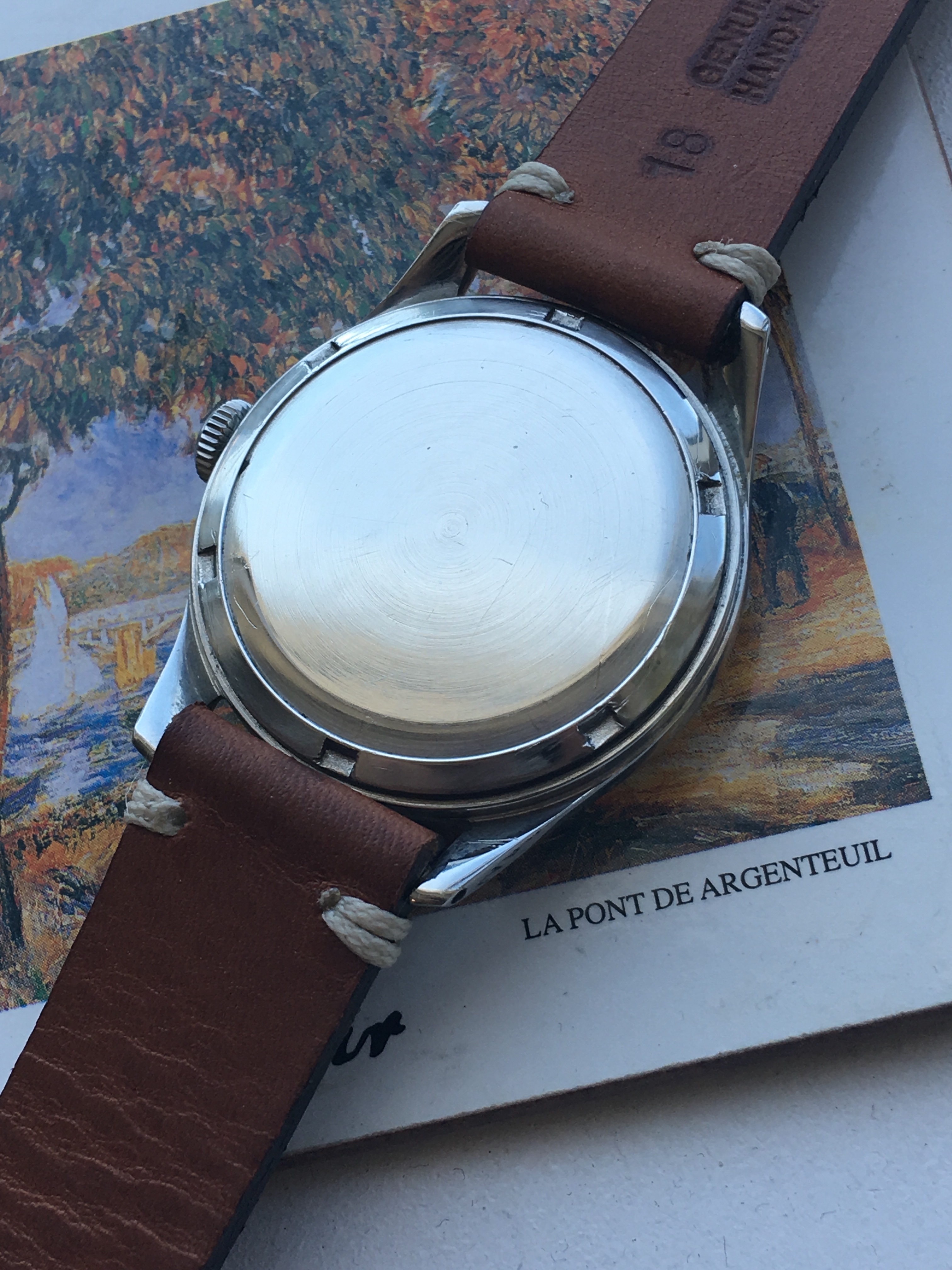 Case: The case is in a very good condition. If it has been polished during its lifetime, it has only been very lightly. It measures 36-36,5 mm without crown and it appears even bigger on the wrist do to the shape of the lugs. As it can be seen, it has a great wrist presence for a vintage watch.