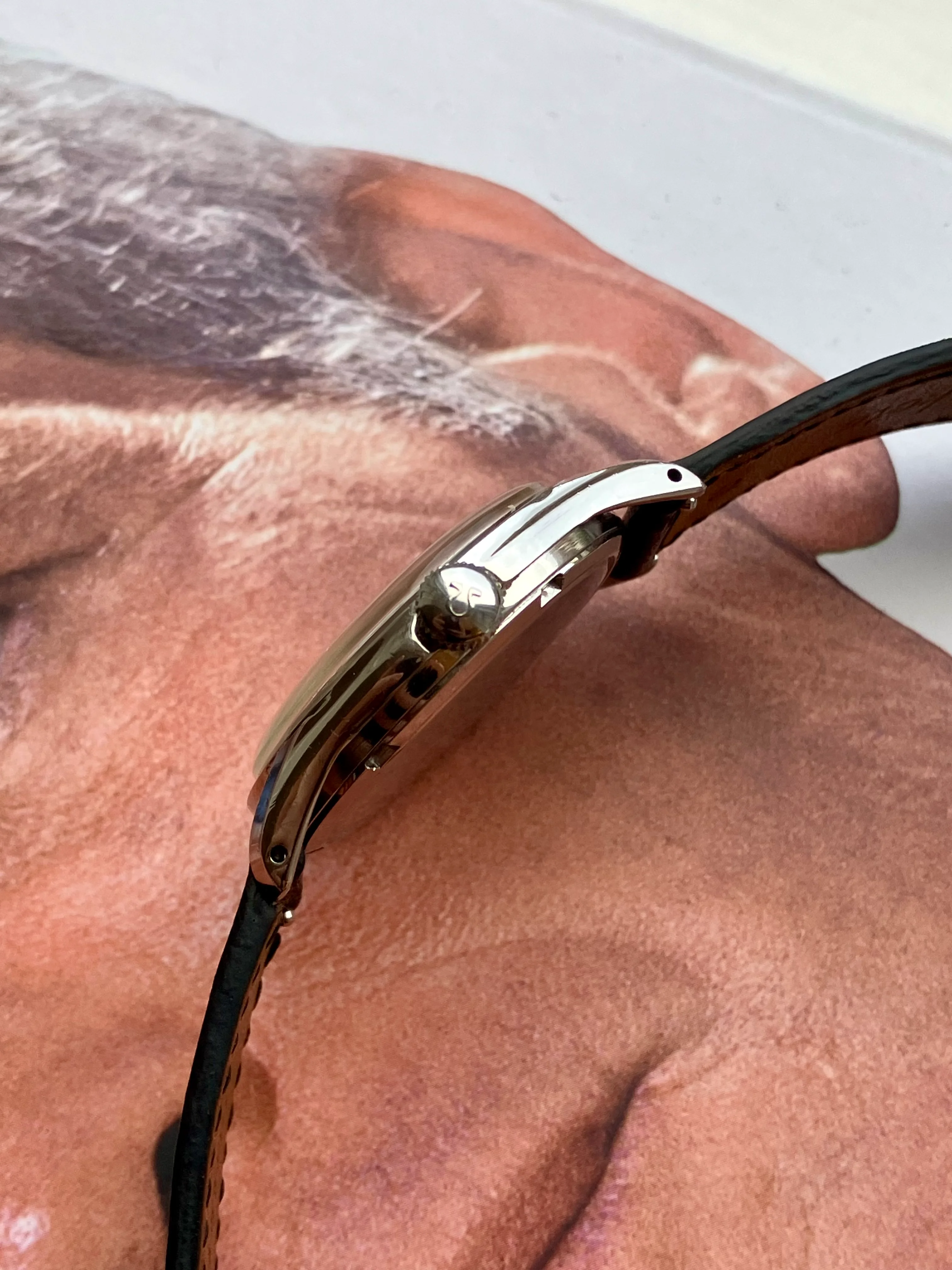 The watch is in incredibly fine condition for its age, with the lume in the hands and indices having acquired a lovely patina. The mechanical cal. 266 was fully serviced in March 2024 and therefore keeps perfect time. The case is likewise in a very good and sharp condition without any major dings.