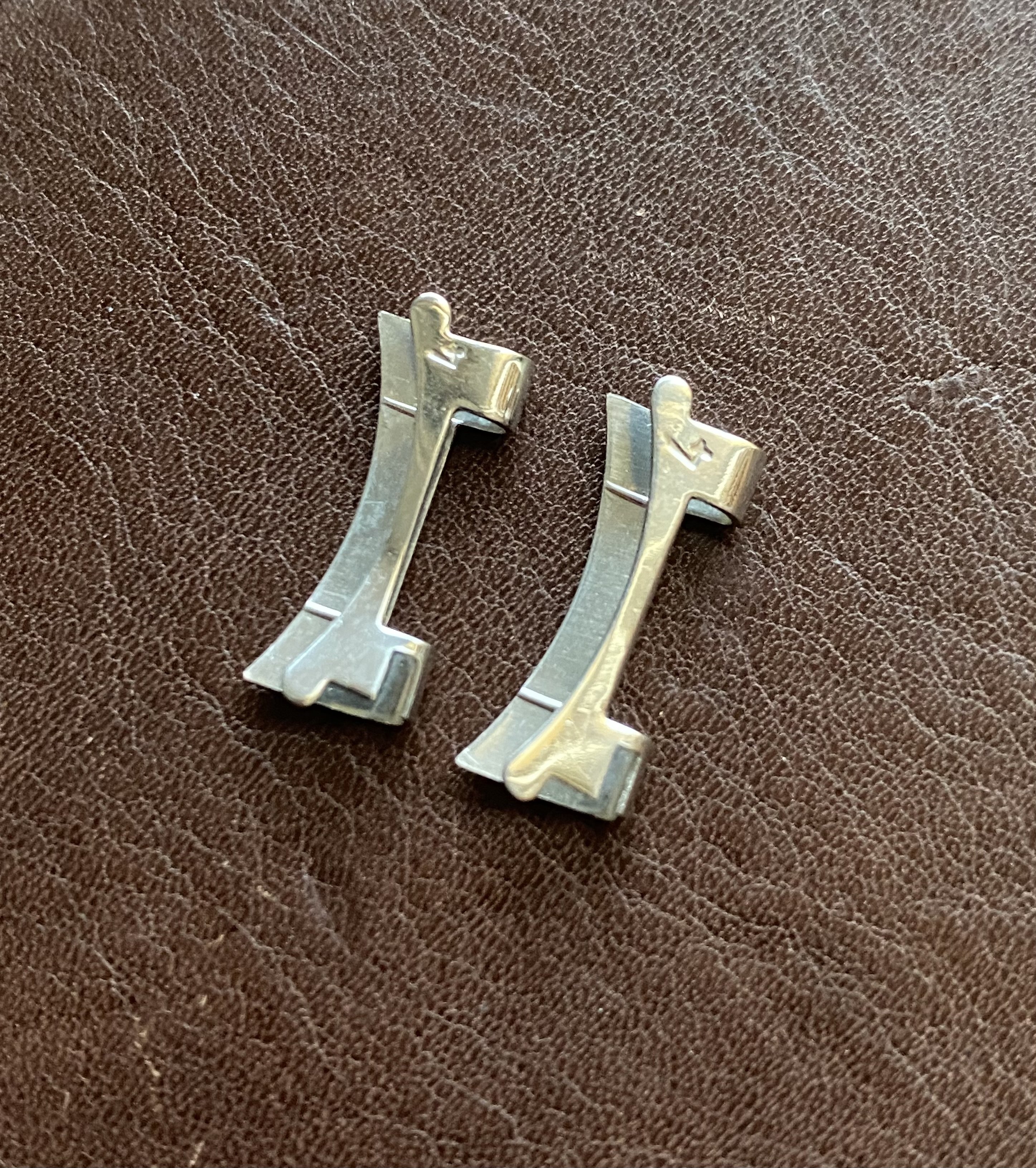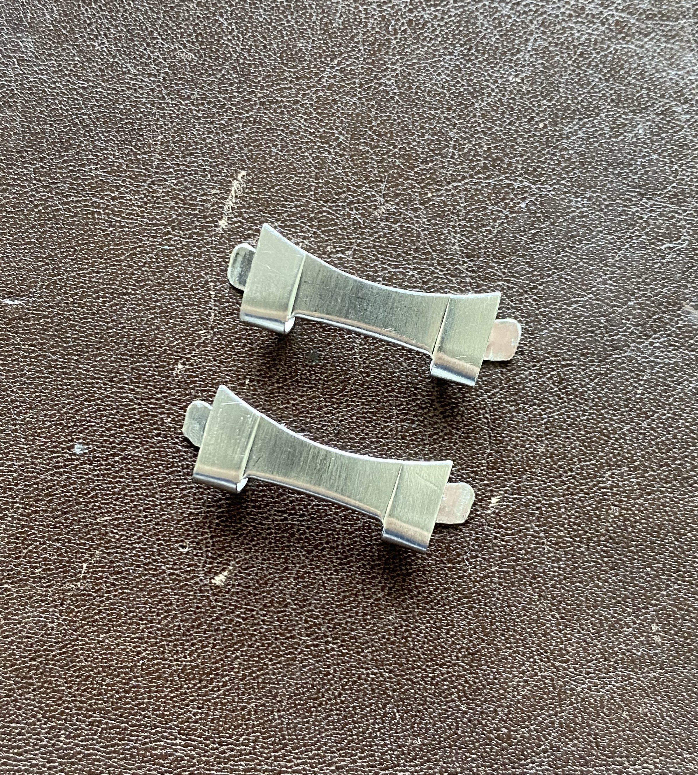 #47 endlinks for a 1175 bracelet (not the 7077 above) that have been shaved to 18mm. Will fit many 60s and 70s Omegas. Nice condition. Asking $100.