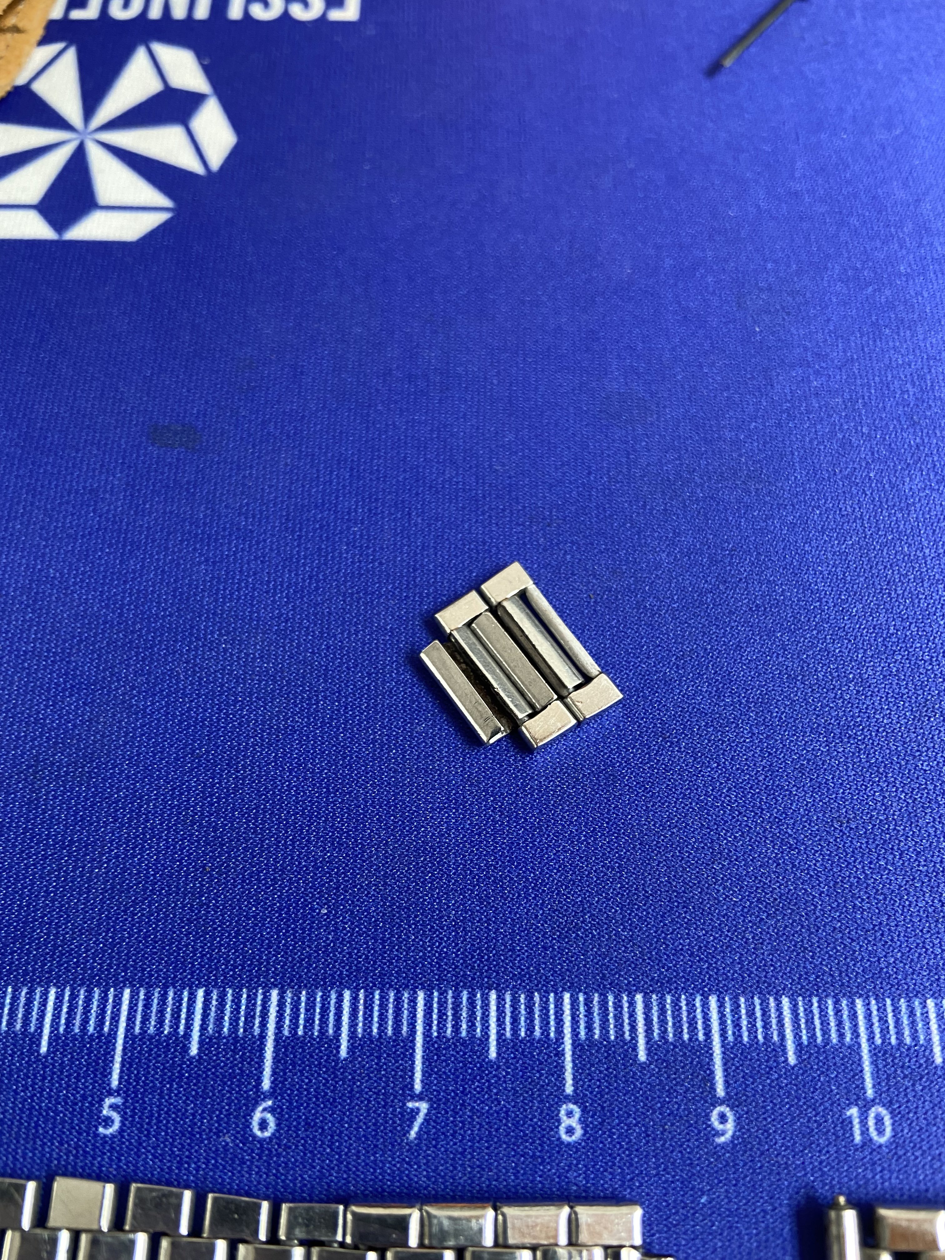 I have most of an early 7077 bracelet, minus the clasp. These sections of links are from the 7077 "Type B" or "Type C" as identified in this very informative thread: https://omegaforums.net/threads/the-7077-bracelet-explained.108172/