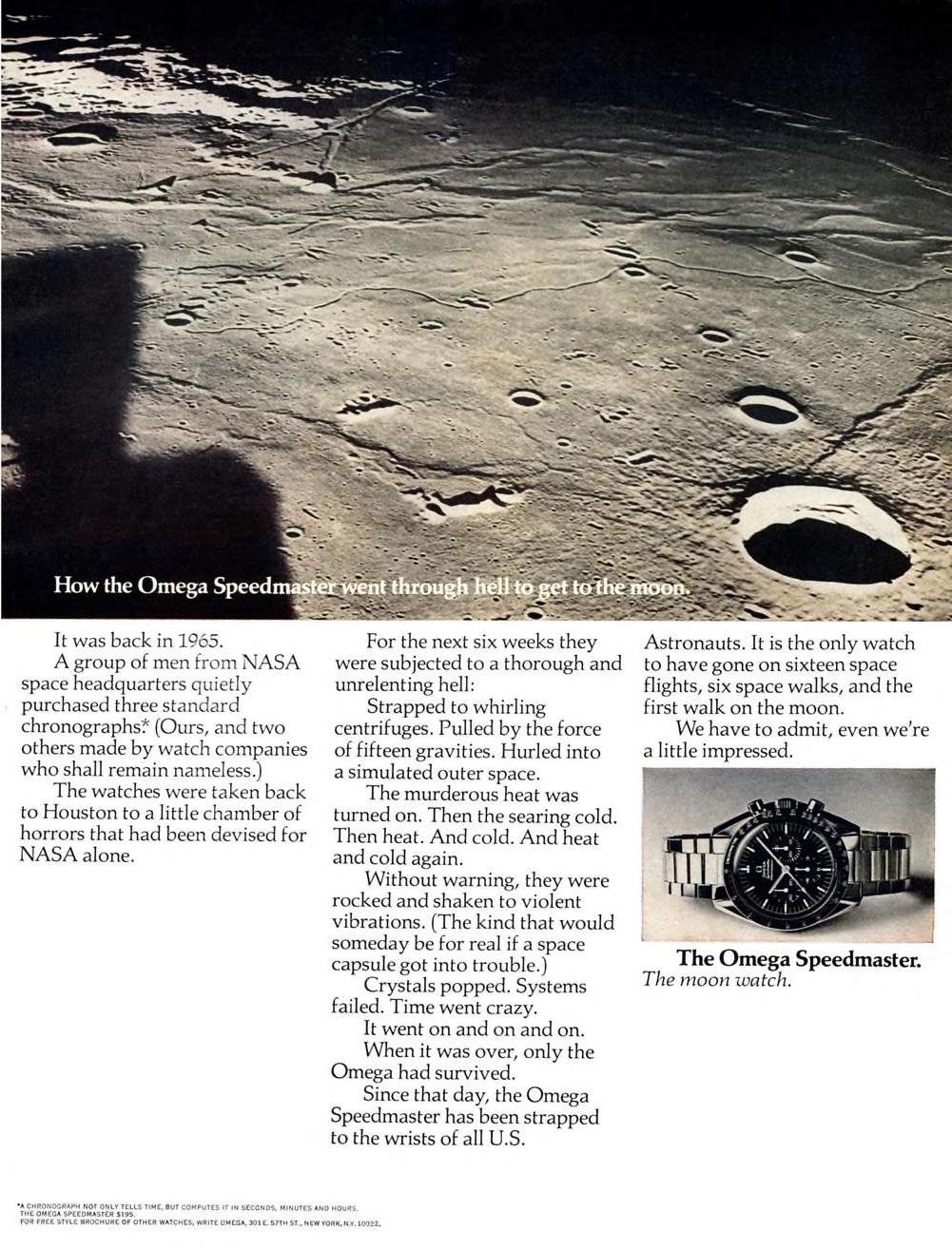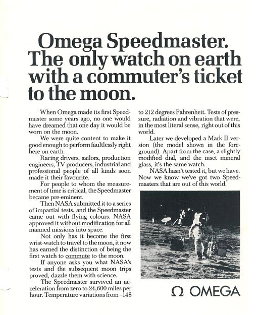 December 1969: All other slogans abandoned for "The First Watch Worn on the Moon"