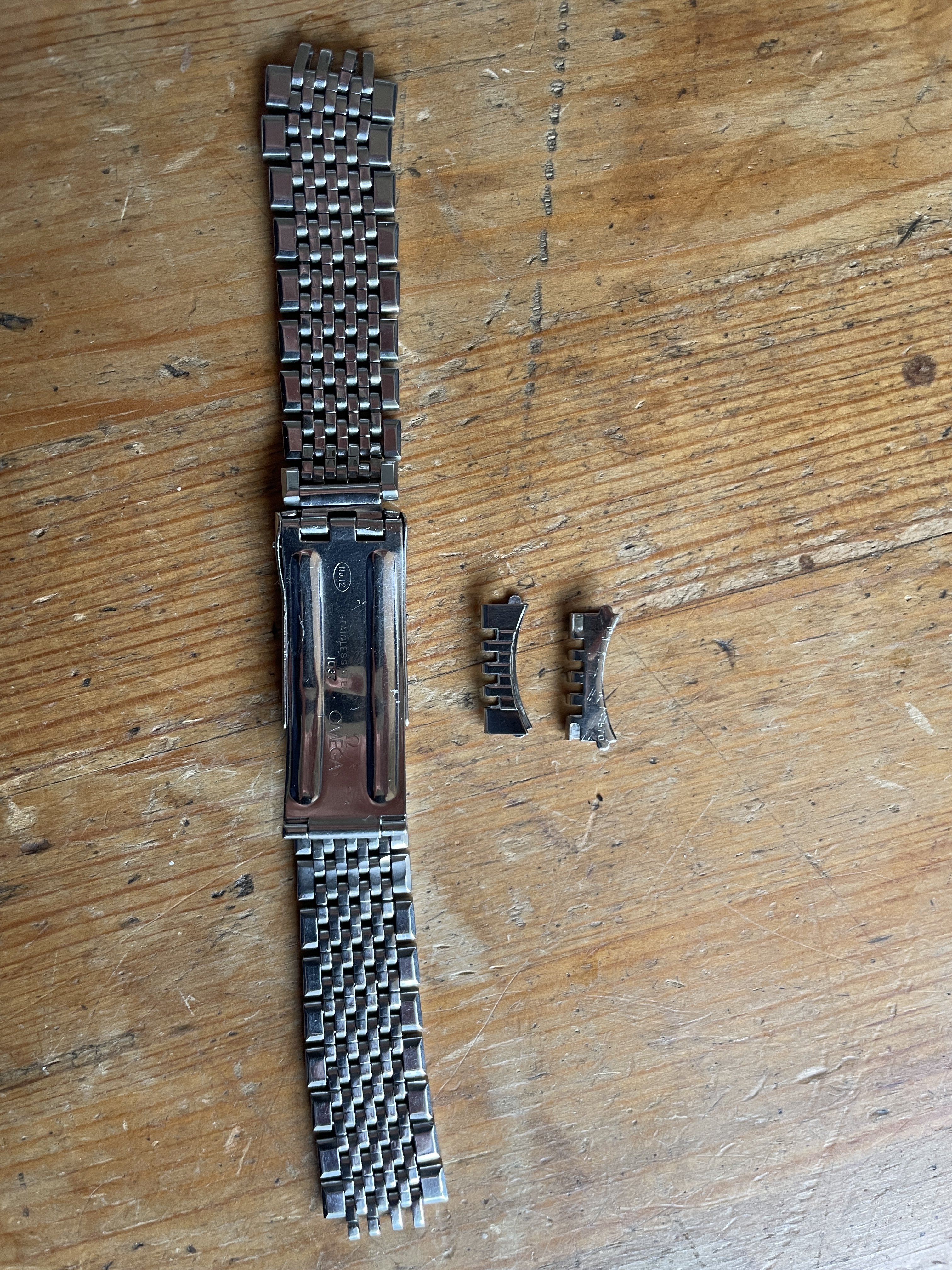 This is from an 1964 Omega Constellation. It is in good condition for the age and the clasp is in working order.