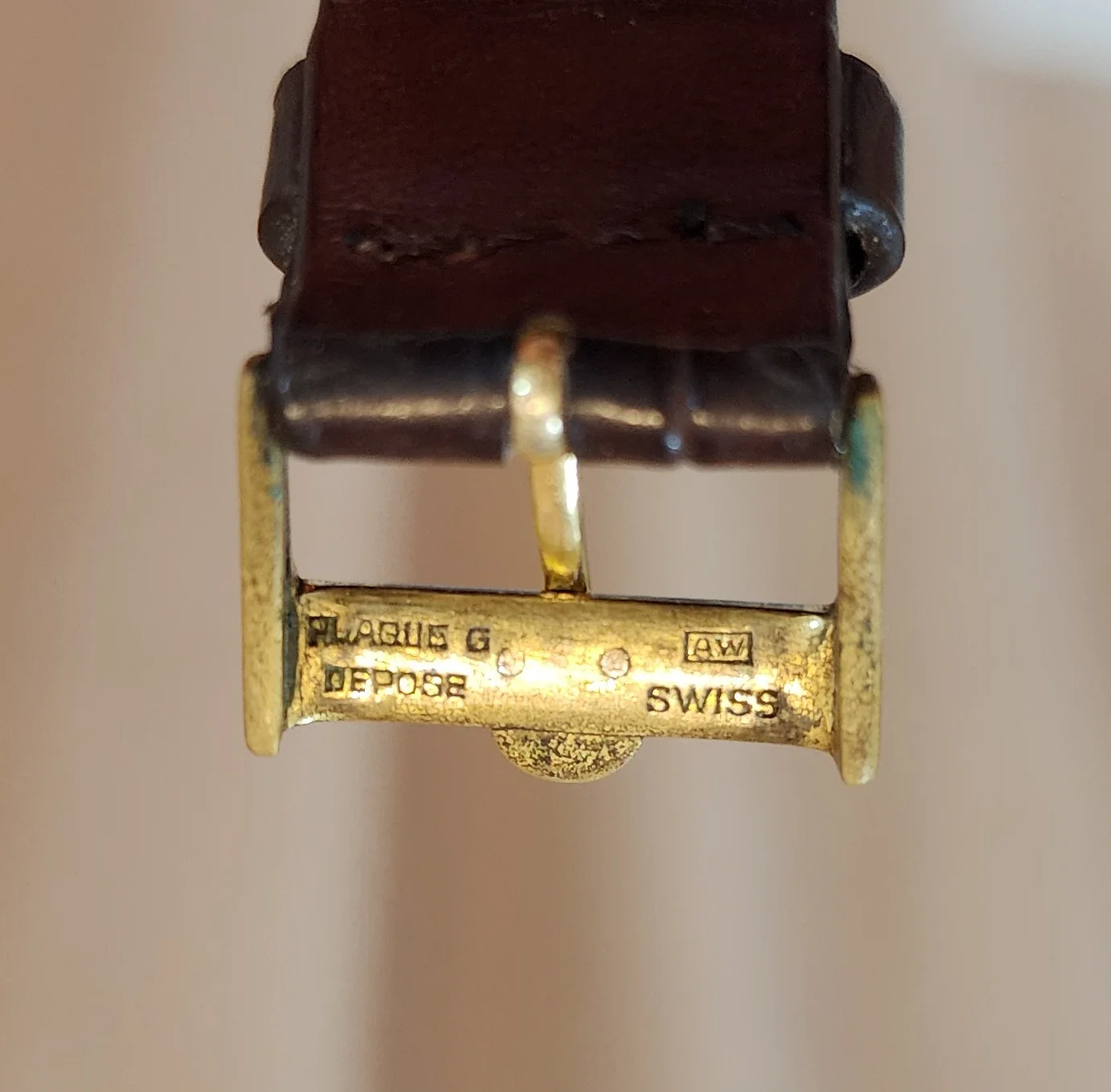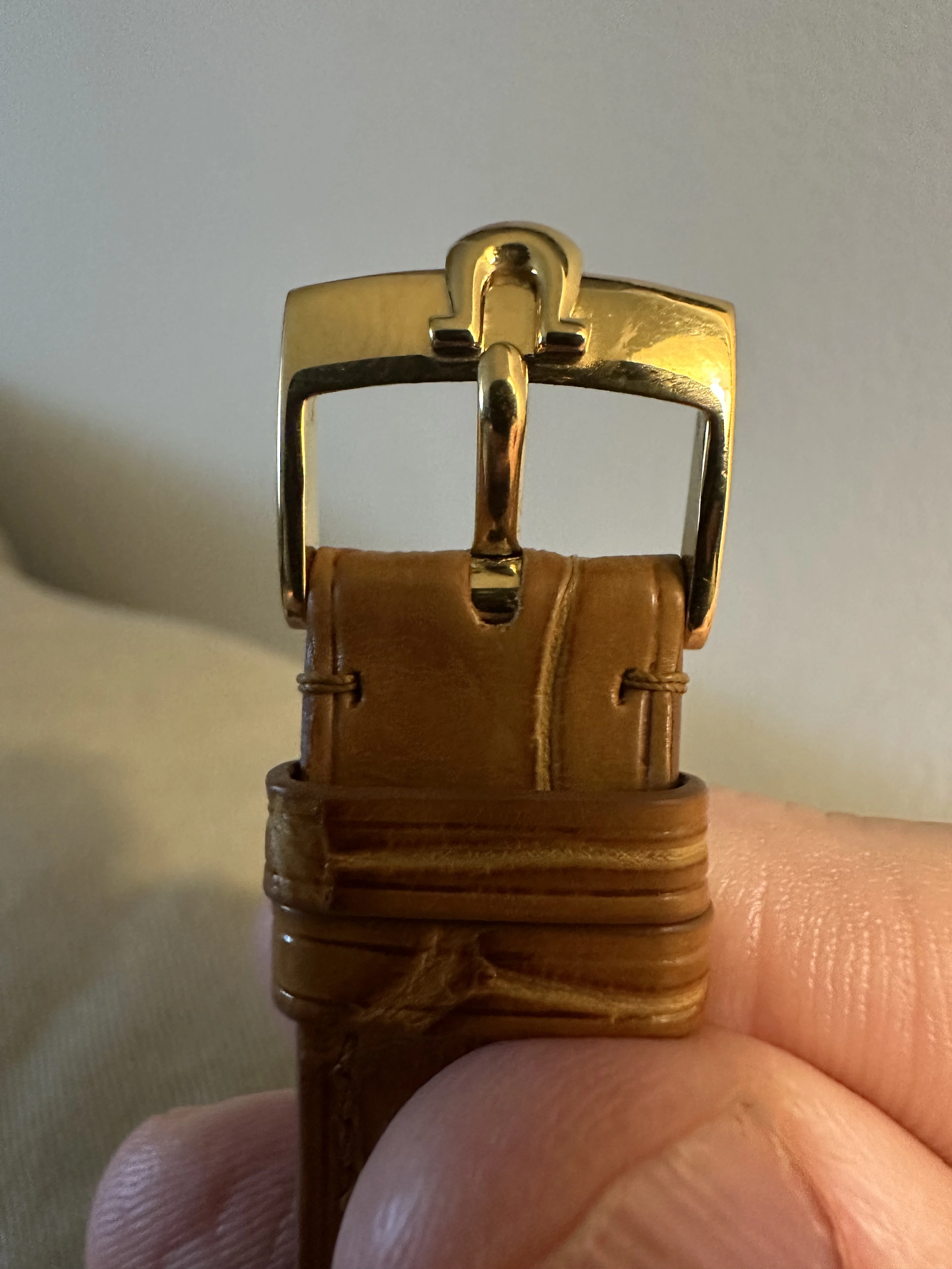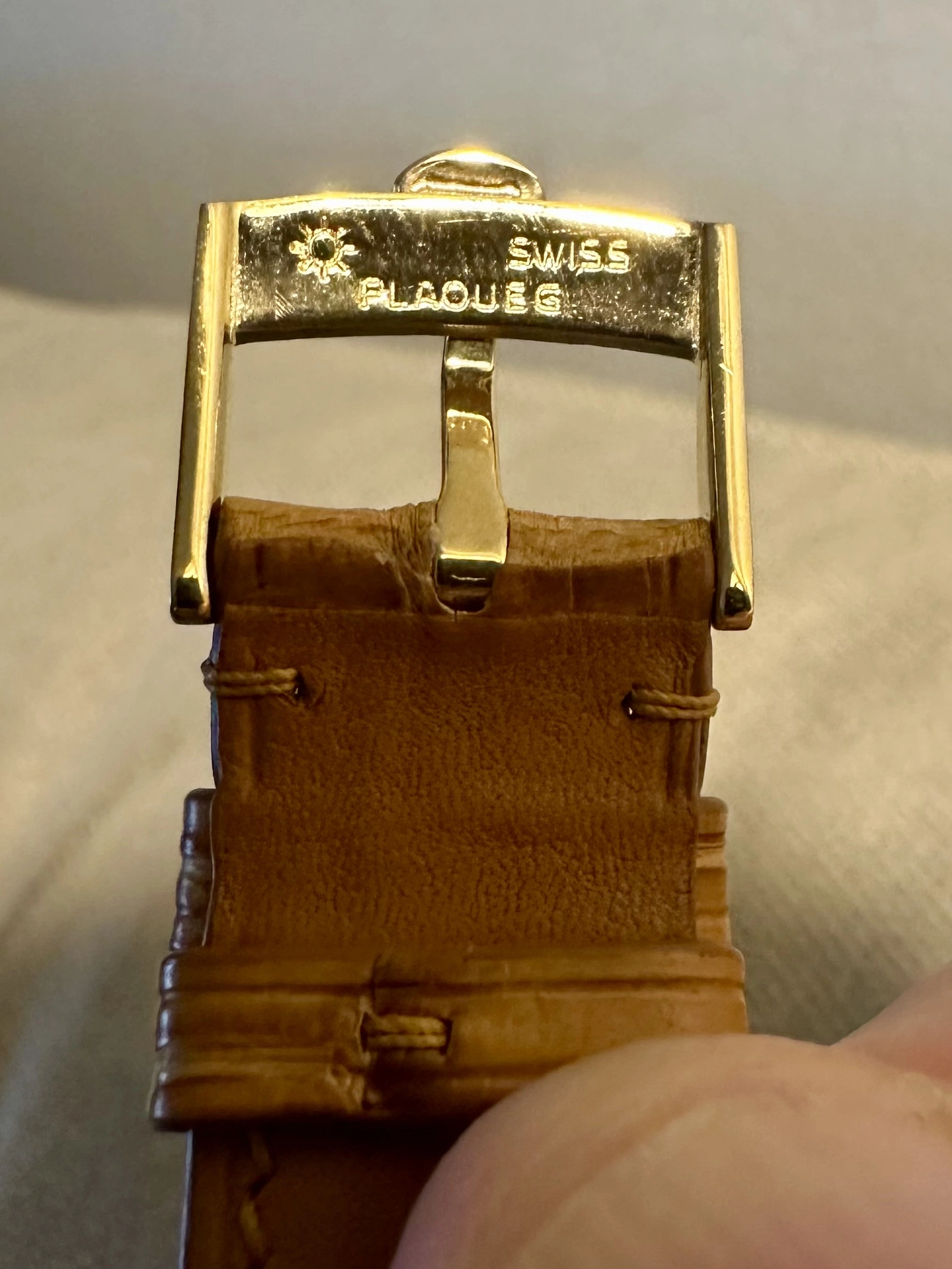 Posts 13,309 Likes 18,419 gatorcpa ·Apr 9, 2025·ΩF InvestiGator IMO the buckle is original, but the logo fell off at some point and was crudely soldered back in place. Hope you didn’t pay too much for it. gatorcpa