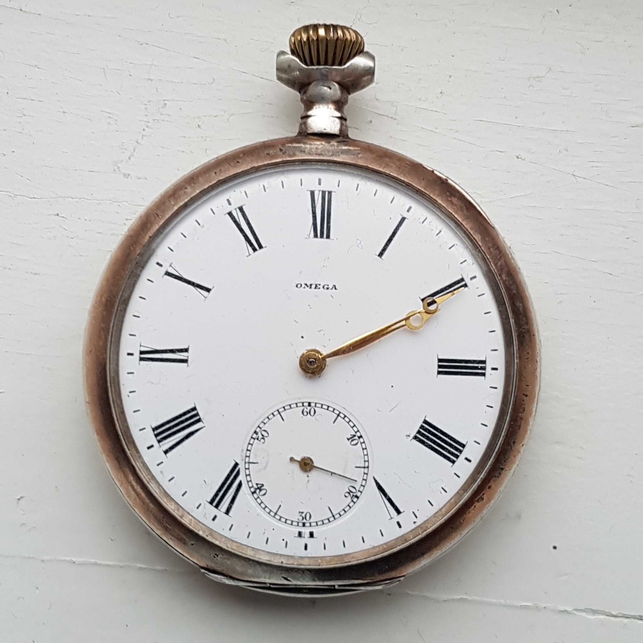 If someone got time and knowledge,would they be so kind to take a look at these pictures of my 1910-1915 cal19 Paris Grand Prix 1900 to see if its original case/movement.The hands are from a 1923 model cal.19LB(picture of original )and its not crystal glass on it,its been changed with a plastic one some time.I bought it for around 100 euro and had to change the mainspring(also from the 1923 cal19 LB)It runs with a delay of 10-15 seconds in 24 hour dials up so movement seems good.Iam not posting this for advice on price just some information on the watch 😀
