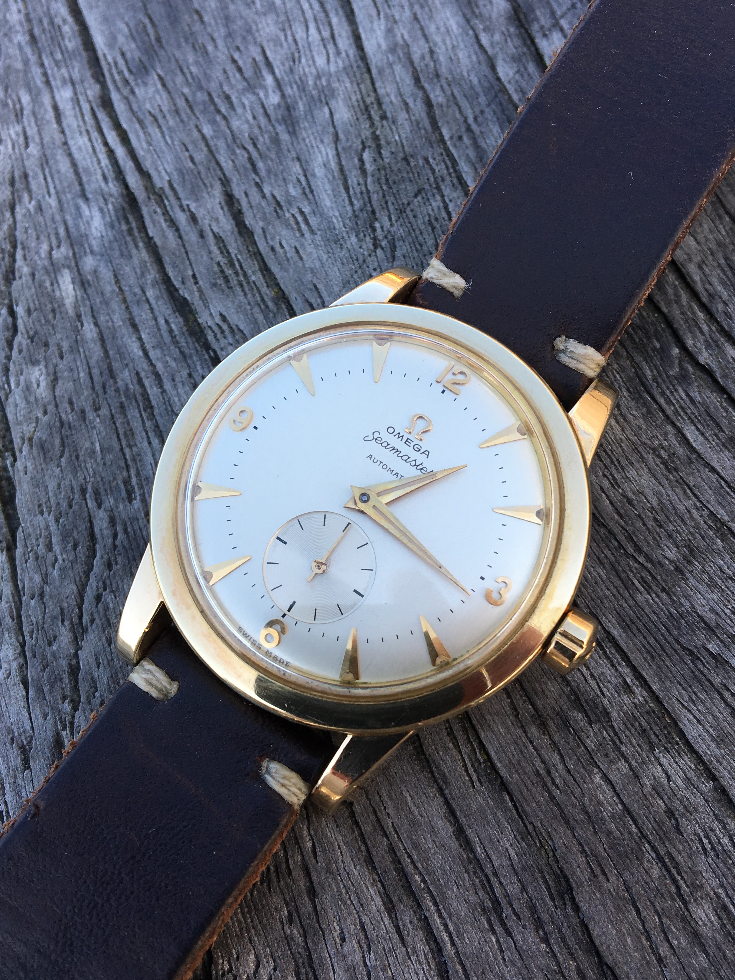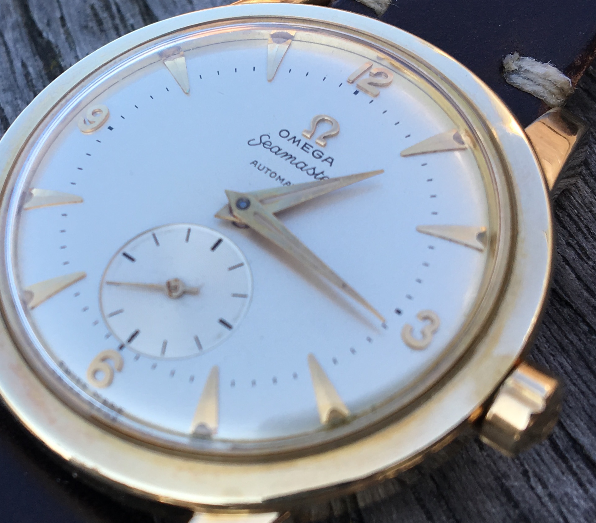 His assumption was base on some inconsistencies and non-symmetrical on the minute markers, and that the dial is way too clean from a 1950s watch. To me, the overall condition of the whole watch is just great. Unpolished case, with very nice bevels on the lugs, original dial with radium, and the overall condition is just consistent.