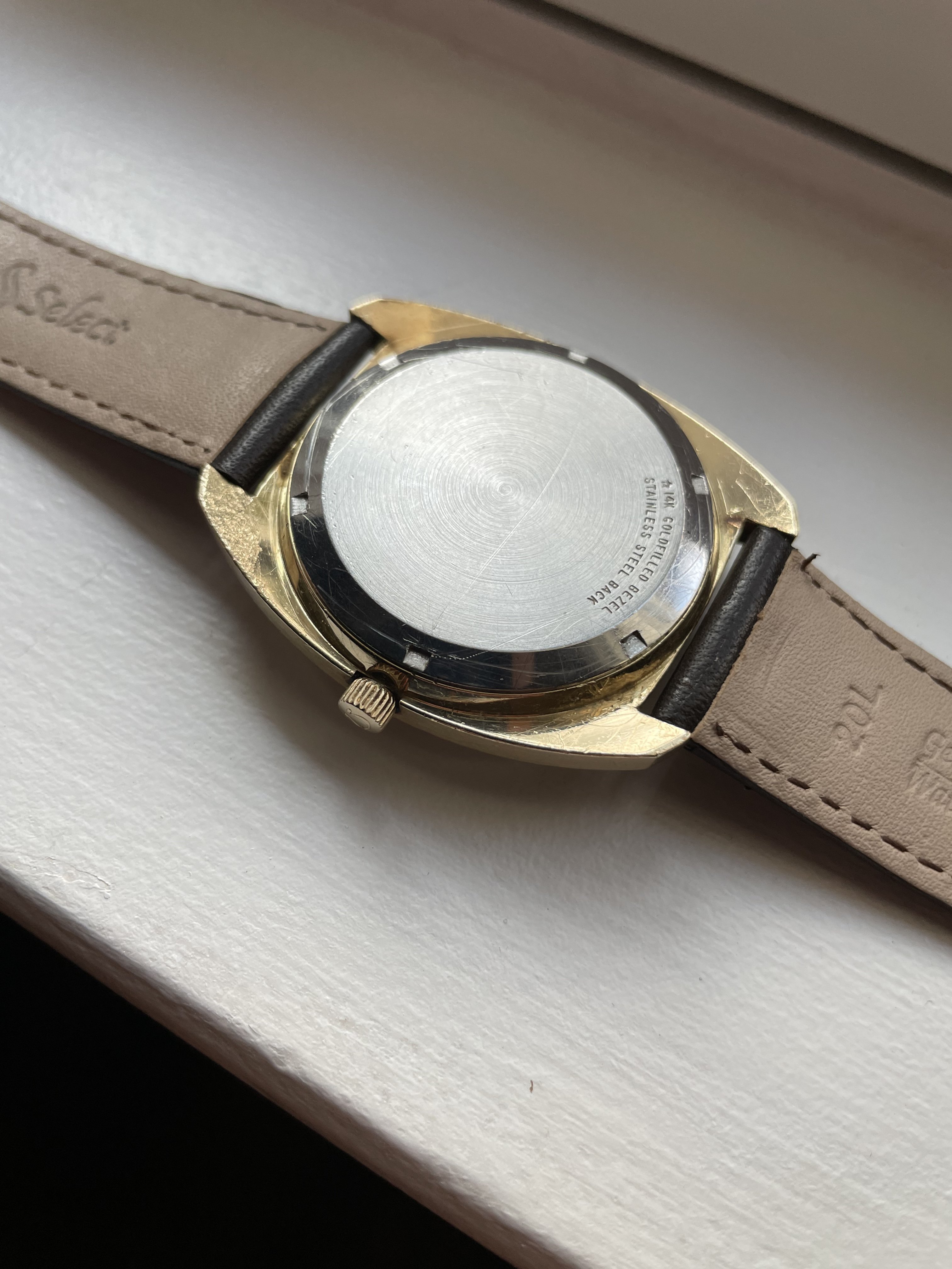 Gold plated case is well preserved with some signs of wear. It measures just under 38mm not including the crown, so nicely sized for any wrist size.