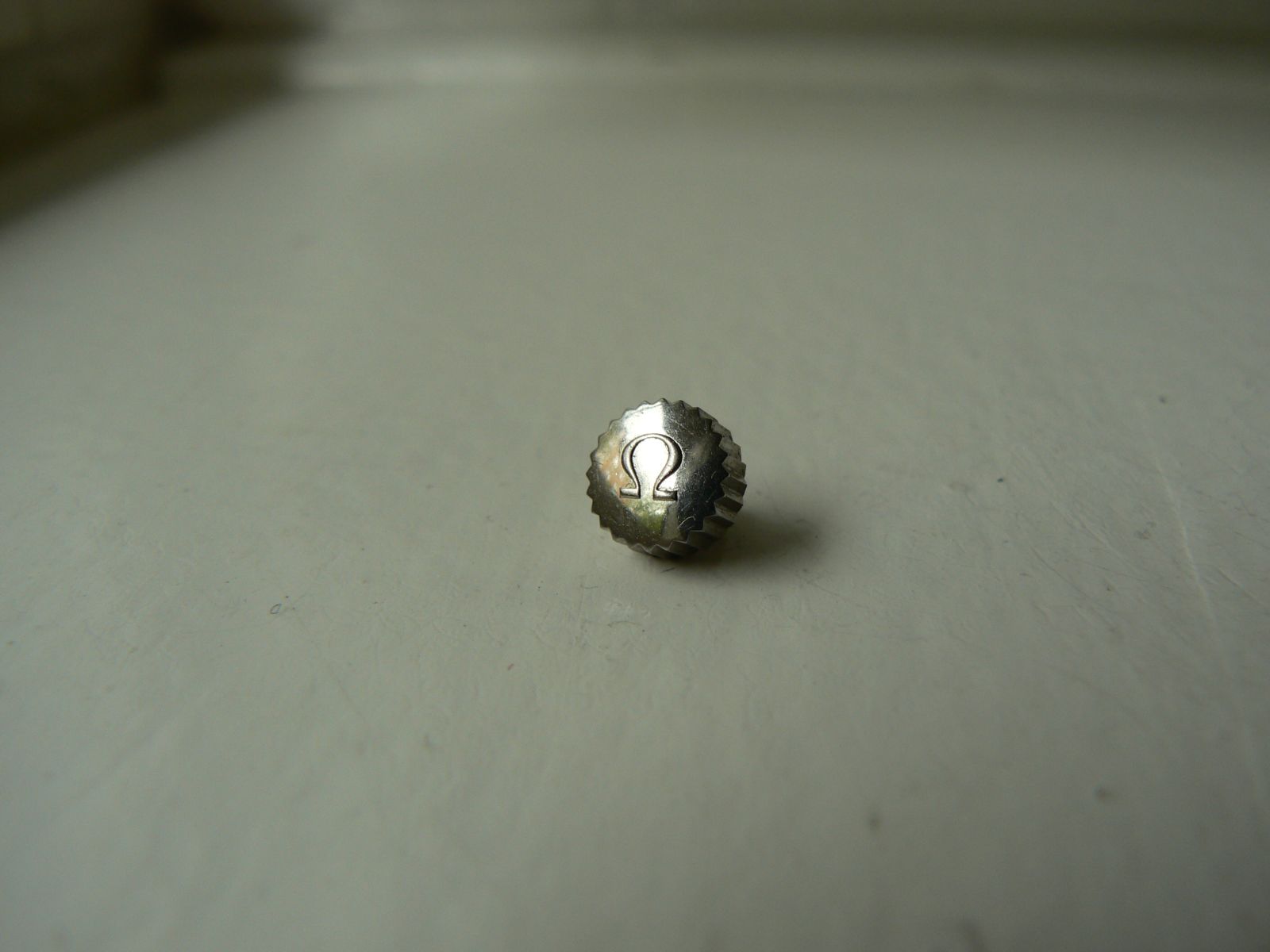 At first I thought it is for vintage Speedmasters and measurements somehow fit BUT those Speedmaster crowns (mainly ref. 2998) I am finding on line do not have this extra tube. As you can see has straight Omega logo.