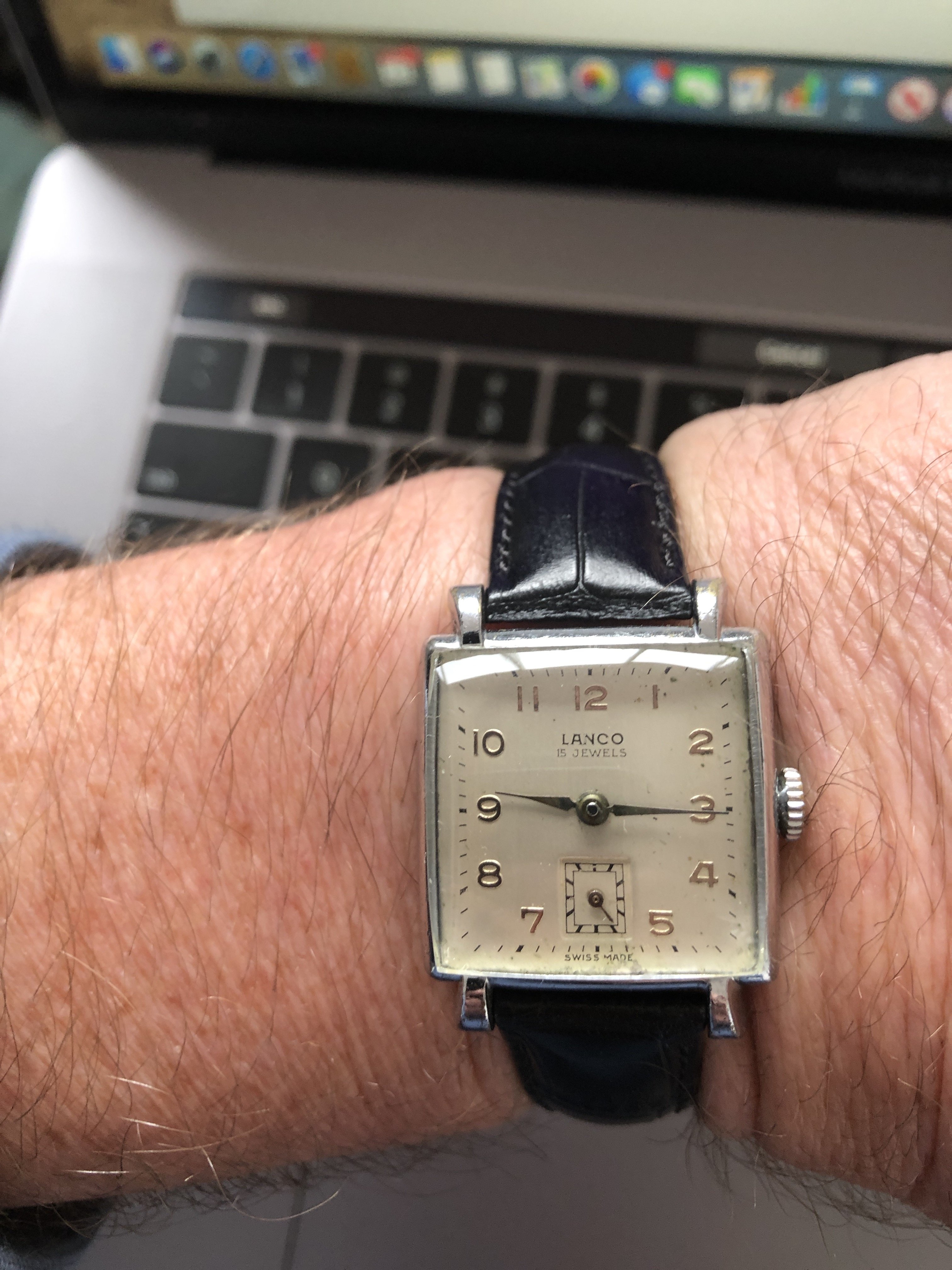 He asked me how I wore the watch, I said on my wrist. He told me the watch would probably only have been worn on Sundays and special occasions by my grandfather and I should reconsider this as an everyday watch as 'twas barely dust proof let alone water resistant. I continued to wear the watch daily until I got myself an indestructible CWC quartz. After the CWC my next daily was a '76 Speedmaster and then things started to get a little out of hand. Here is my Lanco today, alive and ticking.
