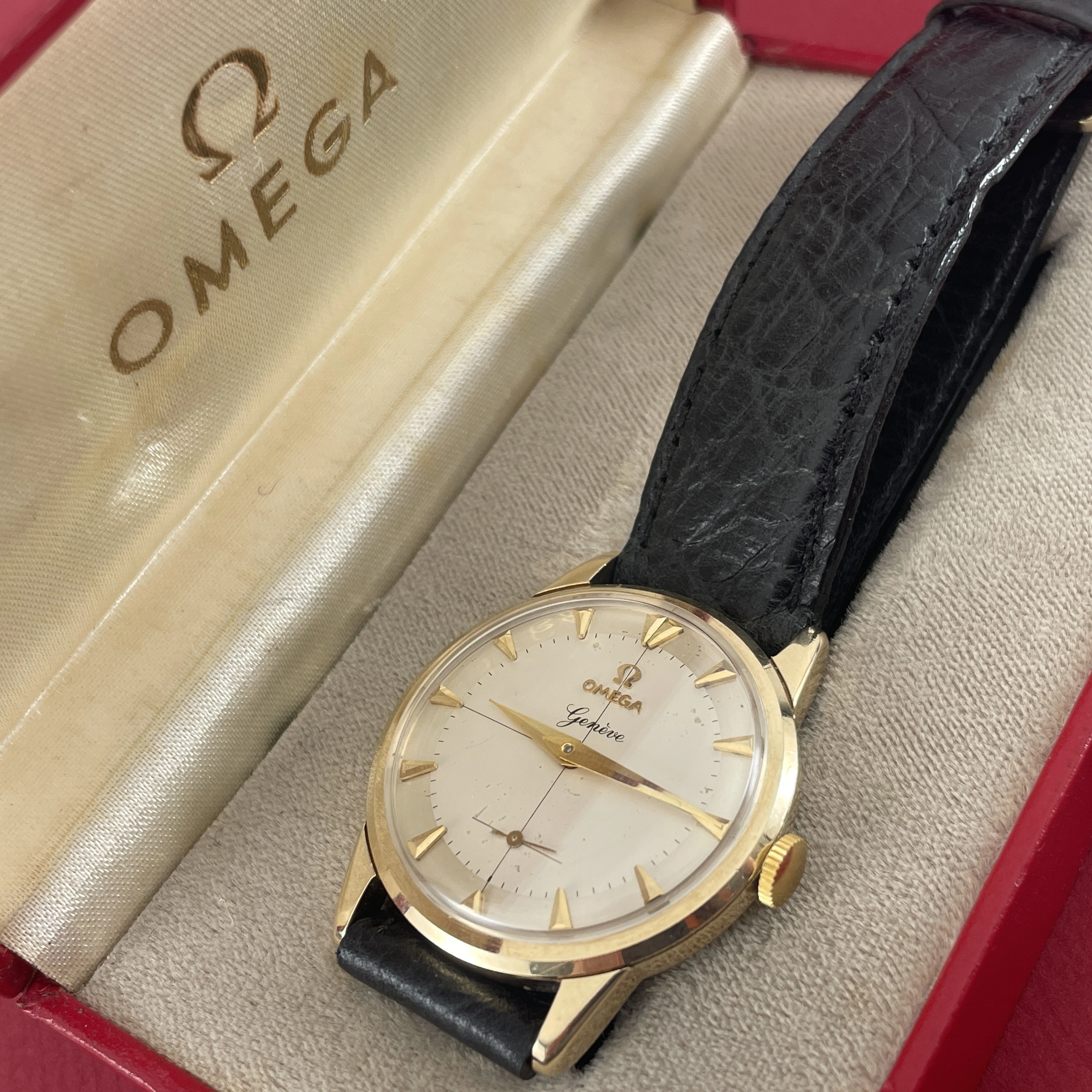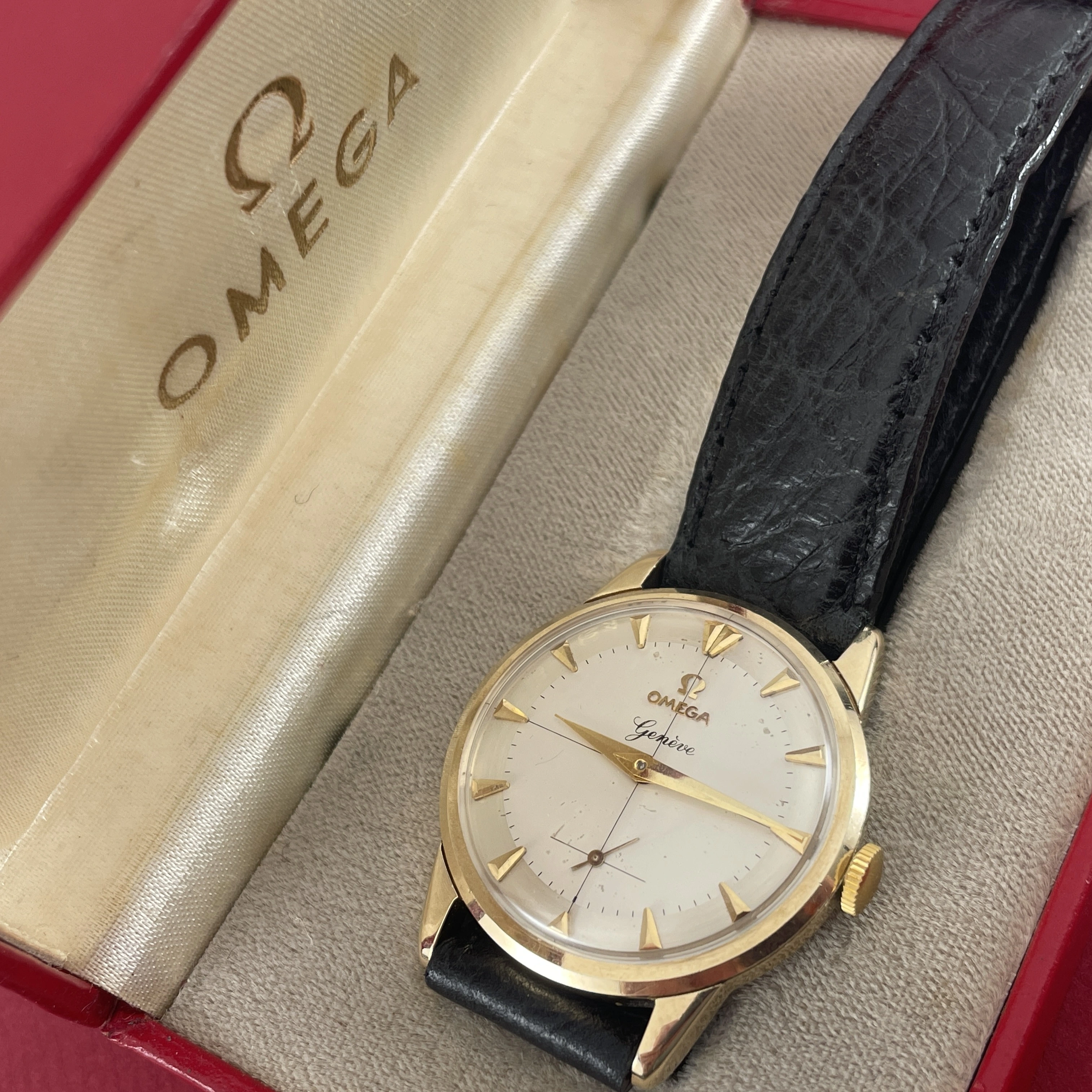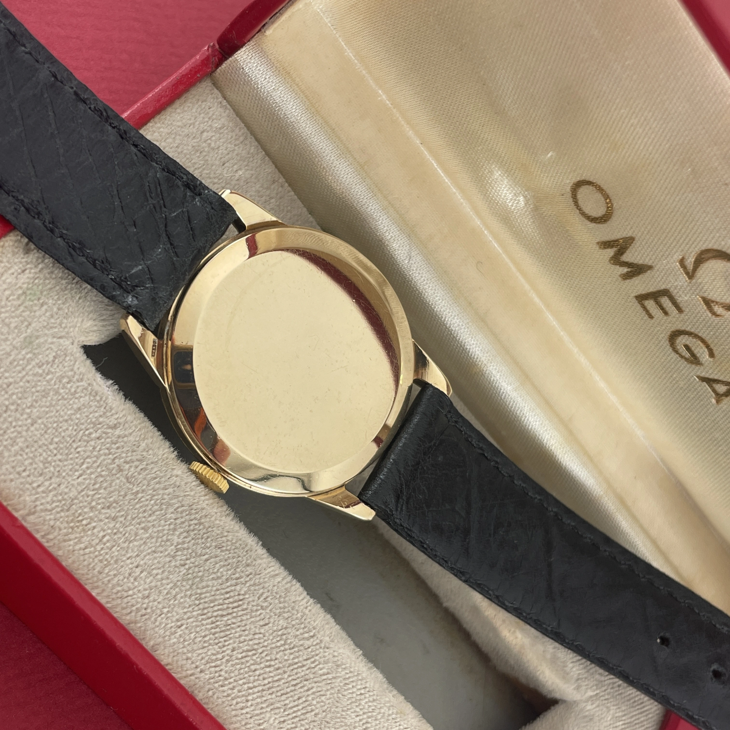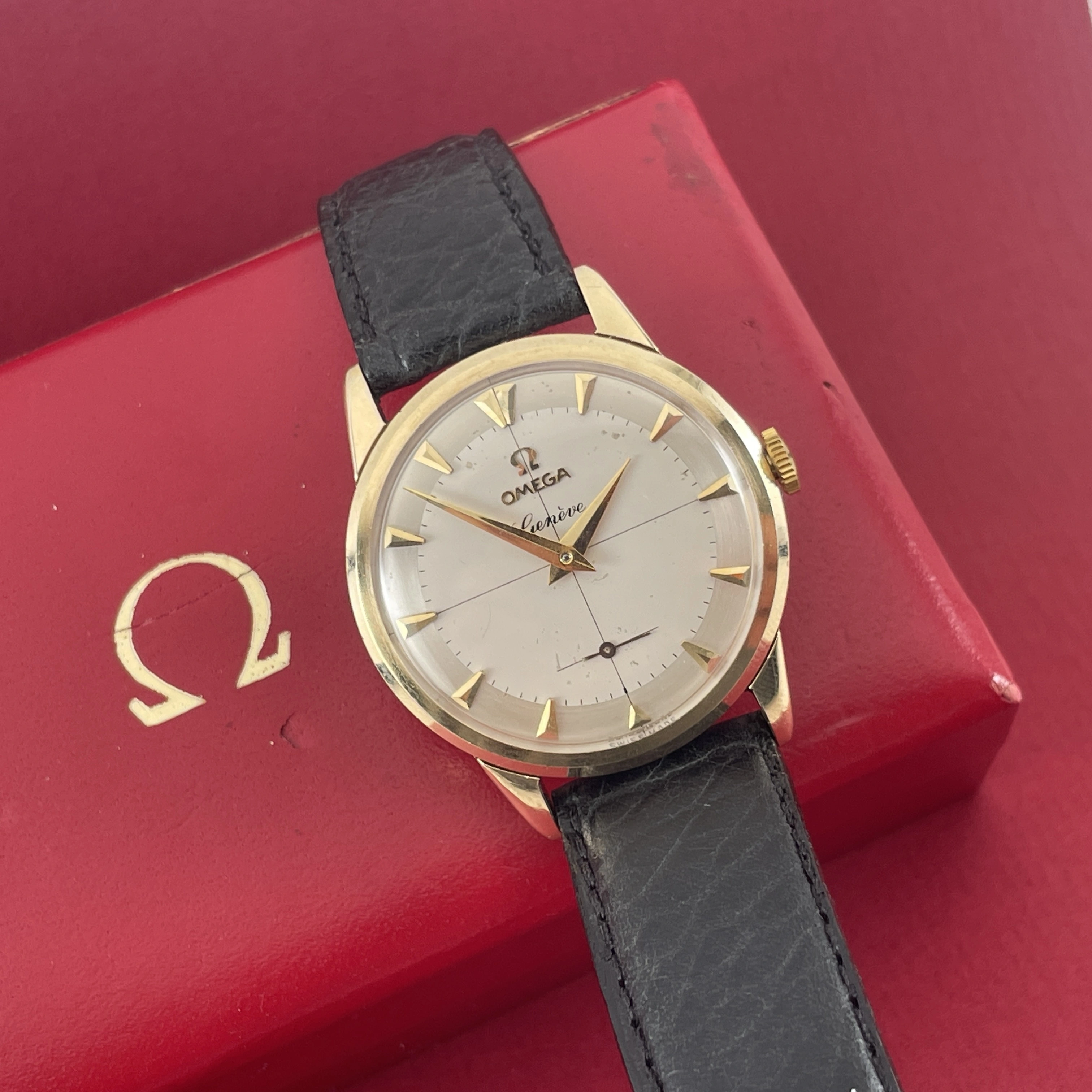 Comes with an Omega box, not sure if it is original to this watch, and is missing it’s cushion inside. On a regular leather strap.