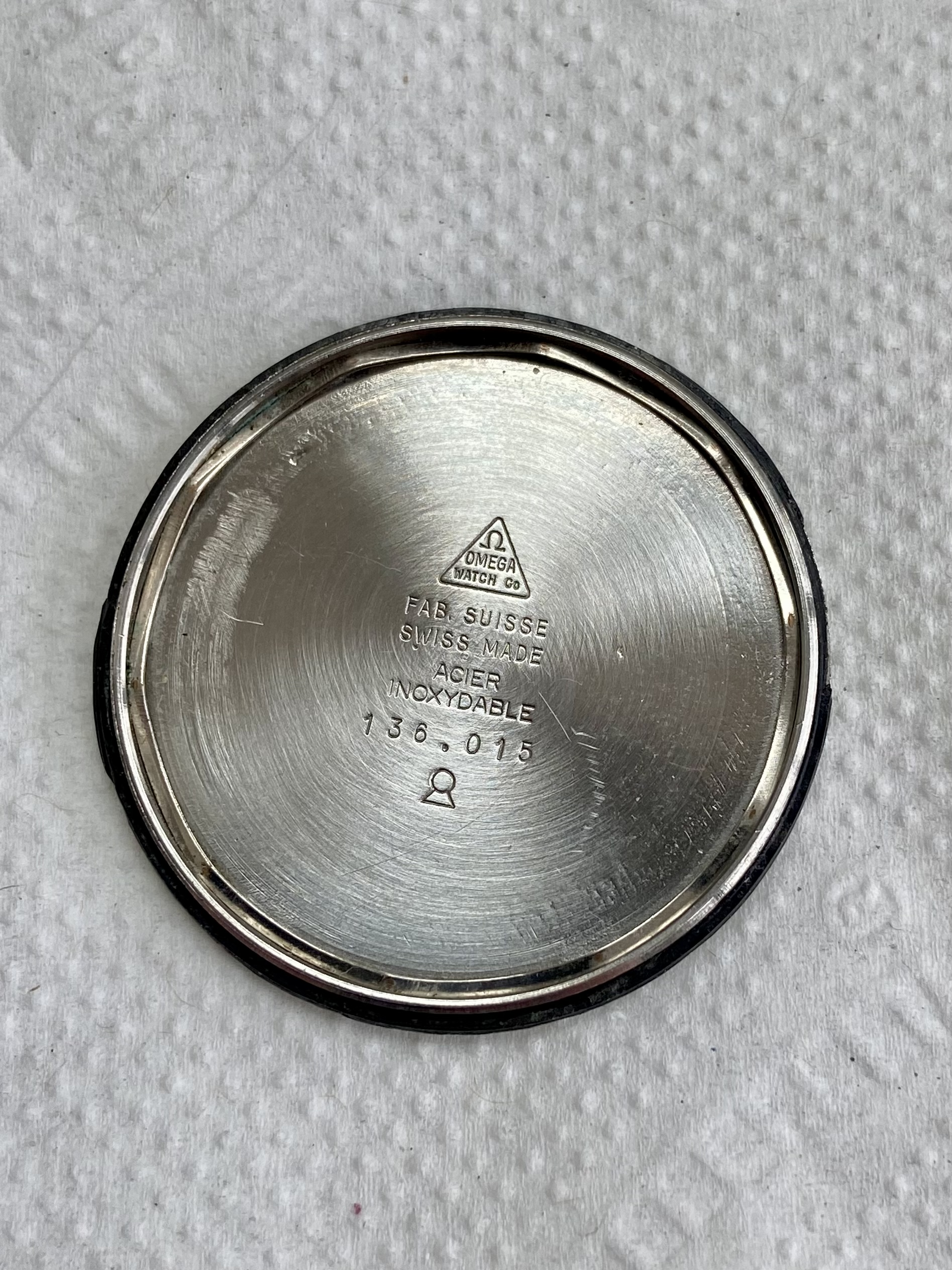 Stainless steel case ref 136.015 in very good condition. Diameter is 35mm with 17mm lugs. Minor surface wear as with most vintage watches but nice, thick and sharp with well defined edges and crown guards.