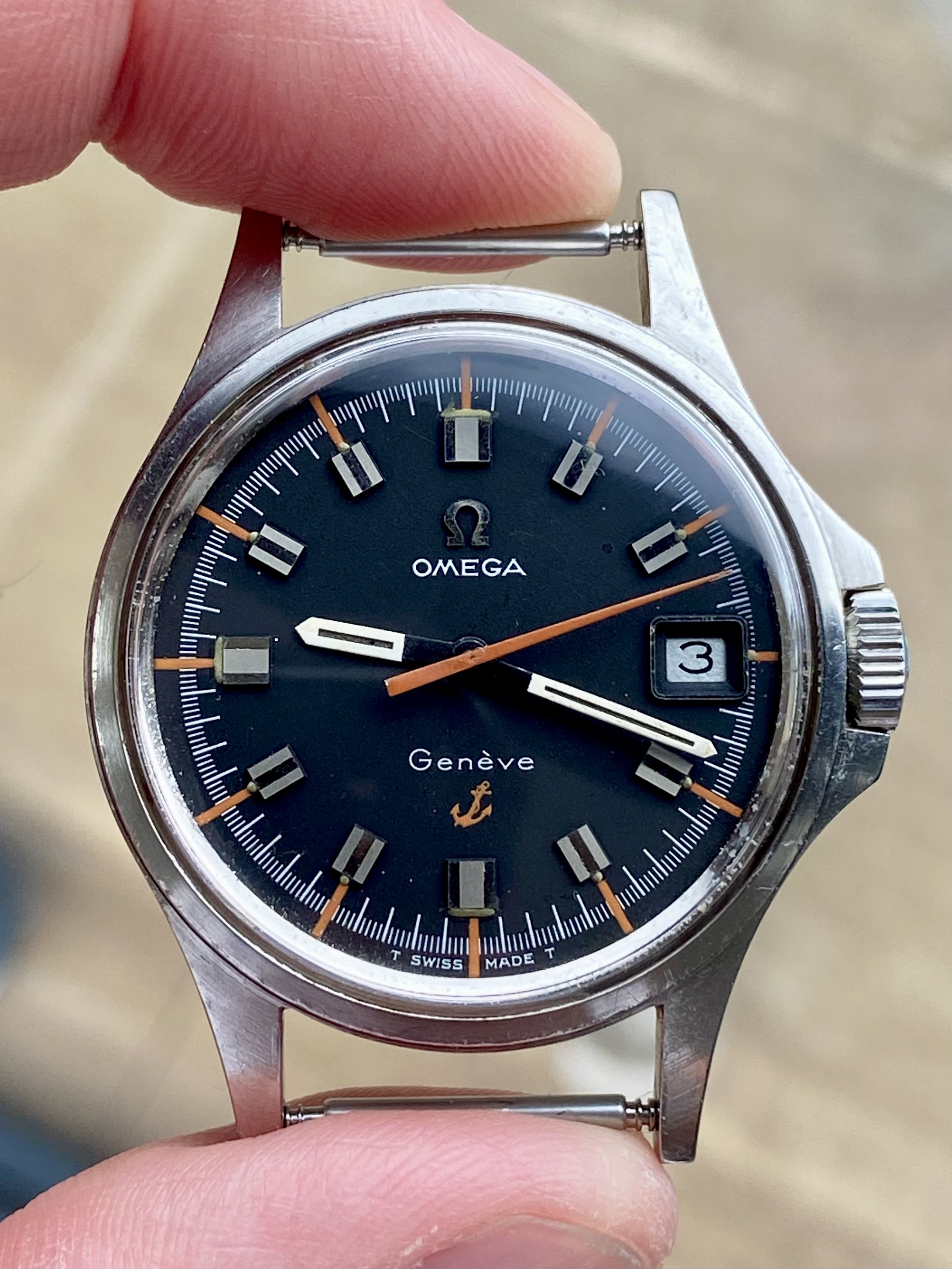 ·Offering for sale my Geneve Admiralty ref 136.015 dating c.1968. These wear slightly larger than most time only Omegas from the 60’s due to the 35mm case and large black dial.