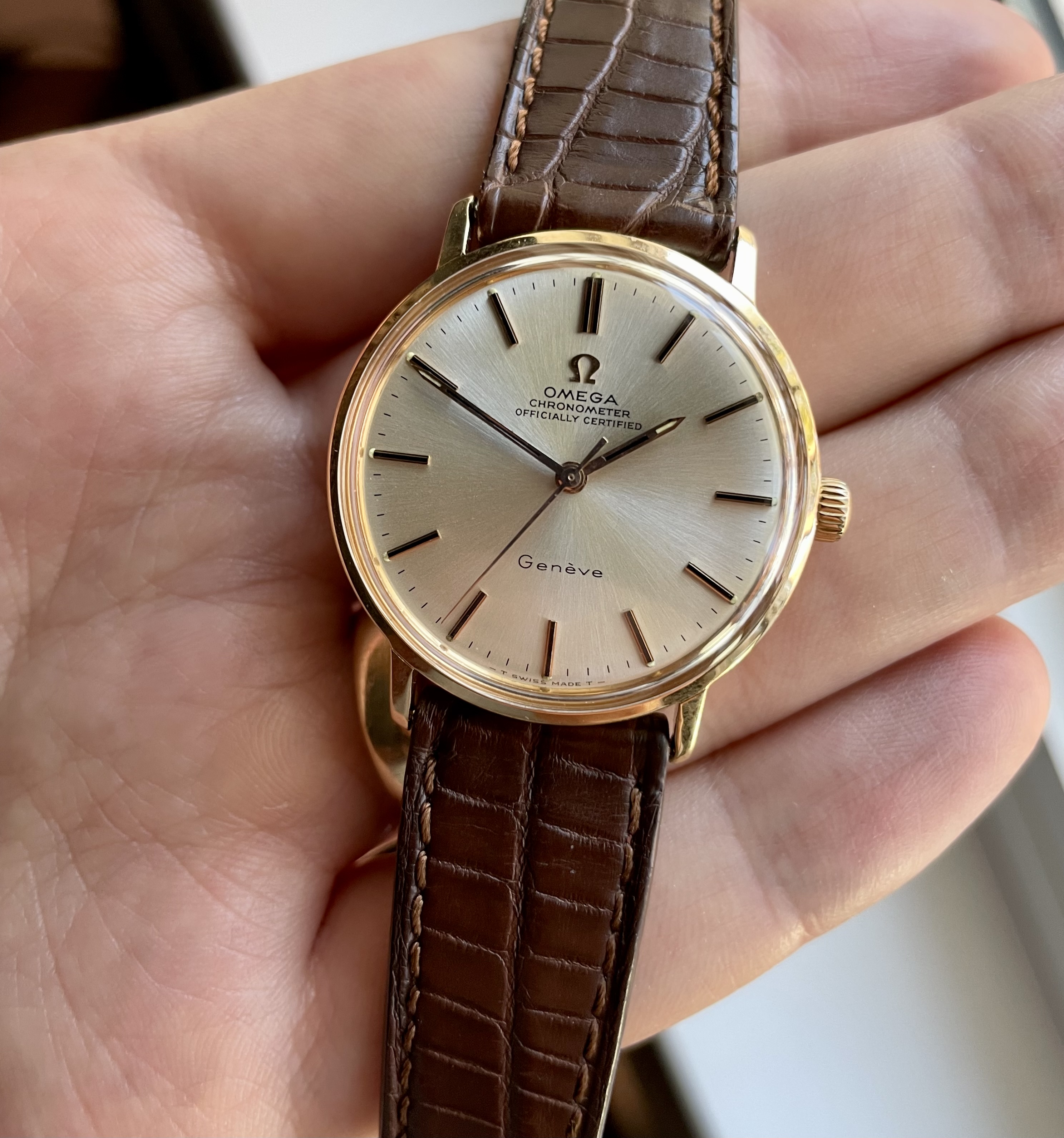 ·I stumbled across a listing for this rare beauty a little while ago and couldn’t resist buying it. My preference would be to trade for a solid gold beefy lug Seamaster (trade up or down) or some other uncommon solid gold model or case/dial configuration.