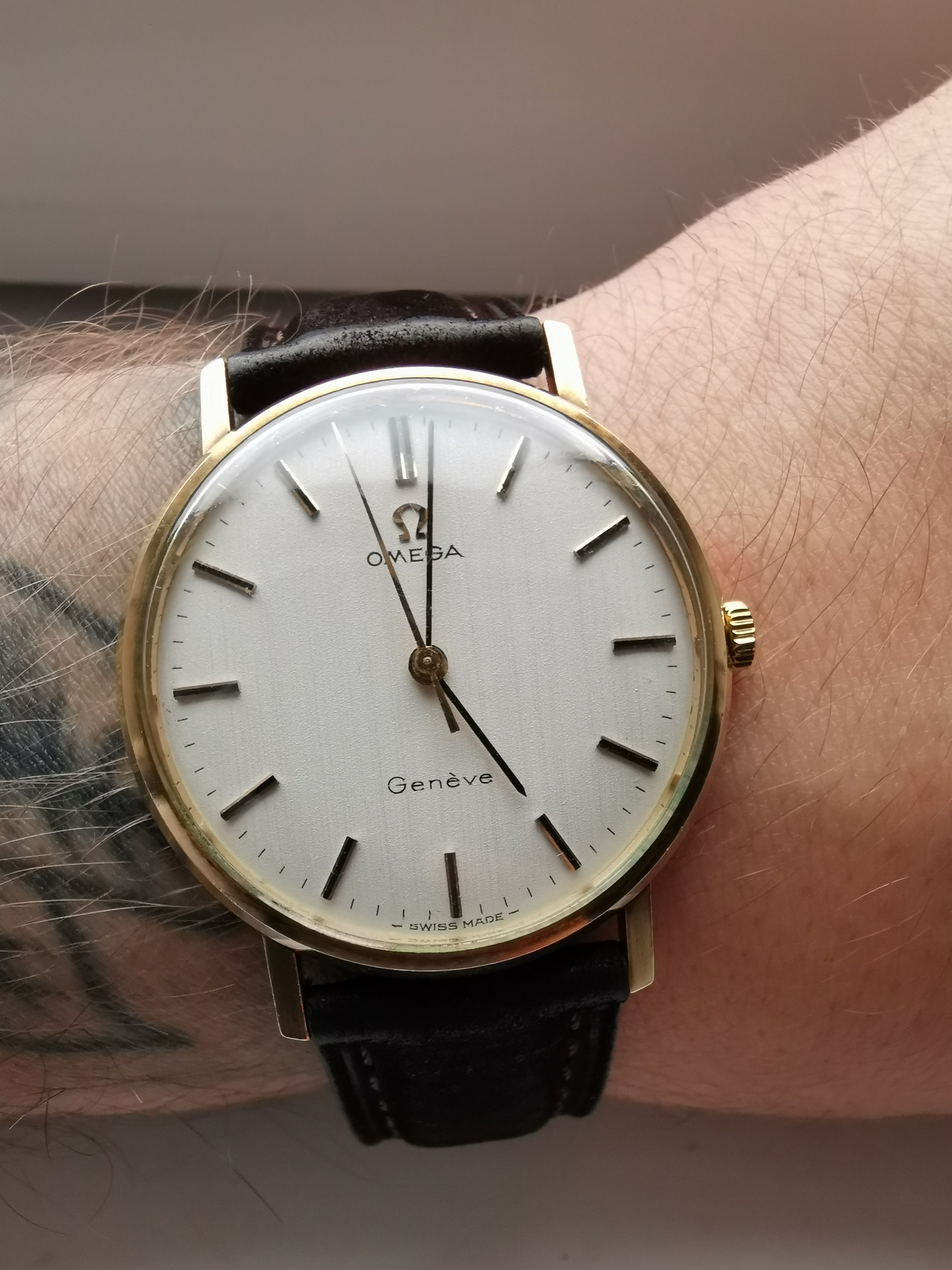 9ct gold Omege geneve. Serial ref 19,288,*** dating it to 1962. Reliable calibre 600 movement.