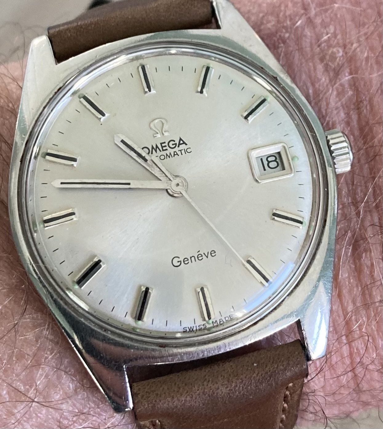 Edit - the applied Omega logo looks too old for a model of this time period. I would expect it to be flat instead of rounded. Disclaimer: I'm not at all experienced with this model, so take my observations with a grain of salt.