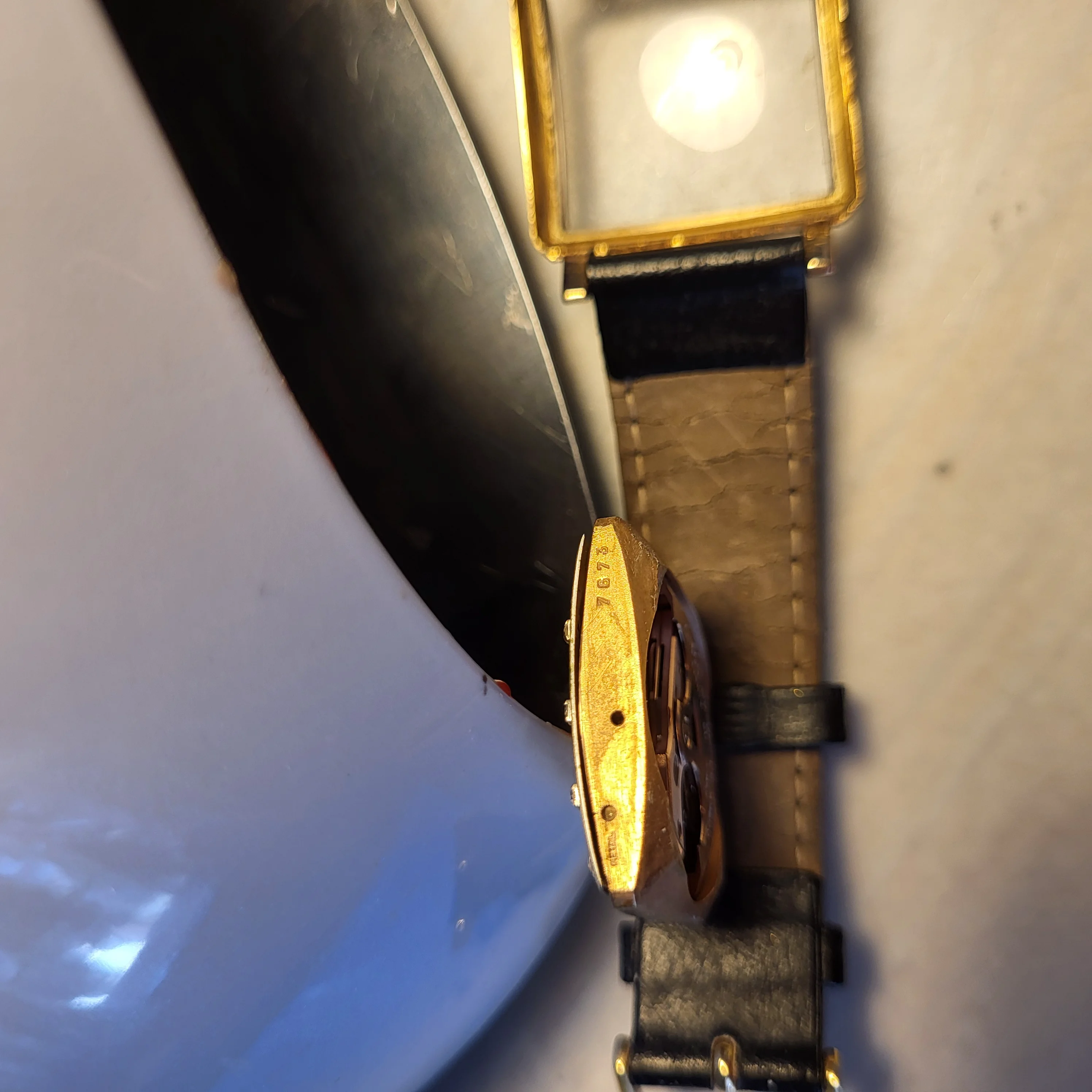 Posts 573 Likes 1,794 hant26 ·Mar 6, 2025 Solid gold tank watch, glass looks original, crown, hands and movement look correct; i'm not sure about the dial. IMO it's a nice piece anyway.
