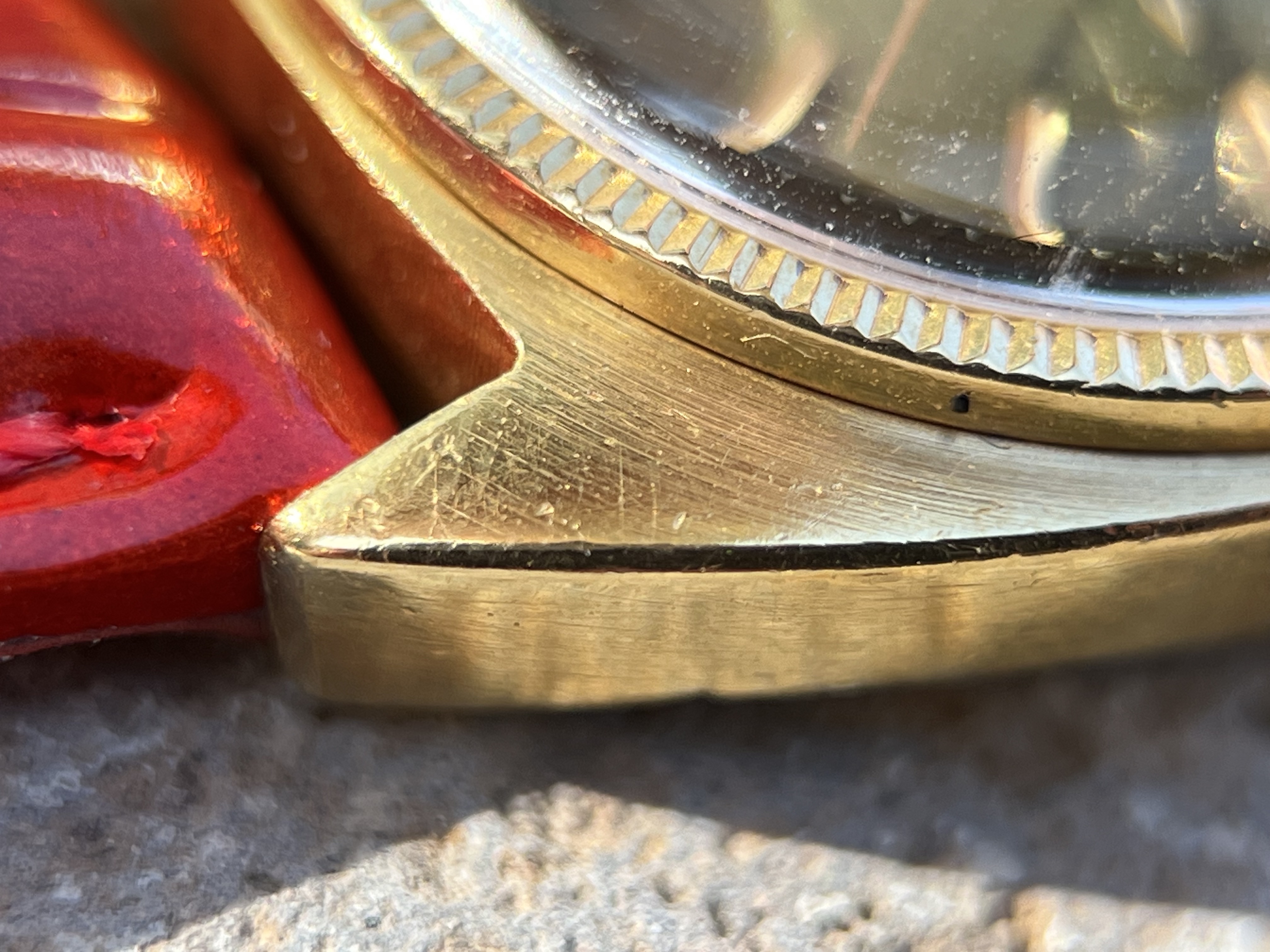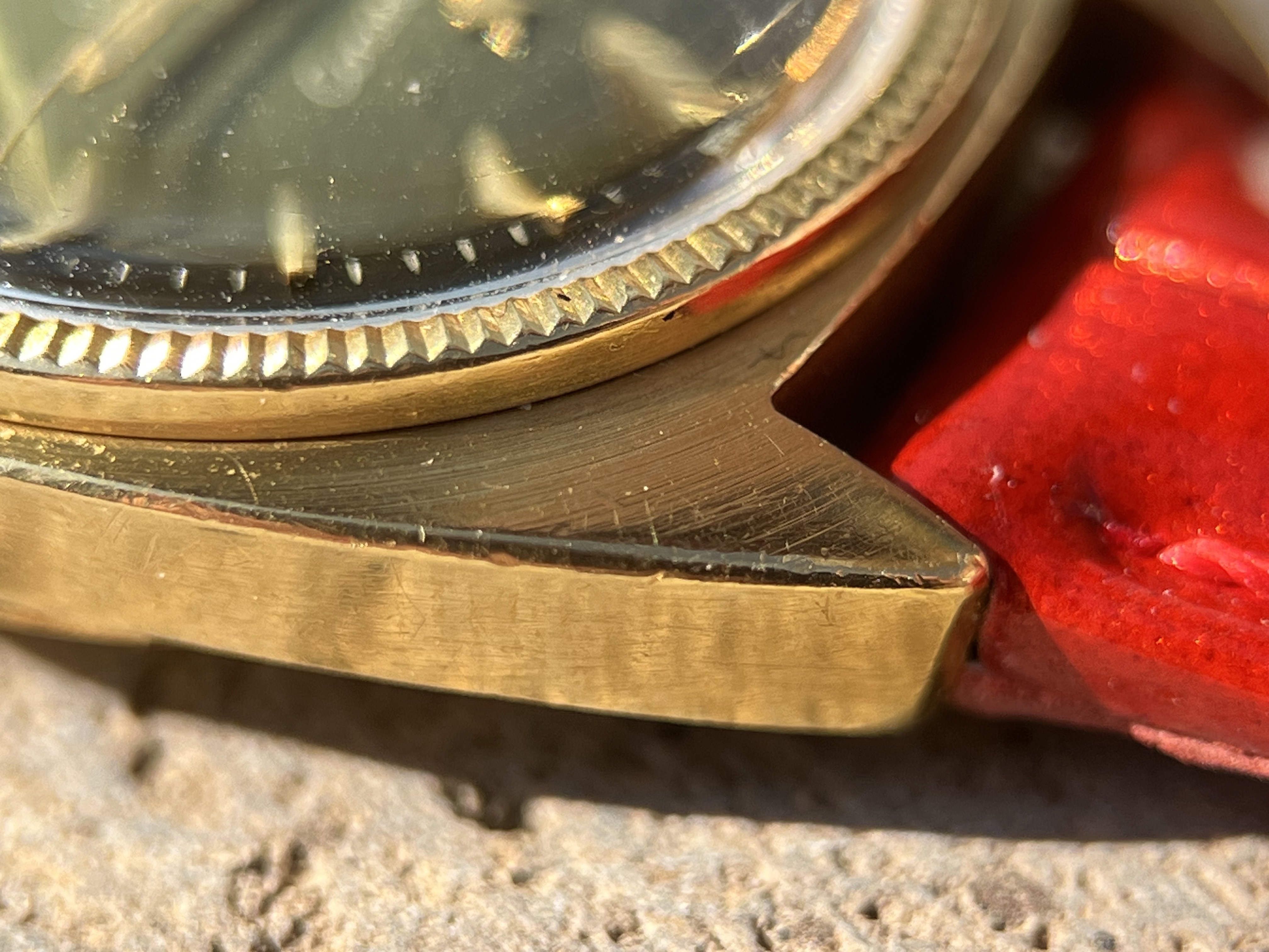 Vintage watch collectors, like those on this forum, are usually obsessed over finding watches that look like they just rolled off the factory floor 50 or 60 years ago. Others prefer to collect watches that show some wear and tear. You may just be looking for one classy watch with a bit of history.