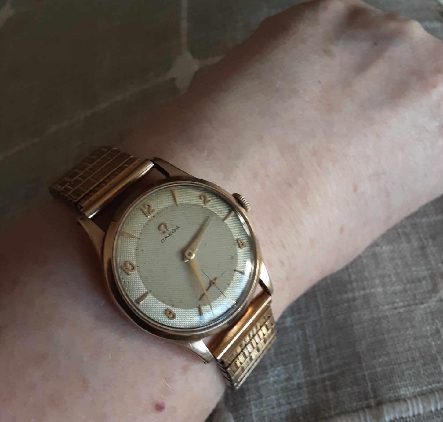 Posts 4 Likes 1 Gemfyre ·Jan 14, 2022 Good evening, newbie here. I have a 9ct Gold 1954 Omega, two tone dial, cross hair secondary dial, mechanical. I've researched the model but can't find it. The watch case is by AL Dennison. Pictures supplied....any help would be welcome 😀