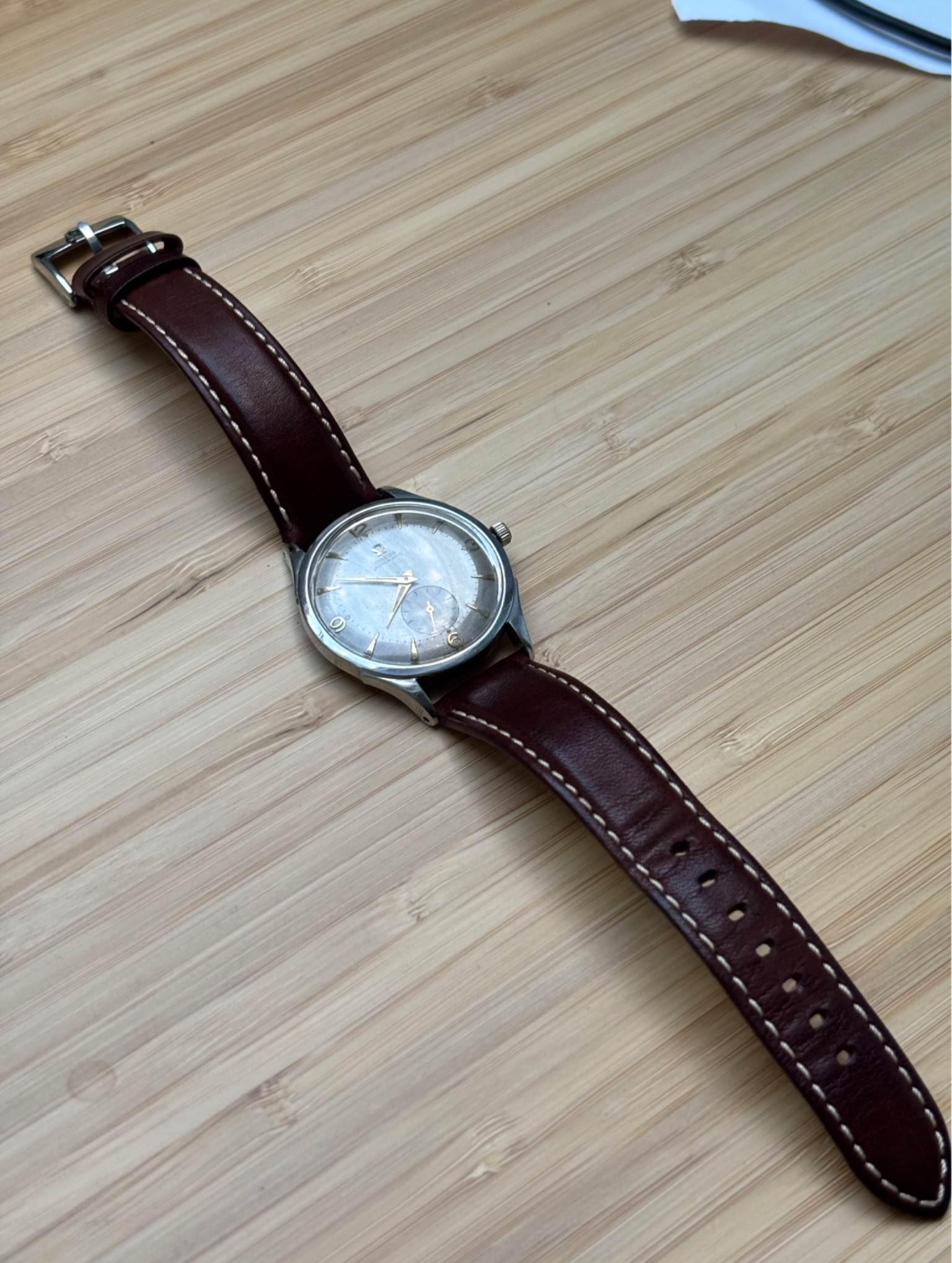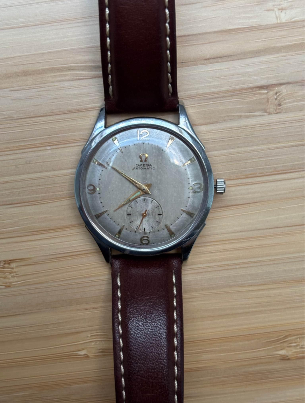 However, what I can tell you is that watch looks to be in very poor condition. The dial is original, but has been very harshly cleaned. The hands look to be mismatched and the crown and stem look way too small for the case.