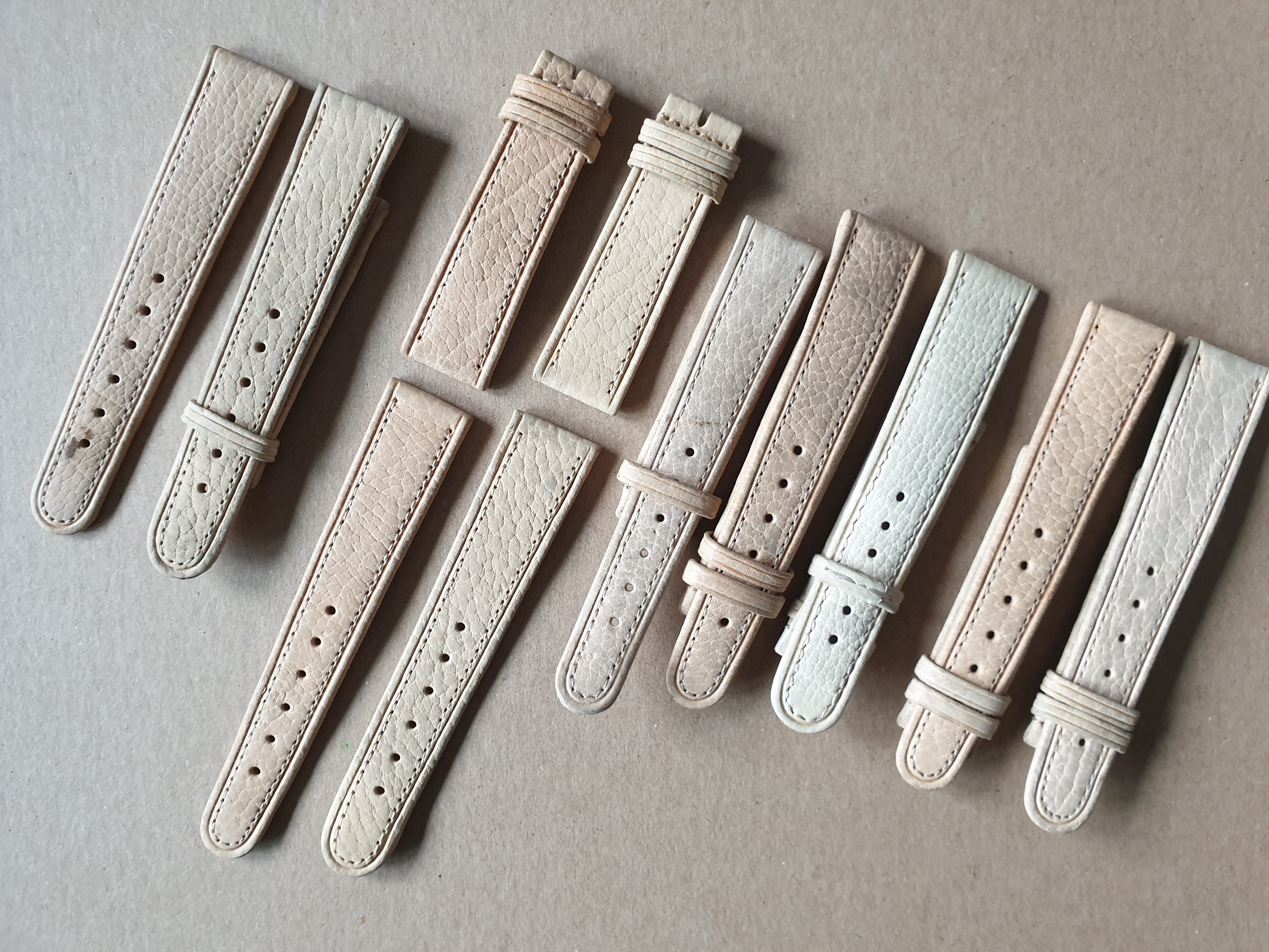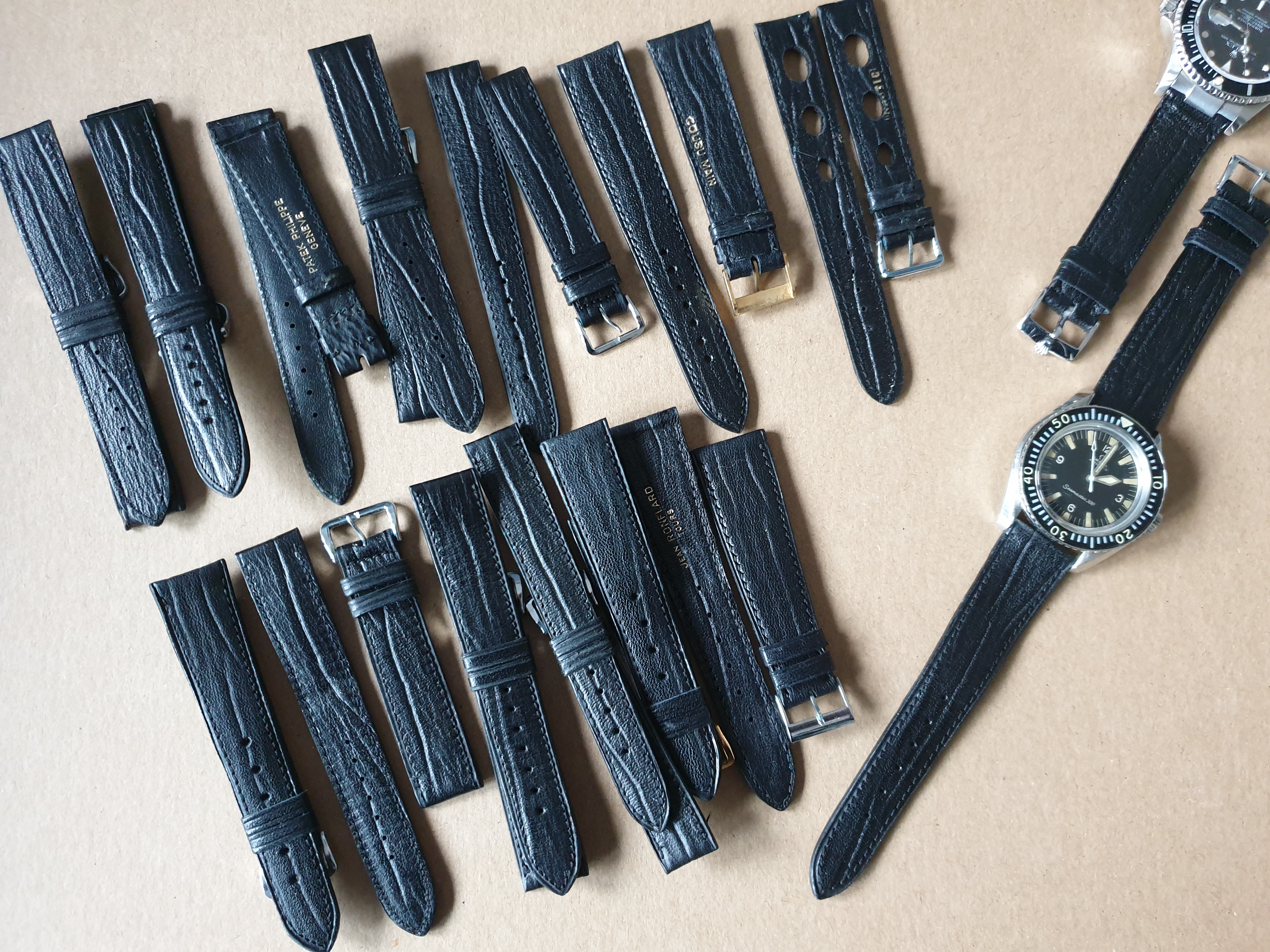 Luckily, they came mixed with some other small sized straps like pig skin, lizard or calf, some still retaining some tags but nothing i could identify as a manufacture.
