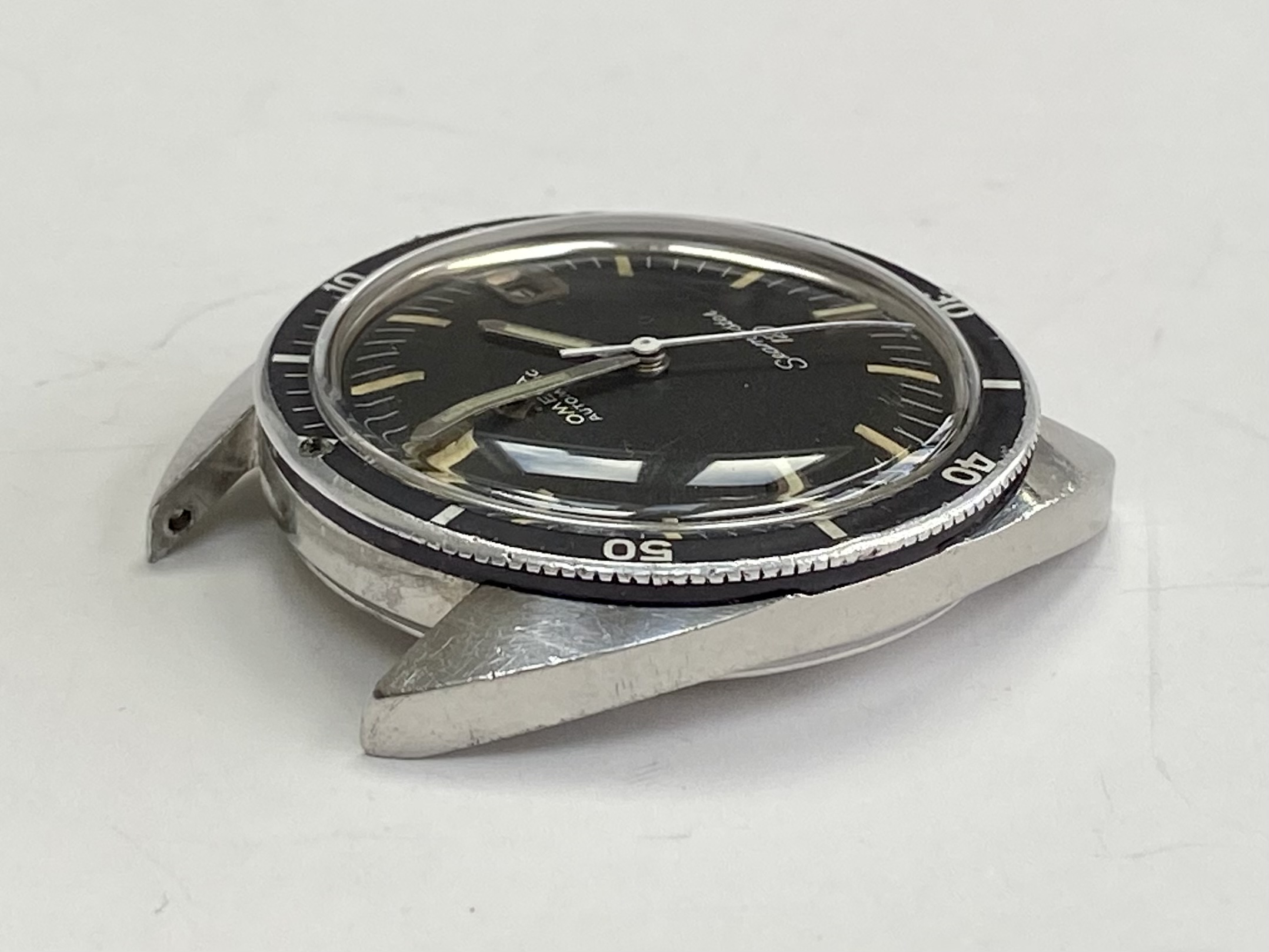 Factory original matte black dial with applied Omega logo and white text. Not restored, refinished or relumed.