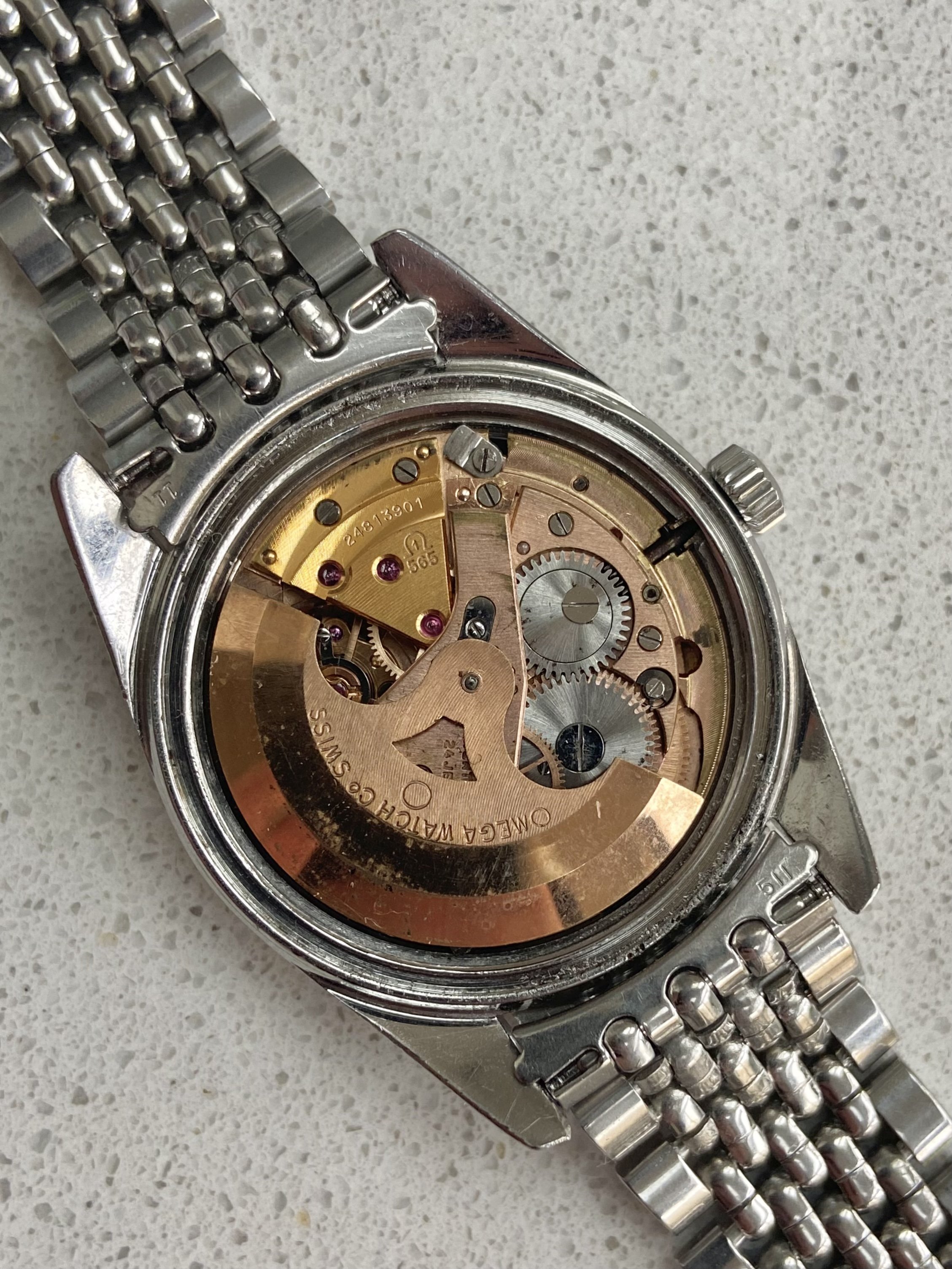 Movement: Omega cal 565 automatic movement with quick set date. All functions work as they should and it keeps reasonable time. However, in spite of the previous owner saying it was serviced in early 2023, it looks like it could do with a good clean and service to me. Some parts appear to be different shades, particularly the serial bridge. I don’t know if this is because some parts have worn or because some parts have been changed over the years.