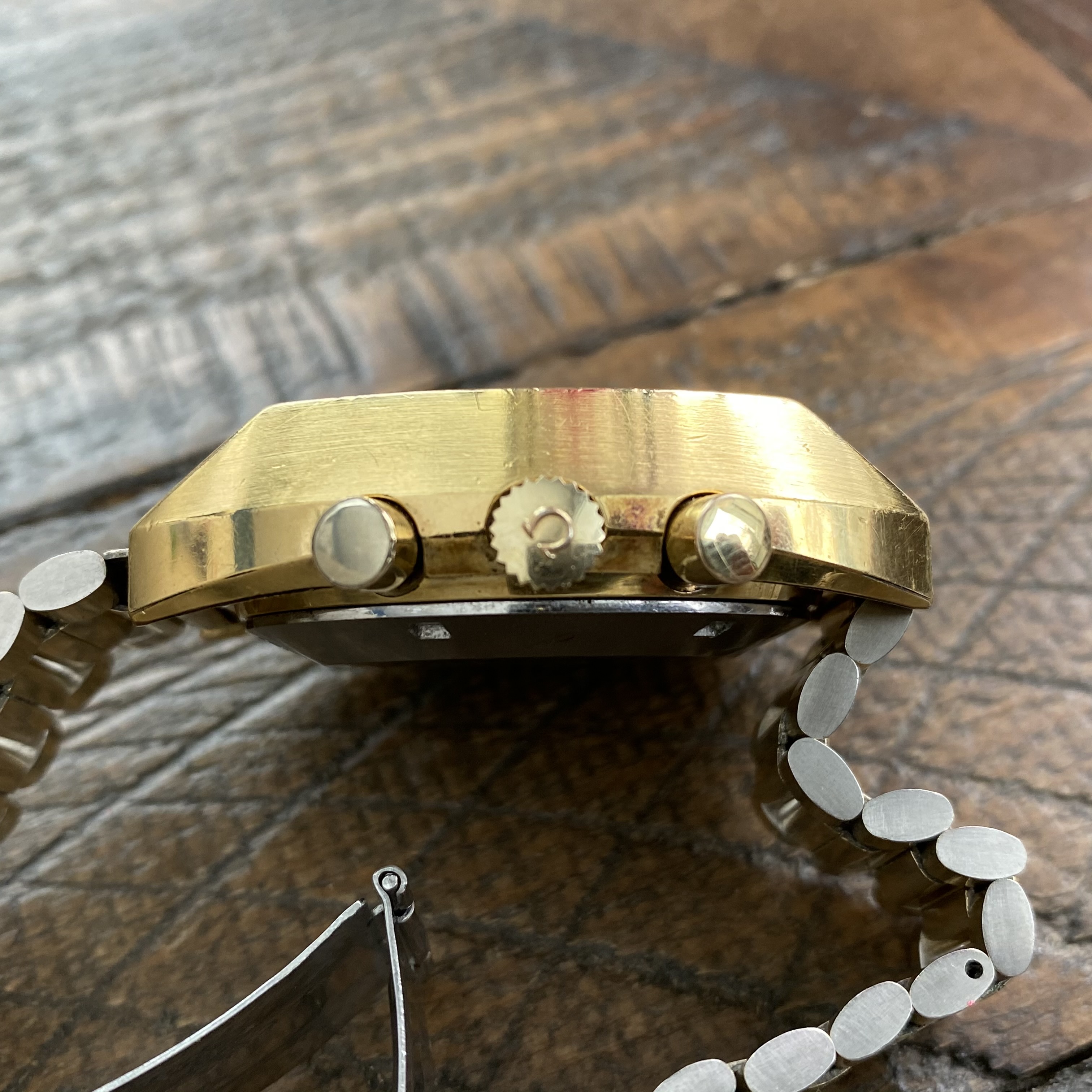 Pushers and crown functioning as they should. One pusher is missing the gold plating on the top surface, which is common in these watches.