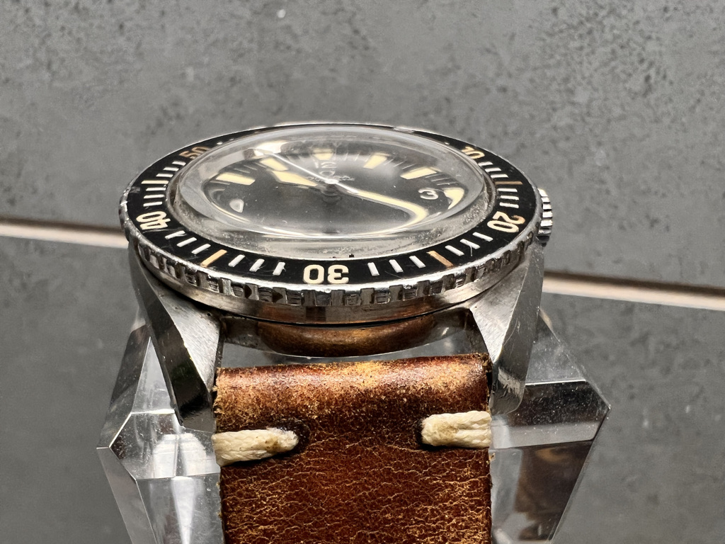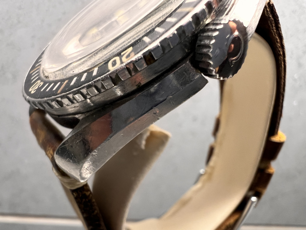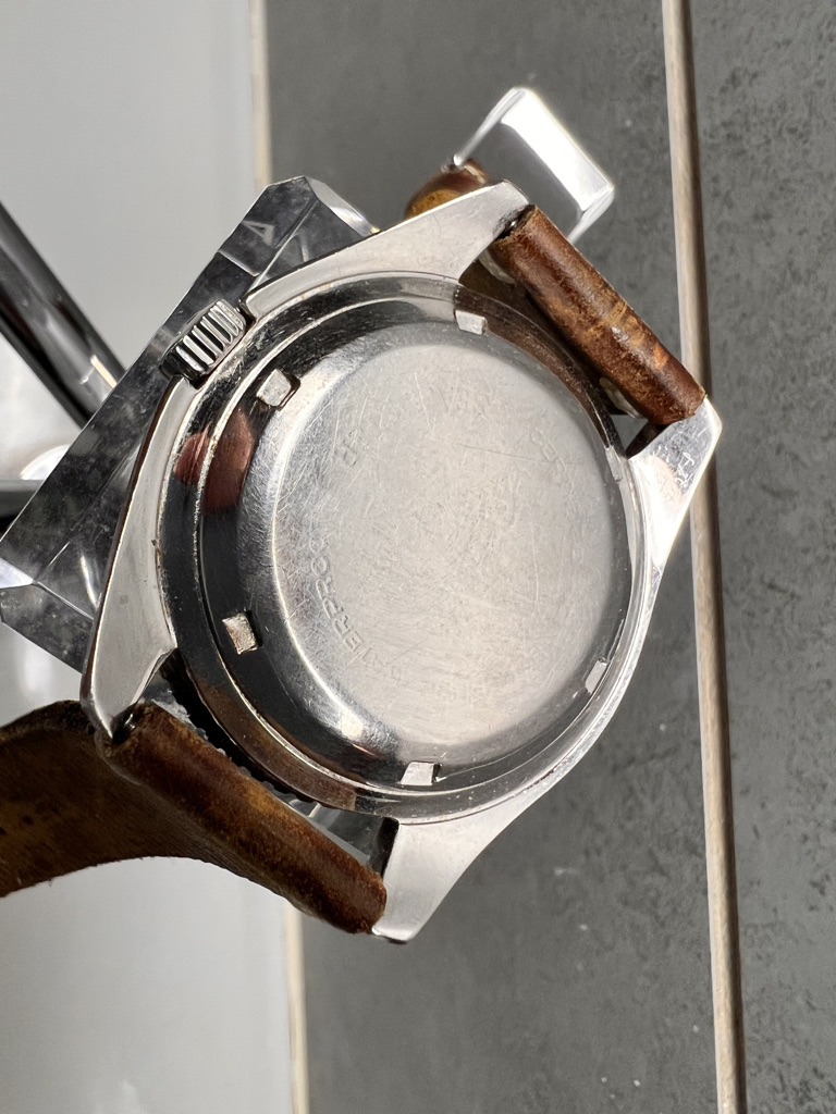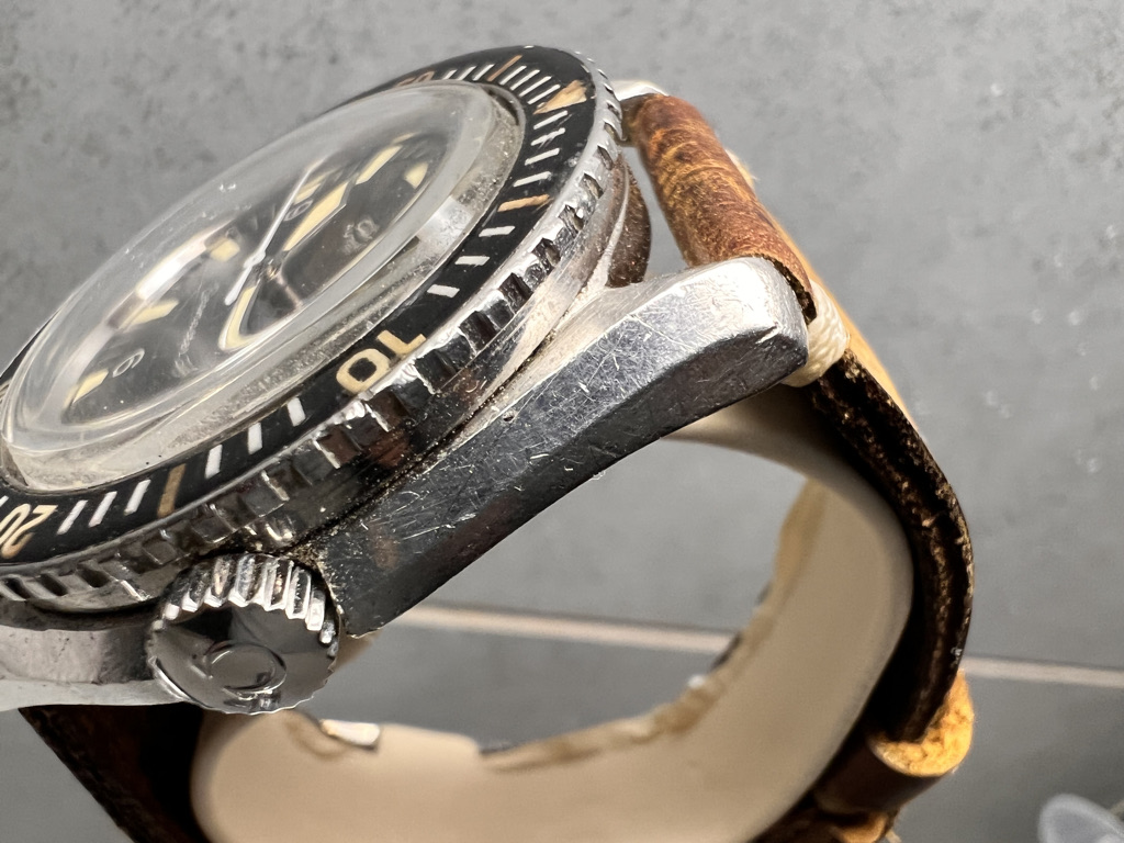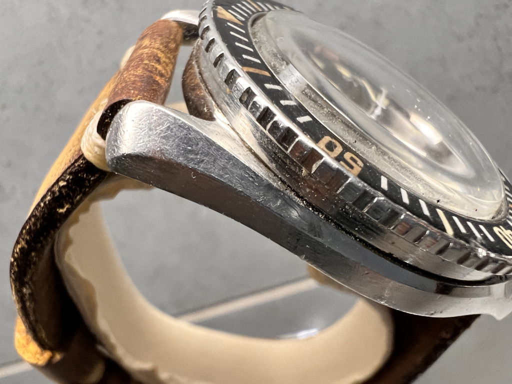 I examined it before i decided to buy it , i guess it looks ok except that the case is well worned. Speciell on the backside. It was hard to get the contrast of the hippocampus. The only thing i was thinking of was that the silver inner bezel ring covers almost the whole text " T swiss made T " thats written under the "6" i have seen many pictures where the text is much more visible. The grinding of the glass does some trix when trying to take pictures, but on this watch the ring clearly covers almost the whole text. Is the inner bezel ring maybe not original ? Or why is some text visible and some almost covered. Is there something else i maybe missed or does not look ok ?