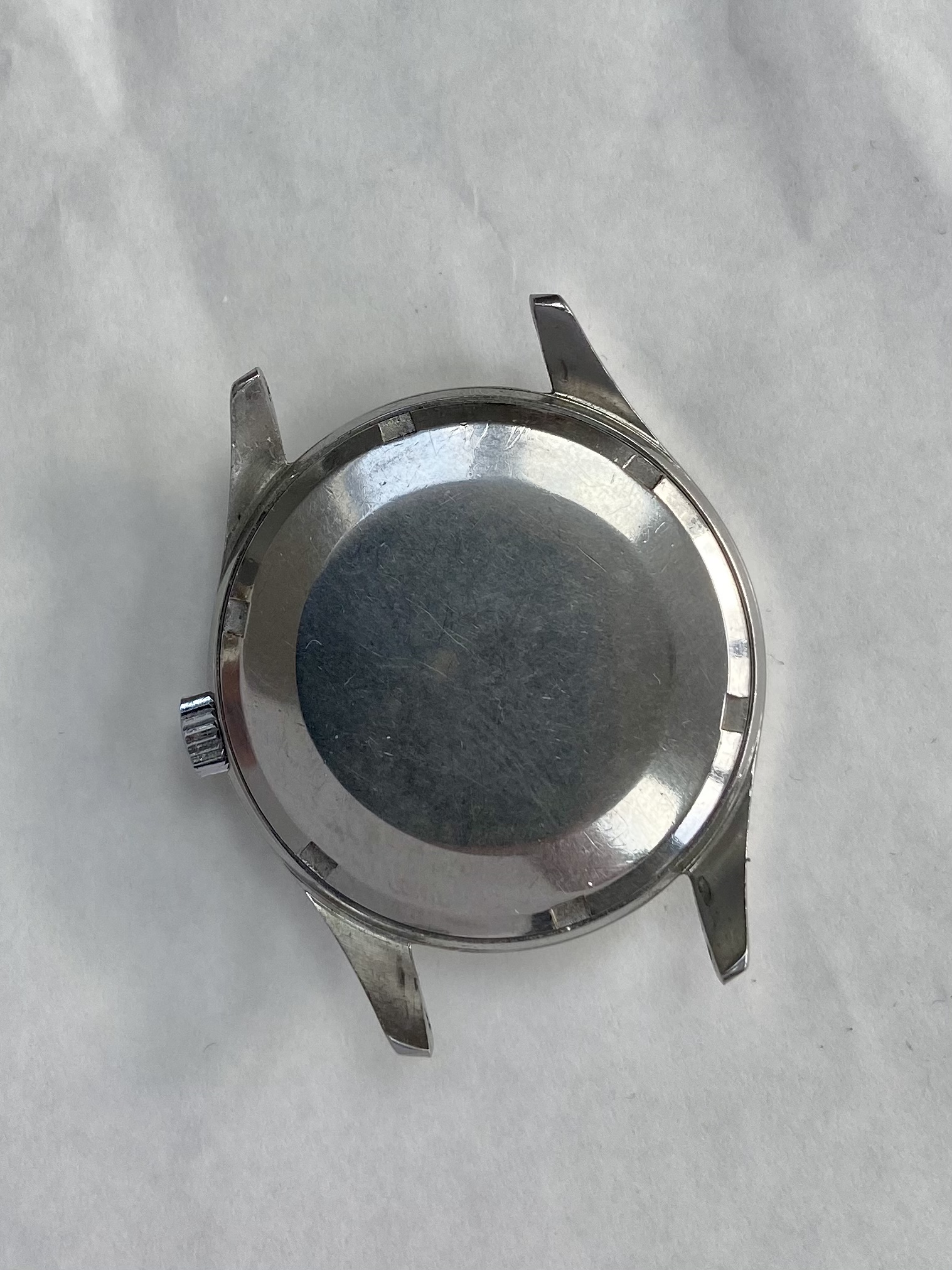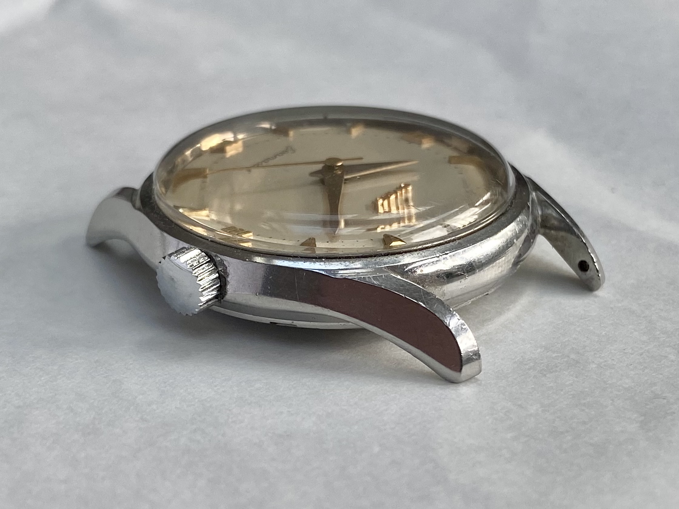 36mm stainless steel case ref 2923-1. Larger than more commonly seen 34mm vintage cases.